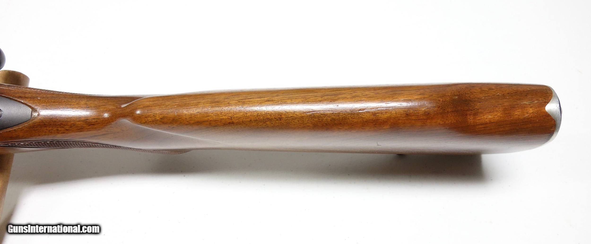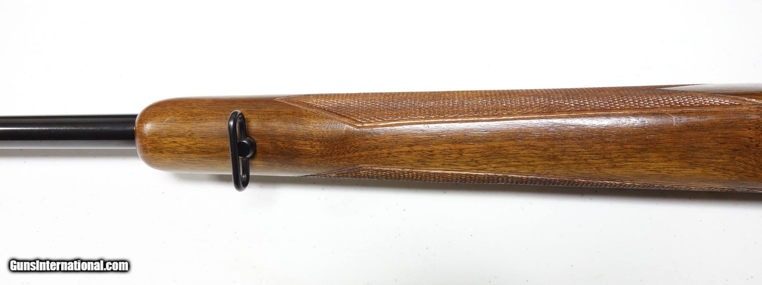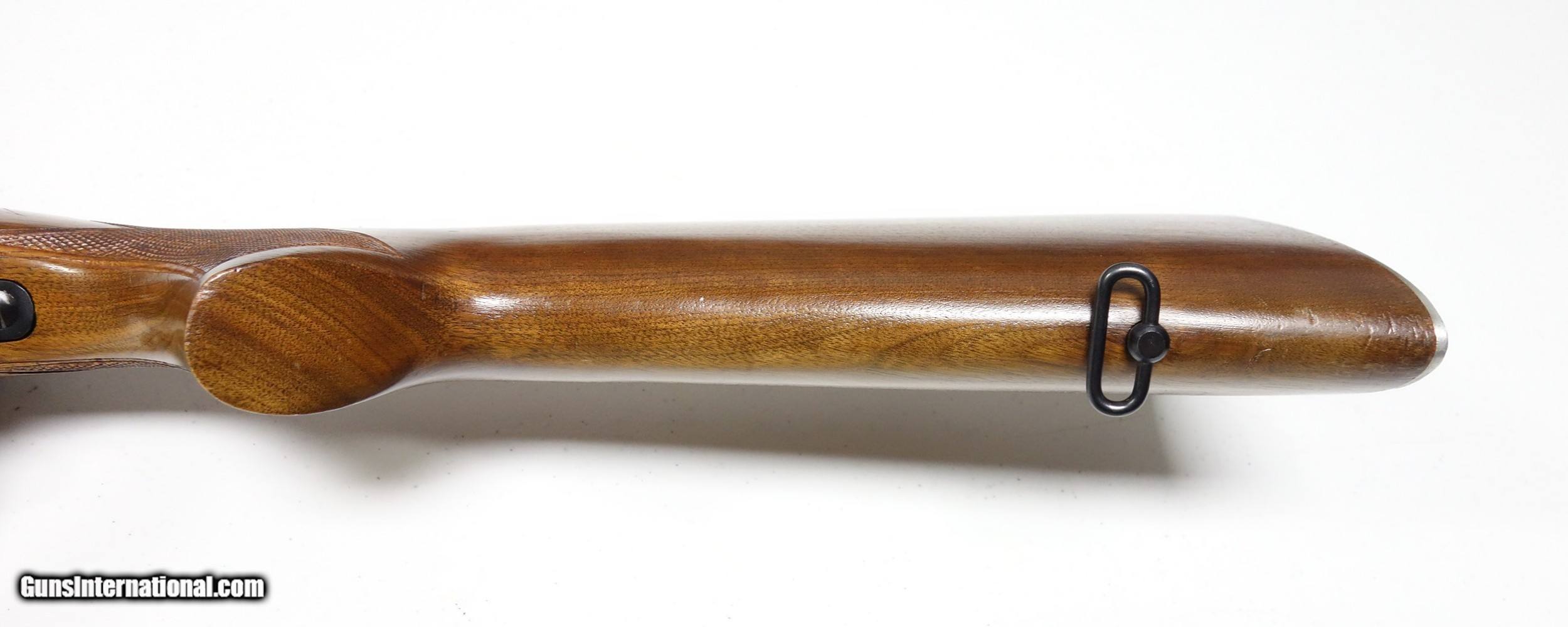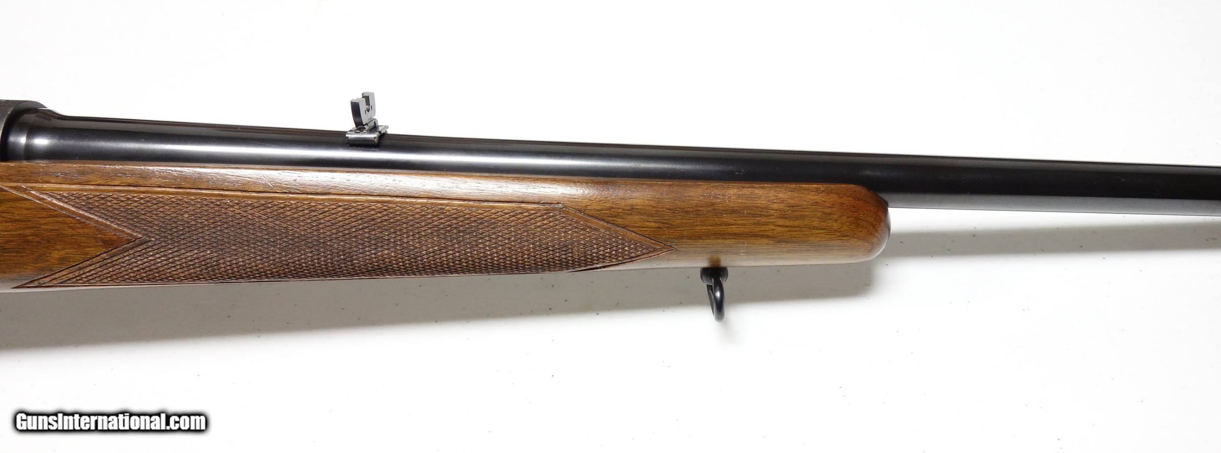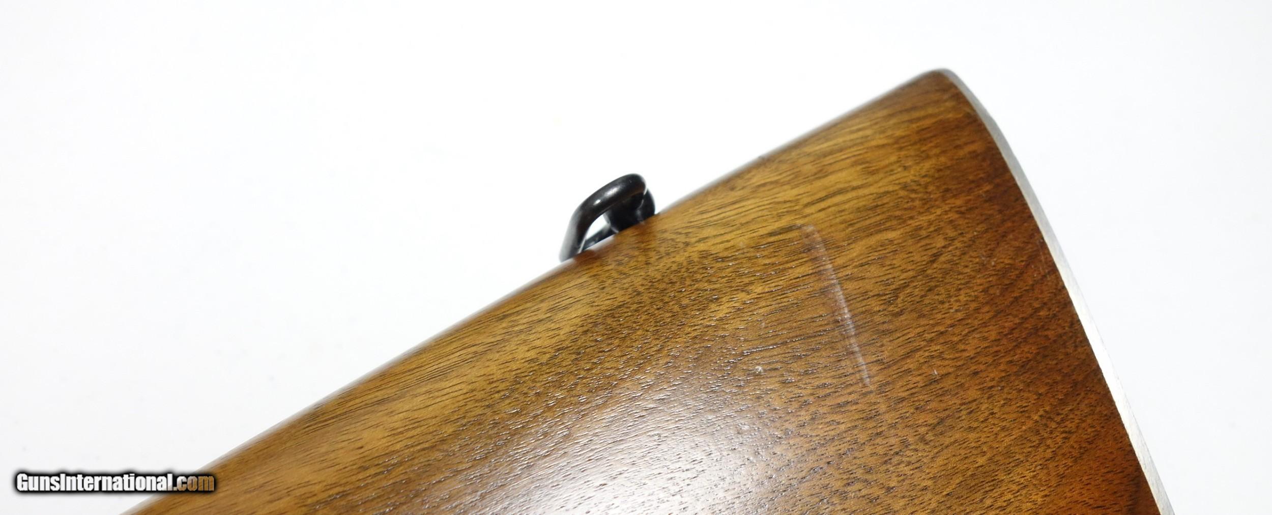 Description: Very nice Model 70 Featherweight in .270 caliber with rare front sight ramp. S/N 364*** with matching scribed bolt made in 1956. It wears a 22" slim profile barrel with an excellent bore. The mechanical functions are all smooth and operating as they should. The metal is nearly perfect at 98%+ including the anodized aluminum bottom metal and butt plate components. An interesting and unique feature of this rifle is the #5 front sight ramp which was an experimental version rarely ever used! I have only seen this ramp on one other Model 70 ever, which was also a featherweight in a similar S/N range. The stock shows some light handling marks, most notably some squiggly impressions on its left shoulder and another shallow dent near butt plate, but retains good color and sheen, sharp checkering and looks great! 270 fwts are much scarcer than 30-06 and the earlier aluminum butt versions especially so. This rifle is extra clean inside and out. A worthy and collectible example. SOLD Curio/Relic: Yes |