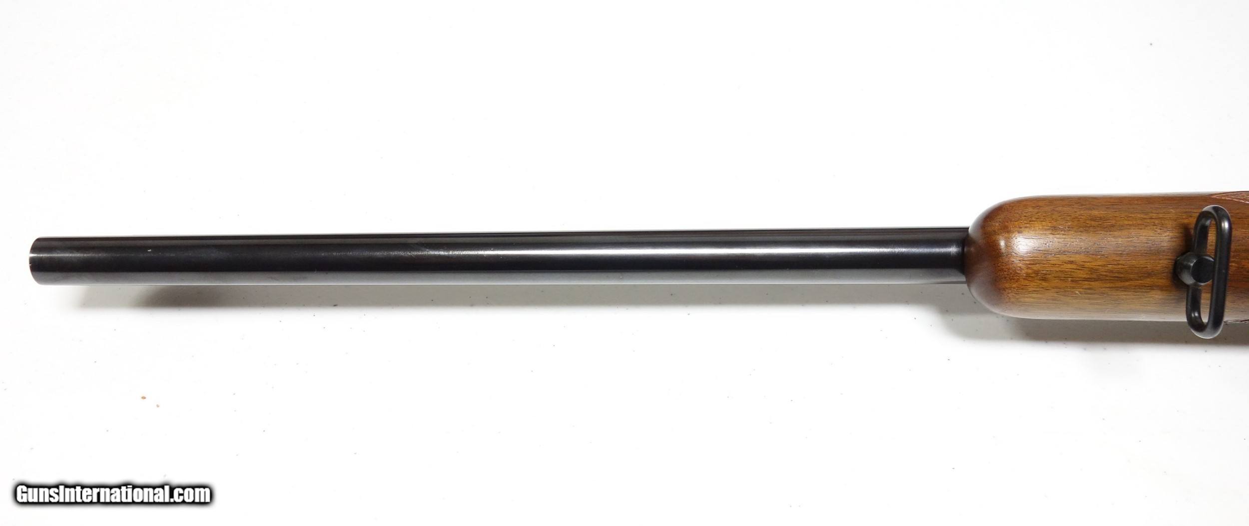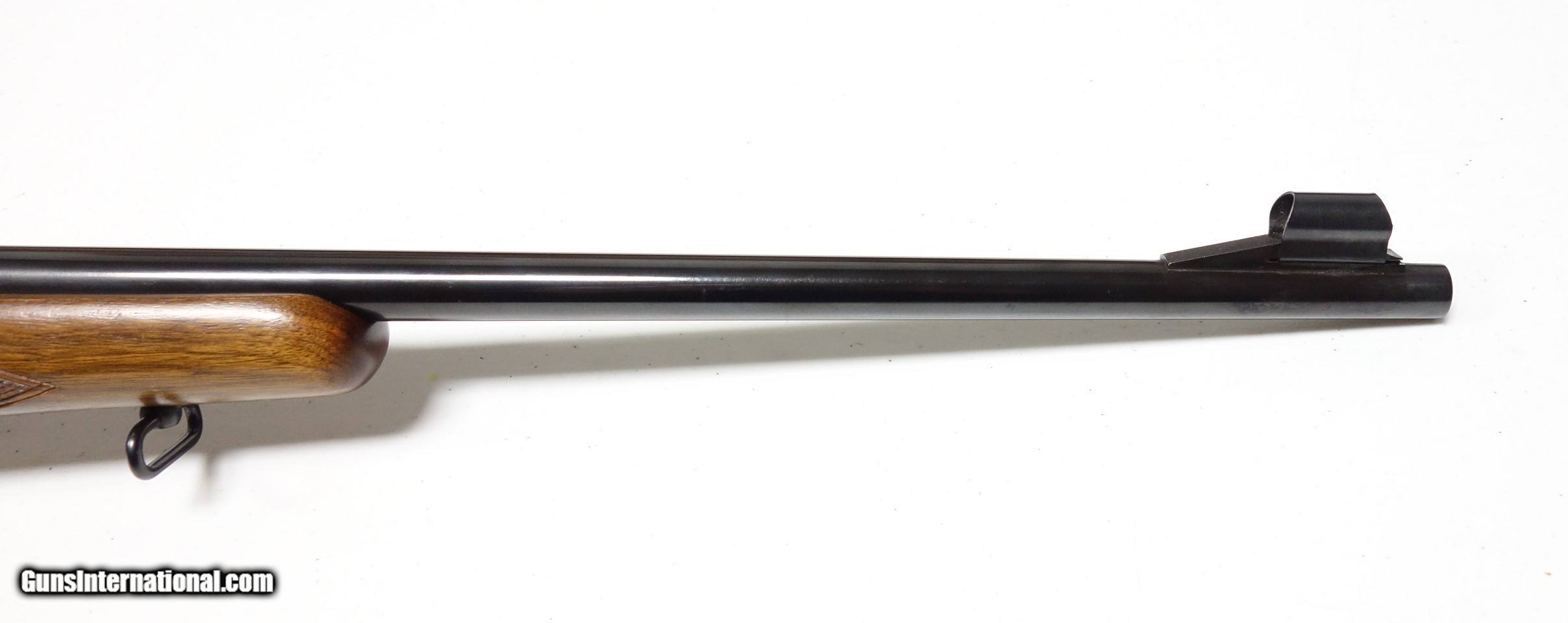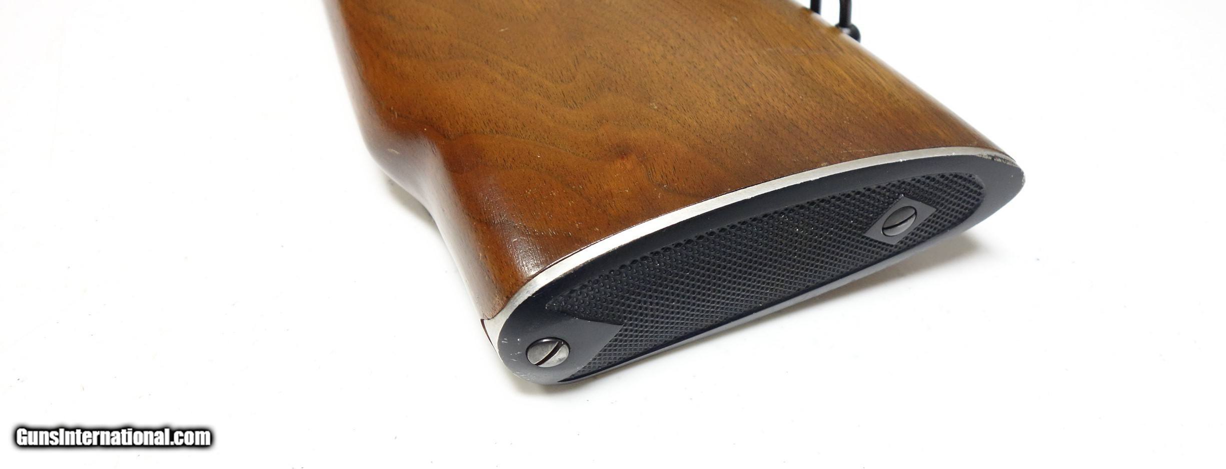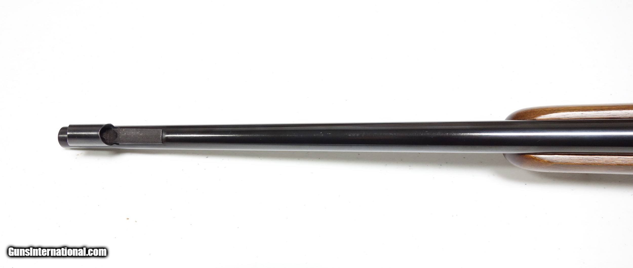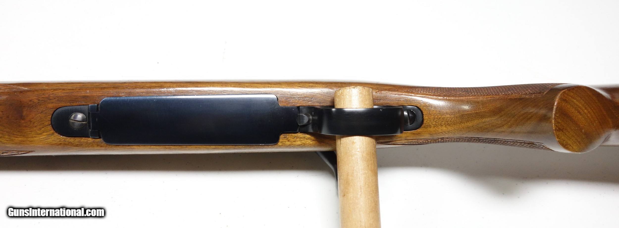 Description: Very nice Model 70 Featherweight in .270 caliber with rare front sight ramp. S/N 364*** with matching scribed bolt made in 1956. It wears a 22" slim profile barrel with an excellent bore. The mechanical functions are all smooth and operating as they should. The metal is nearly perfect at 98%+ including the anodized aluminum bottom metal and butt plate components. An interesting and unique feature of this rifle is the #5 front sight ramp which was an experimental version rarely ever used! I have only seen this ramp on one other Model 70 ever, which was also a featherweight in a similar S/N range. The stock shows some light handling marks, most notably some squiggly impressions on its left shoulder and another shallow dent near butt plate, but retains good color and sheen, sharp checkering and looks great! 270 fwts are much scarcer than 30-06 and the earlier aluminum butt versions especially so. This rifle is extra clean inside and out. A worthy and collectible example. SOLD Curio/Relic: Yes |