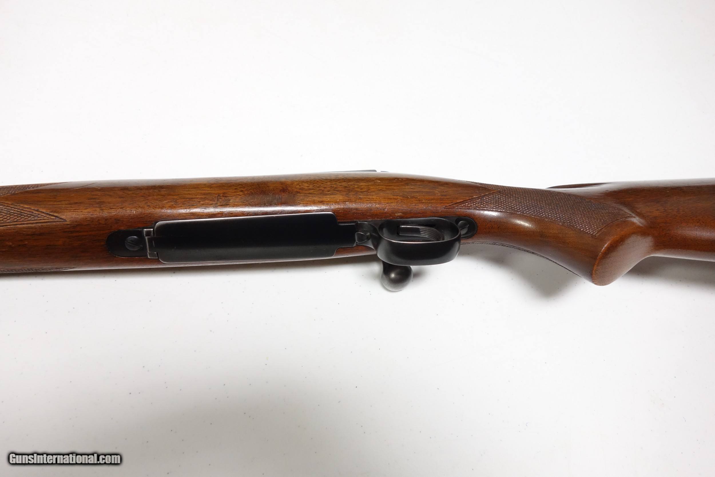 Description: Very nice earlier post war Winchester 70 with low comb stock and solid bolt knob in the ever popular .270 caliber. S/N 158*** with matching # bolt made in 1950. This is a standard weight rifle with 24" barrel. Overall condition is excellent at 96-97%. All mechanical functions are working smoothly and properly and the bore is excellent. A great collectible shooter. SOLD Curio/Relic: Yes |