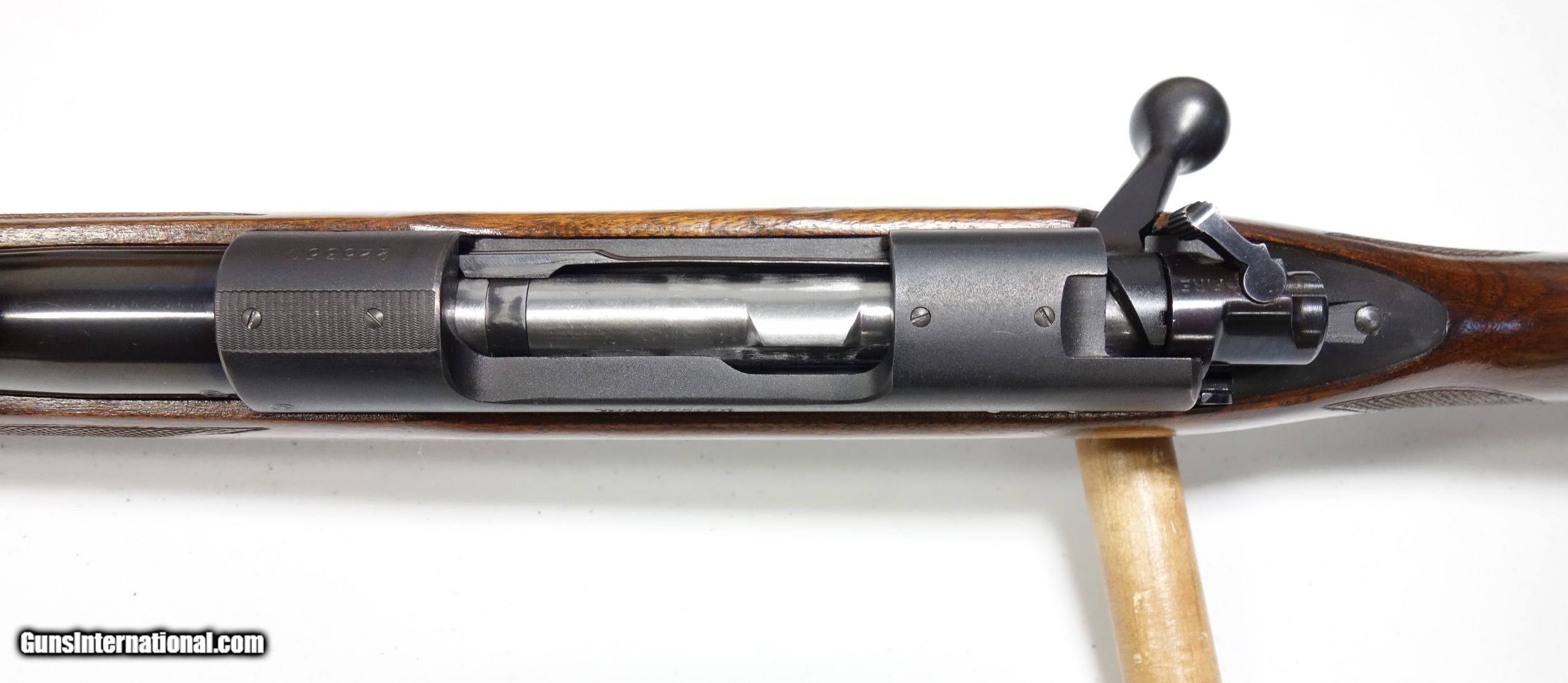 Description: Very clean and unmolested Pre 64 Winchester 70 standard rifle in the highly versatile and popular .270 Win. caliber. S/N 225*** with matching scribed bolt made in 1952. The barrel is 24" with an excellent bore. 98% Blue. I am rating the wood 96% due to some scattered light dents and scuffs shown, but I do not think this rifle has seen much actual use at all. It is spotless inside, all of the metal components look practically new, and even the bolt face indicates very few rounds ever fired. The perfect collectible shooter! SOLD Curio/Relic: Yes |
