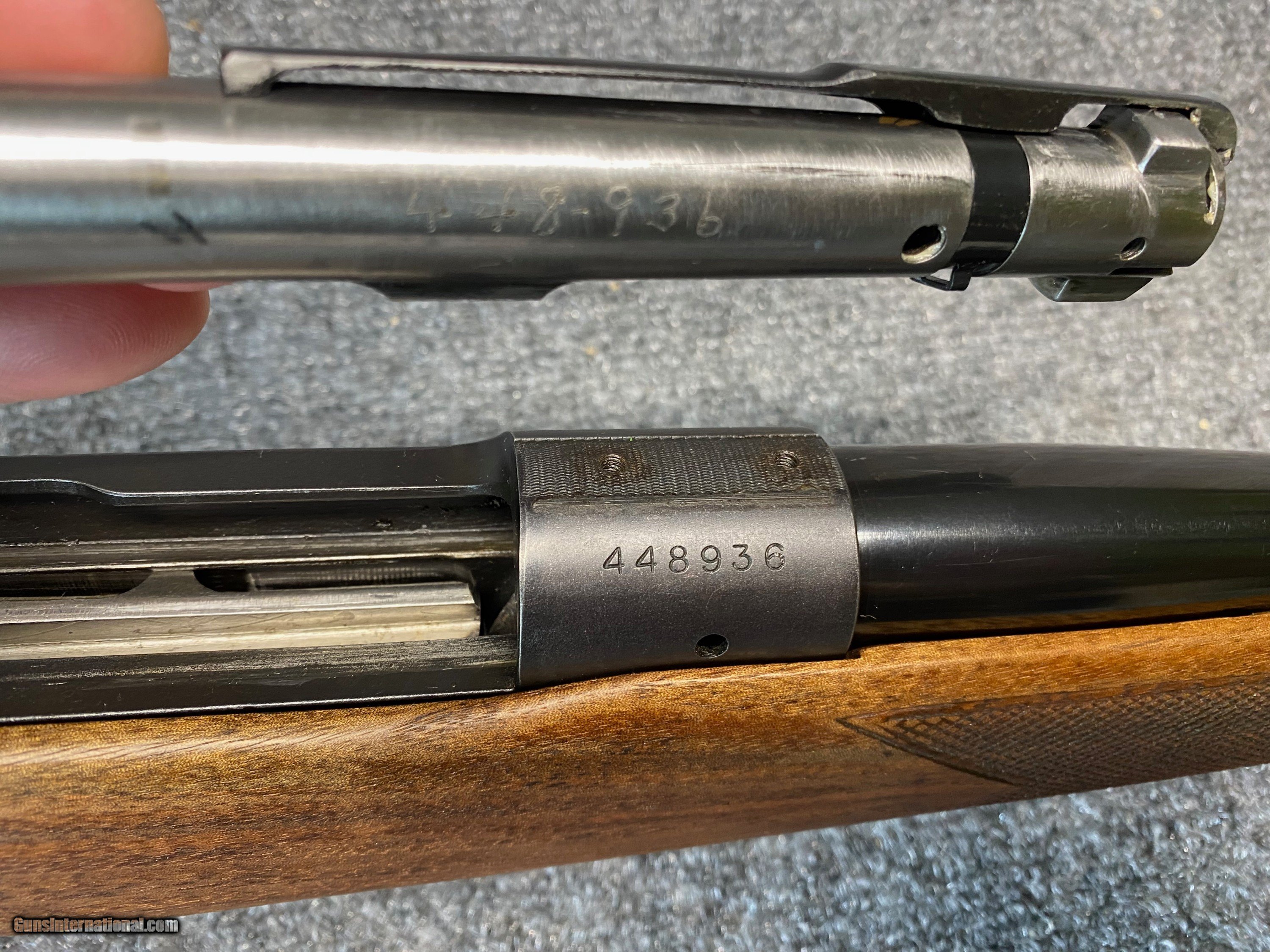 Description: Very fine condition. 1958 mfg Pre-64 Winchester Model 70 30-06 in pristine original condition. High polished Deep blue. Epoxy bedding. Matching factory etched bolt. Factory pre-drilled for scope mounts or side mounted peep sights. Hooded front ramp sight. Fold down rear sight. Raised fluted comb factory buttstock. Red pad. Sling mounts. Wood stock and metal in excellent conditon. Bore is excellent and sharp rifiling. Price: $1500 Curio/Relic: YES Rifle Caliber: 30-06 Manufacturer: WINCHESTER Model: PRE-64 MODEL 70 Barrel Length: 24 Serial Number: 448936 Manufacture Date: 1958 Shipped fully insured to your FFL. Private seller from my collection. Ask me anything. SOLD Curio/Relic: Yes Rifle Caliber: .30-06 Springfield Model: 70 Barrel Length: 24 Condition: Fine Metal Condition: Exc Wood Condition: Exc Bore Condition: Exc |
