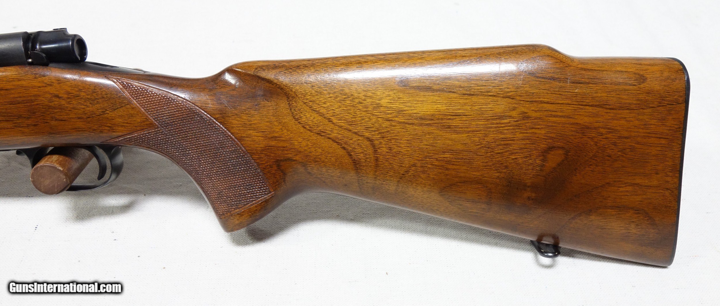Description: This is a beautiful and all original rifle with excellent bore and flawless mechanical function. S/N 251*** with matching scribed bolt made in 1953. The bluing is nearly perfect at 99%. Varnish 98% plus. 24" barrel. Monte Carlo comb. Solid bolt knob. Integral front sight ramp. Shipping from Alaska is $75 via Priority Mail with full insurance in a custom cut foam lined box for maximum protection. Credit card users please add 3%. SOLD Curio/Relic: Yes |