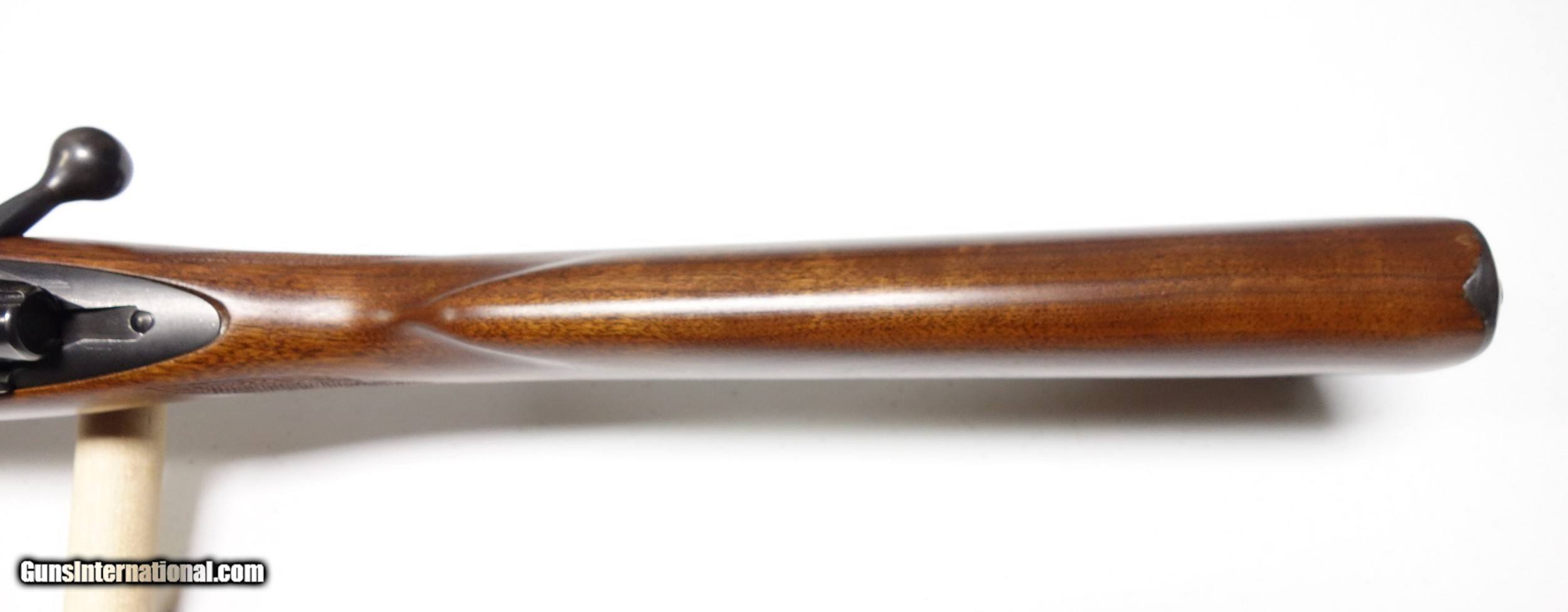 Description: Here's a great rifle for someone who's looking for a super nice 70 that they can still take out and use as intended without breaking the bank. It is in excellent shape throughout, but I have priced it as a shooter due to several discrepancies from original. The stock has been very nicely refinished along with the bottom metal. The bolt has also been engine turned or "jeweled". S/N 216*** with matching scribed bolt made in 1952. 24" Barrel with excellent bore. Mechanical function is perfect. 98% original Blue on barreled action with refinished bottom metal. The butt plate shows typical wear. 99% oil finished wood which from a practical standpoint, will prove to be far more durable than the original factory lacquer. A very classy shooter at a reasonable price that in my opinion surpasses any comparably priced rifle being produced today. SOLD Curio/Relic: Yes |