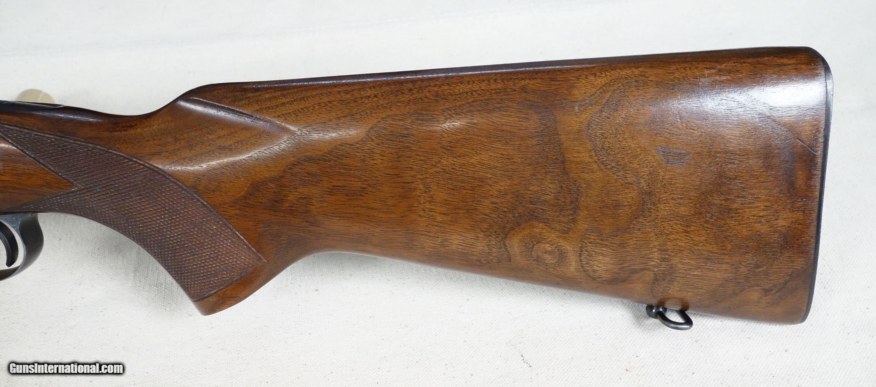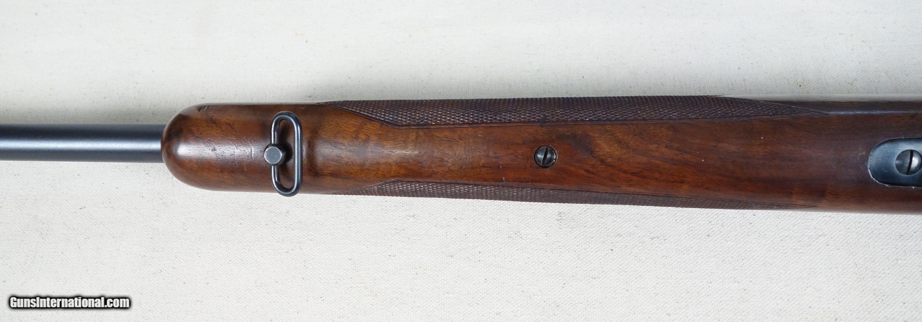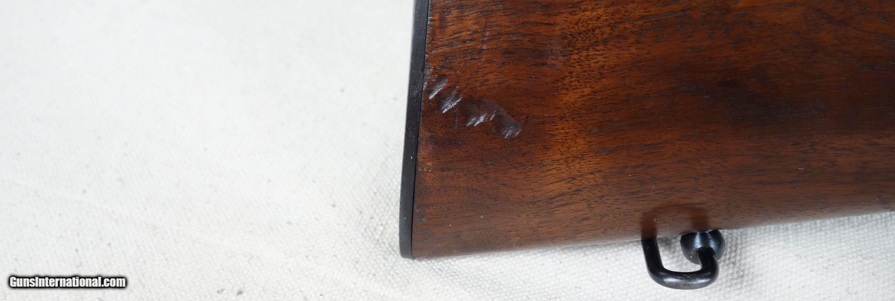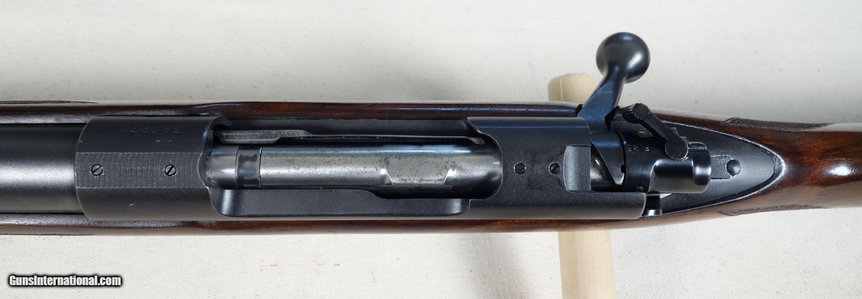 Description: RARE! VG-Excellent condition .300 H&H with STAINLESS steel barrel! S/N 320*** with matching bolt Mfg. 1954. 26" stainless barrel with excellent bore. 96% Blue, 96% Varnish over most with a couple noticeable impressions as shown. Straight comb stock, all correct components. 100% original and highly collectible. Please click on the blue, top right "see all listings" button for more exceptional vintage collector arms to be added daily. SOLD Curio/Relic: Yes |