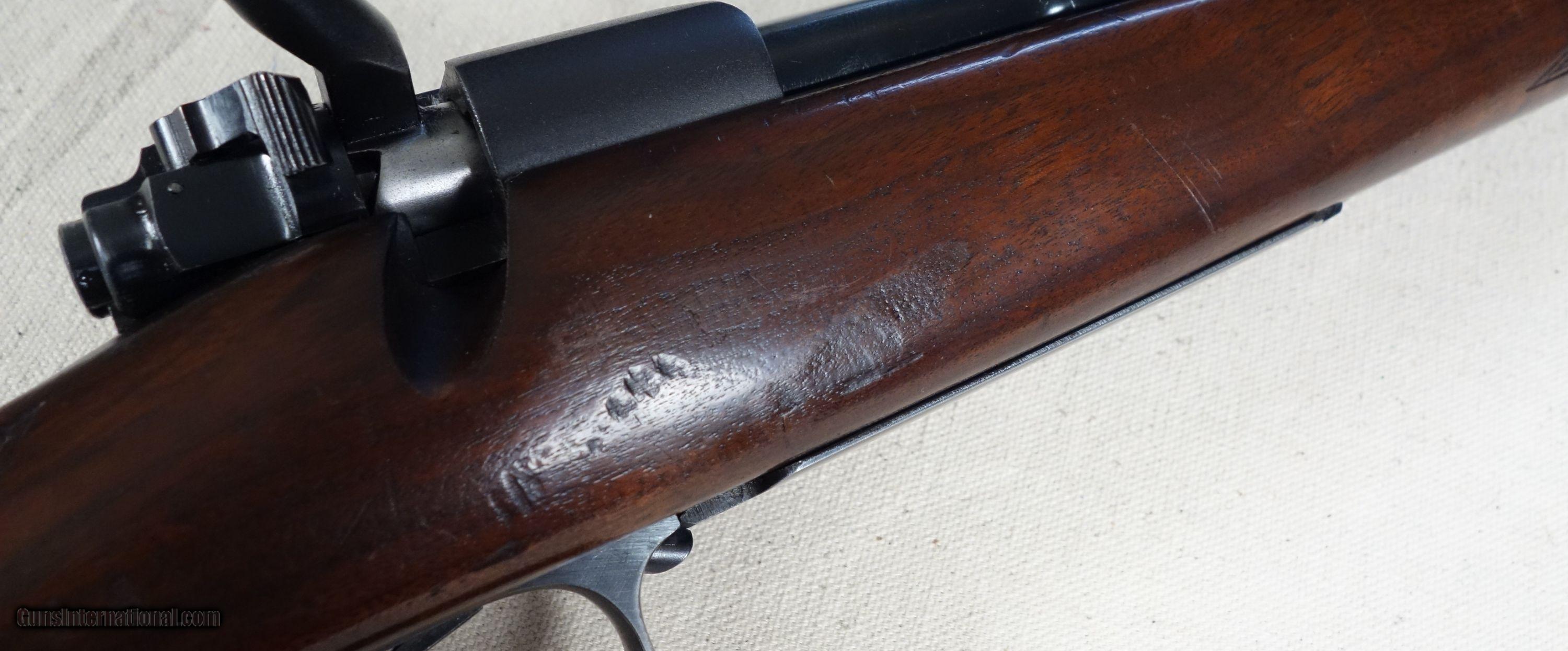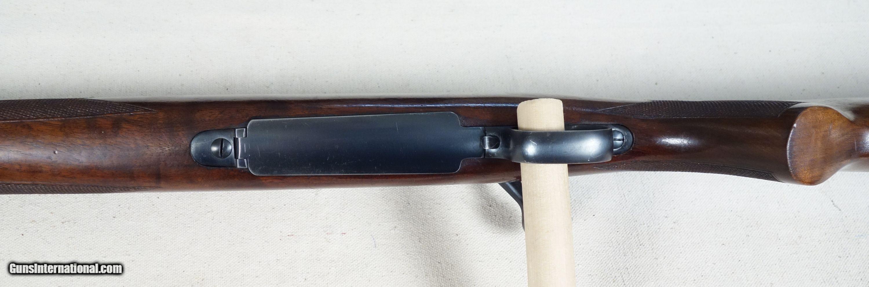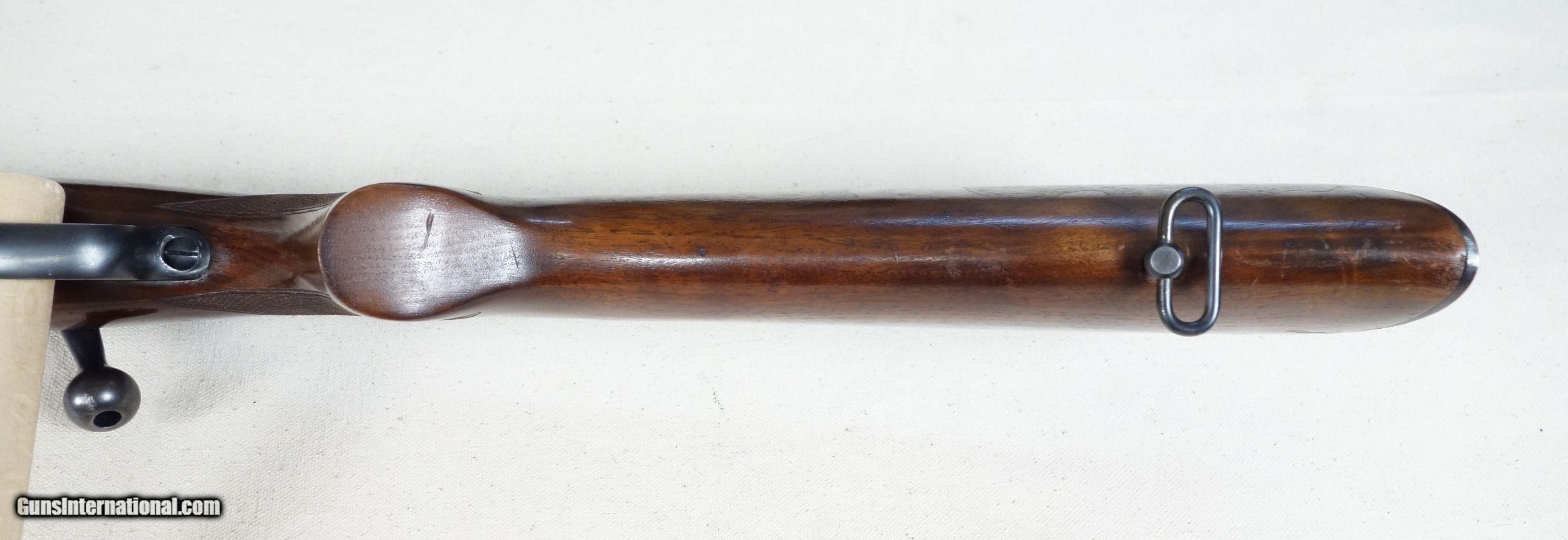Description: RARE! VG-Excellent condition .300 H&H with STAINLESS steel barrel! S/N 320*** with matching bolt Mfg. 1954. 26" stainless barrel with excellent bore. 96% Blue, 96% Varnish over most with a couple noticeable impressions as shown. Straight comb stock, all correct components. 100% original and highly collectible. Please click on the blue, top right "see all listings" button for more exceptional vintage collector arms to be added daily. SOLD Curio/Relic: Yes |