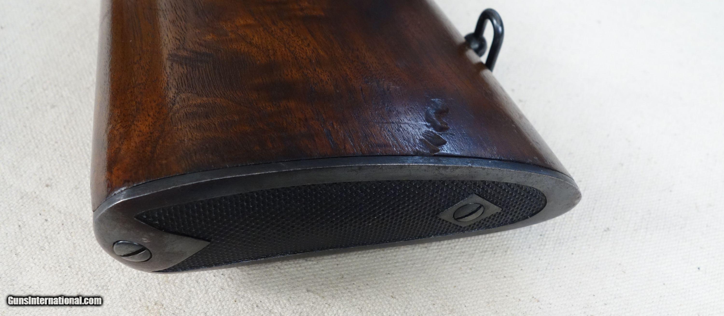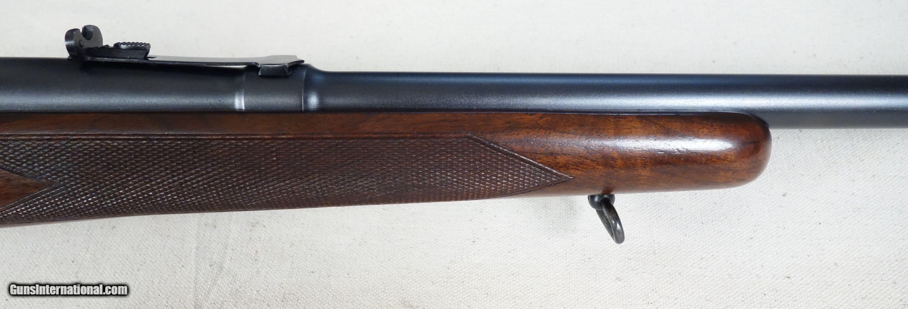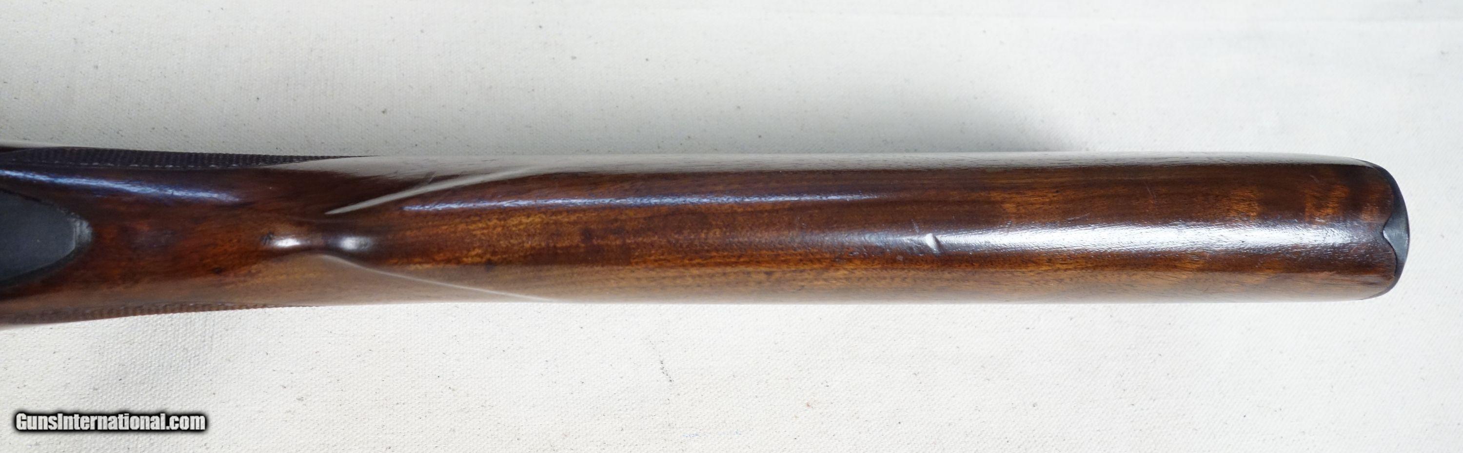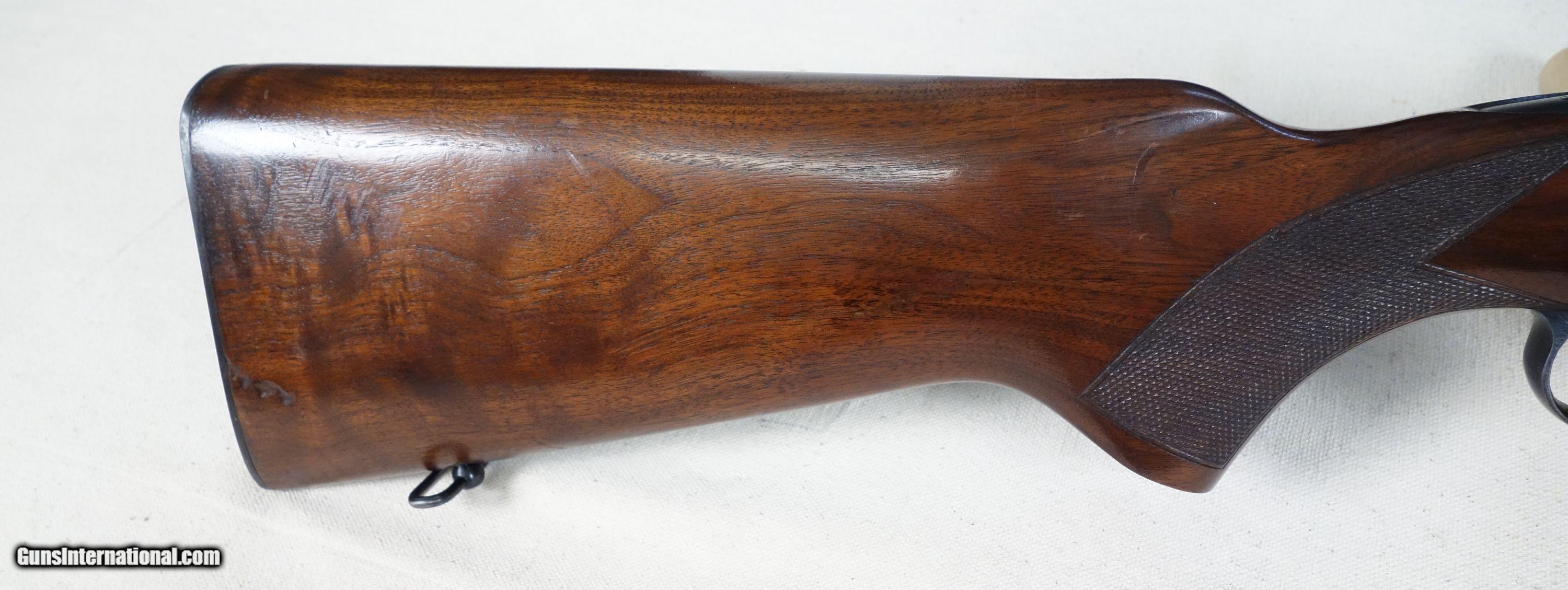 Description: RARE! VG-Excellent condition .300 H&H with STAINLESS steel barrel! S/N 320*** with matching bolt Mfg. 1954. 26" stainless barrel with excellent bore. 96% Blue, 96% Varnish over most with a couple noticeable impressions as shown. Straight comb stock, all correct components. 100% original and highly collectible. Please click on the blue, top right "see all listings" button for more exceptional vintage collector arms to be added daily. SOLD Curio/Relic: Yes |