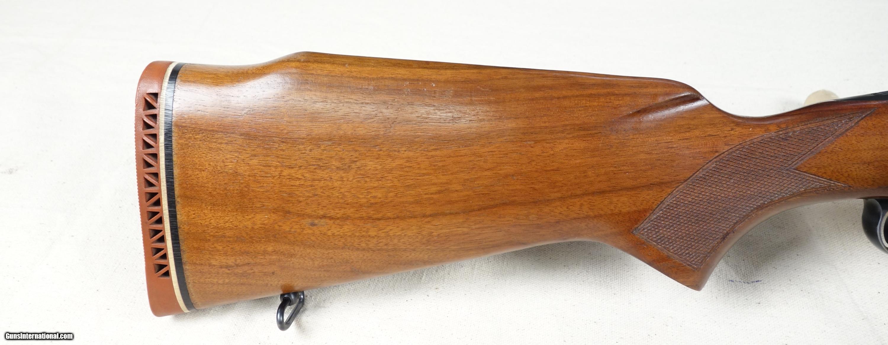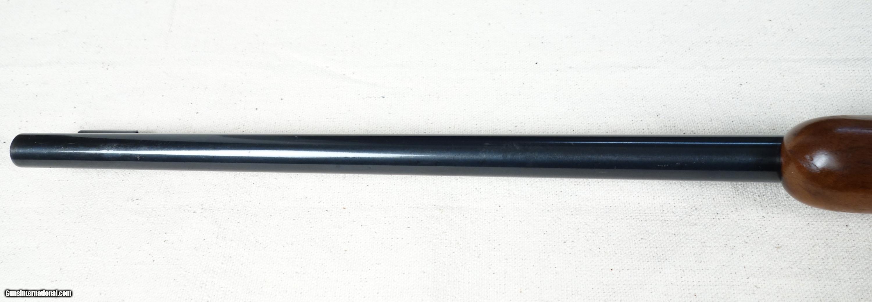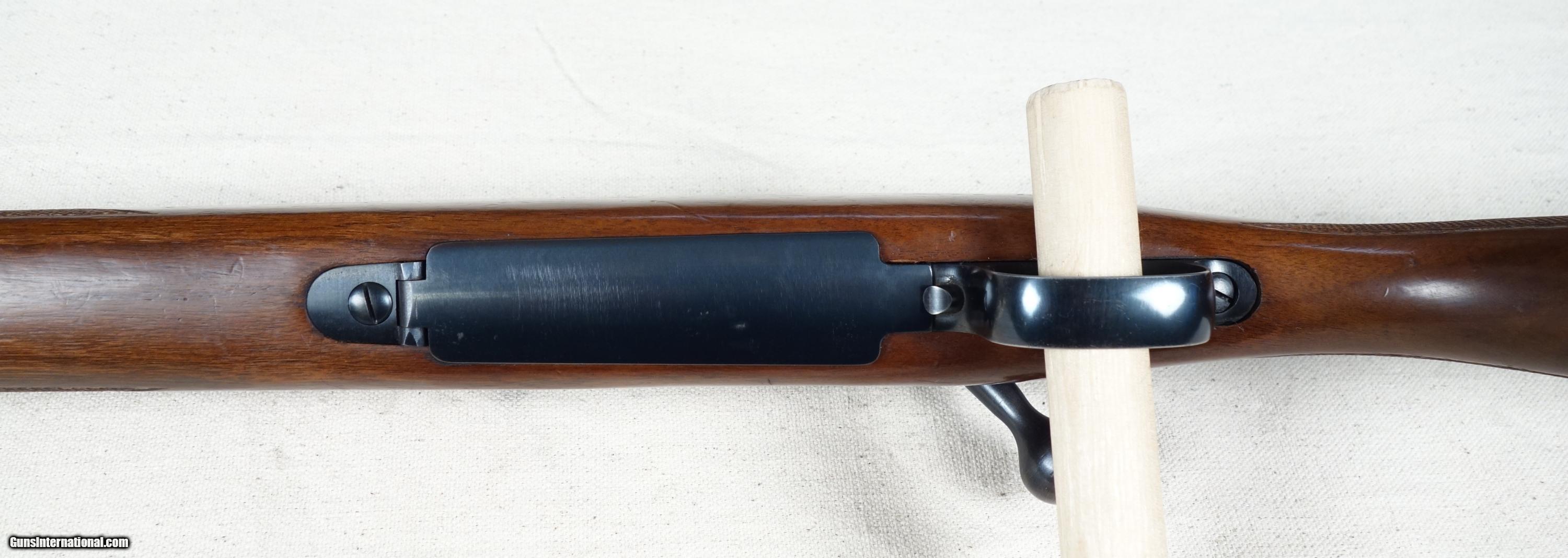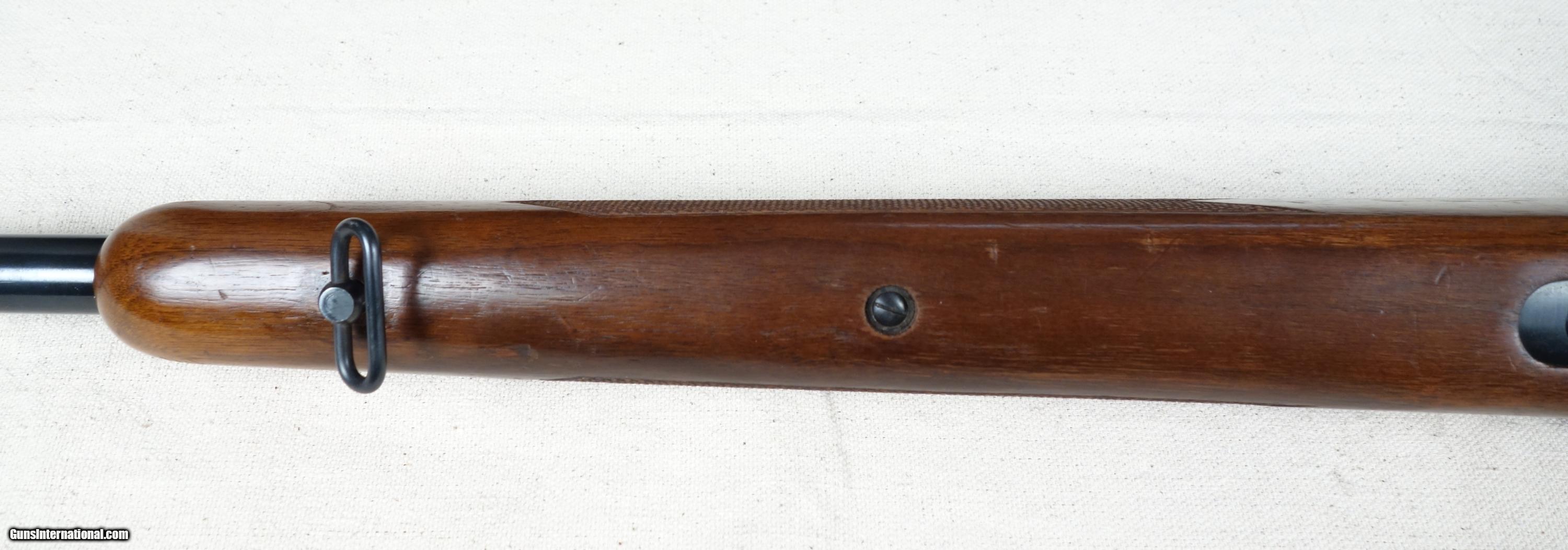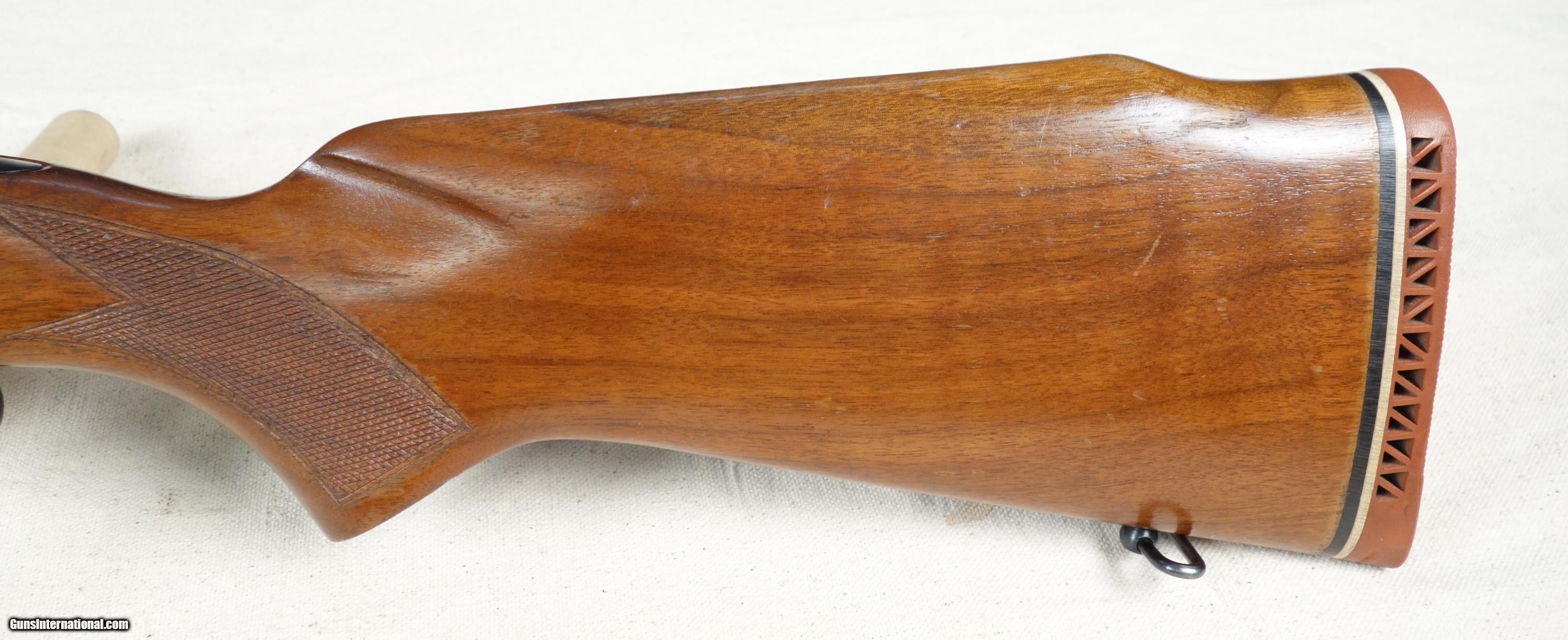 Description: Exceedingly rare Pre 64 Winchester 70 300 WIN mag standard rifle. 24" Barrel. Factory red ventilated pad as issued on all in this caliber. S/N 509xxx with matching bolt Mfg. 1963. 97% Blue, 95% Varnish with light impressions and handling marks. All original with exception of a tiny amount of epoxy fill around front swivel stud as shown. Overall, a very nice looking rifle in a very difficult caliber to locate, which made up less than 1% of total production! SOLD Curio/Relic: Yes |