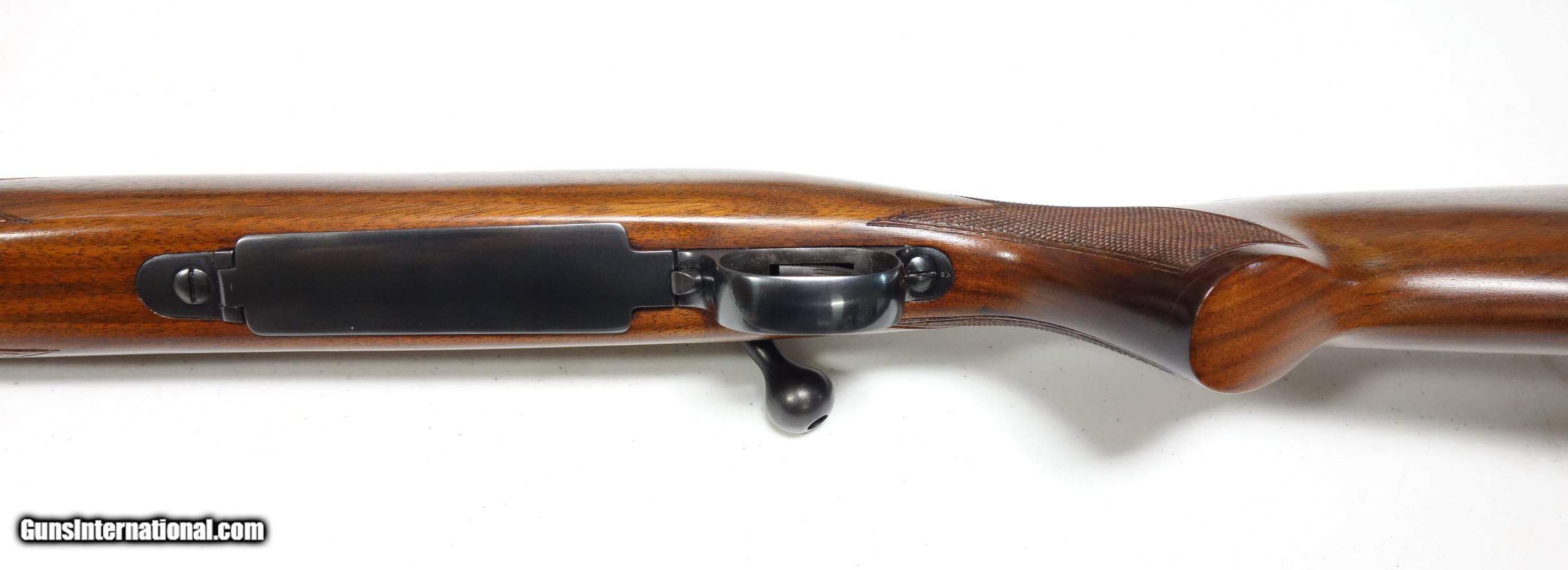 Description: Mint condition other than a small chip repair at tip of toe. Pre 64 Winchester 70 in highly desirable and fairly scarce 300 H&H Mag. S/N 431216 with matching scribed bolt made in 1958. Barrel is 26" with an excellent bore. Like new inside and out other than the repair mentioned. SOLD Curio/Relic: Yes |
