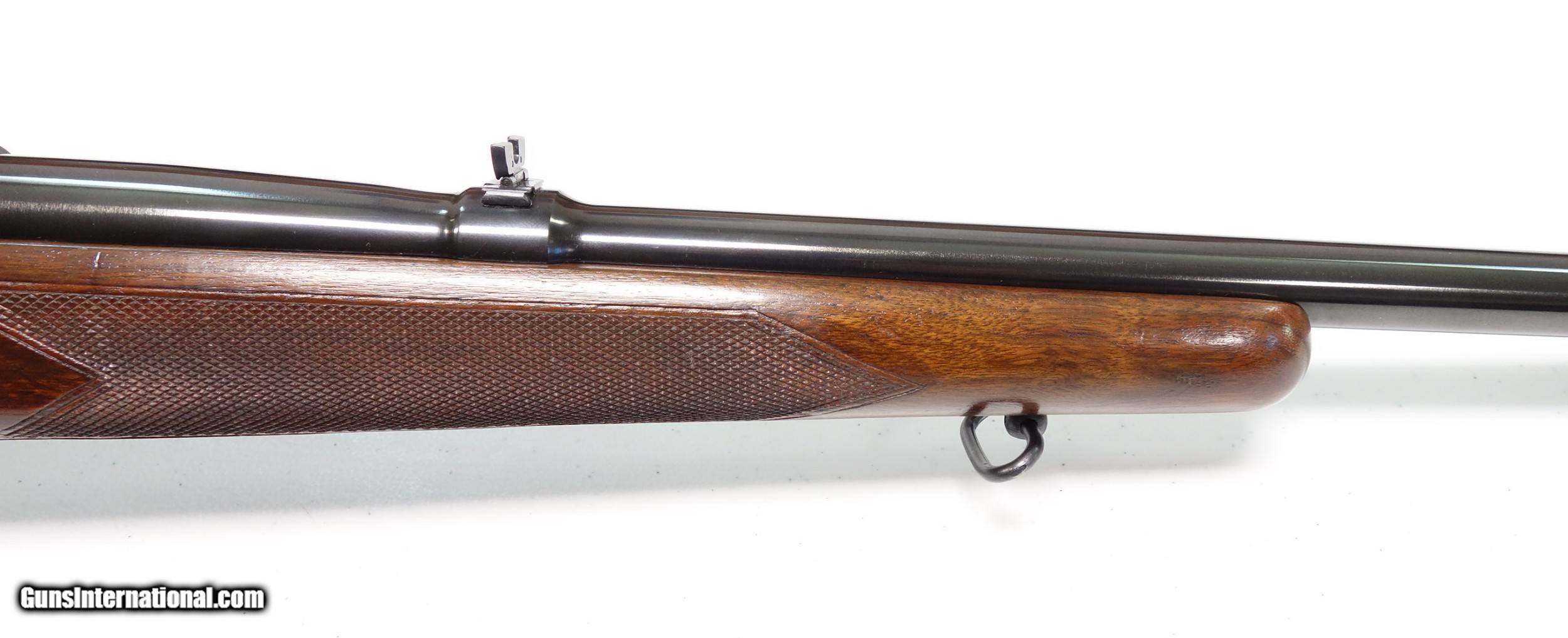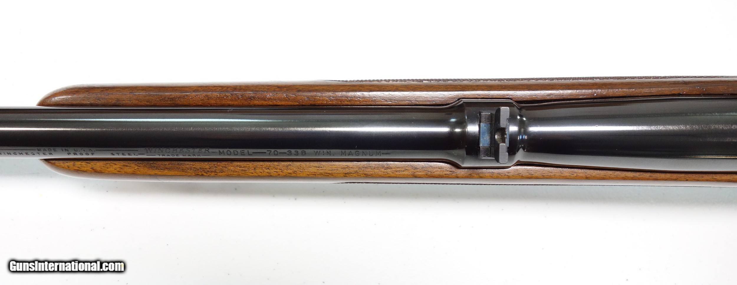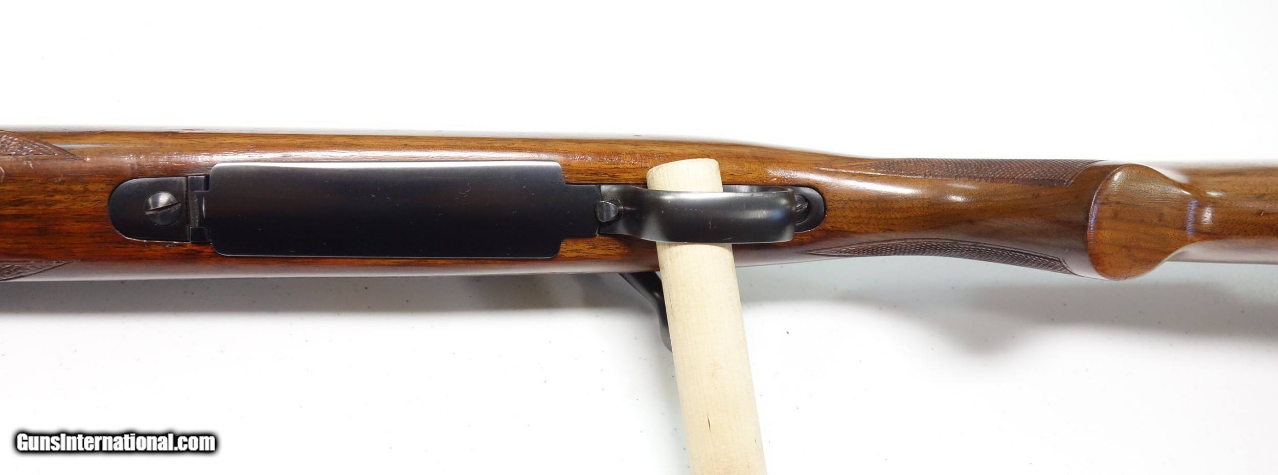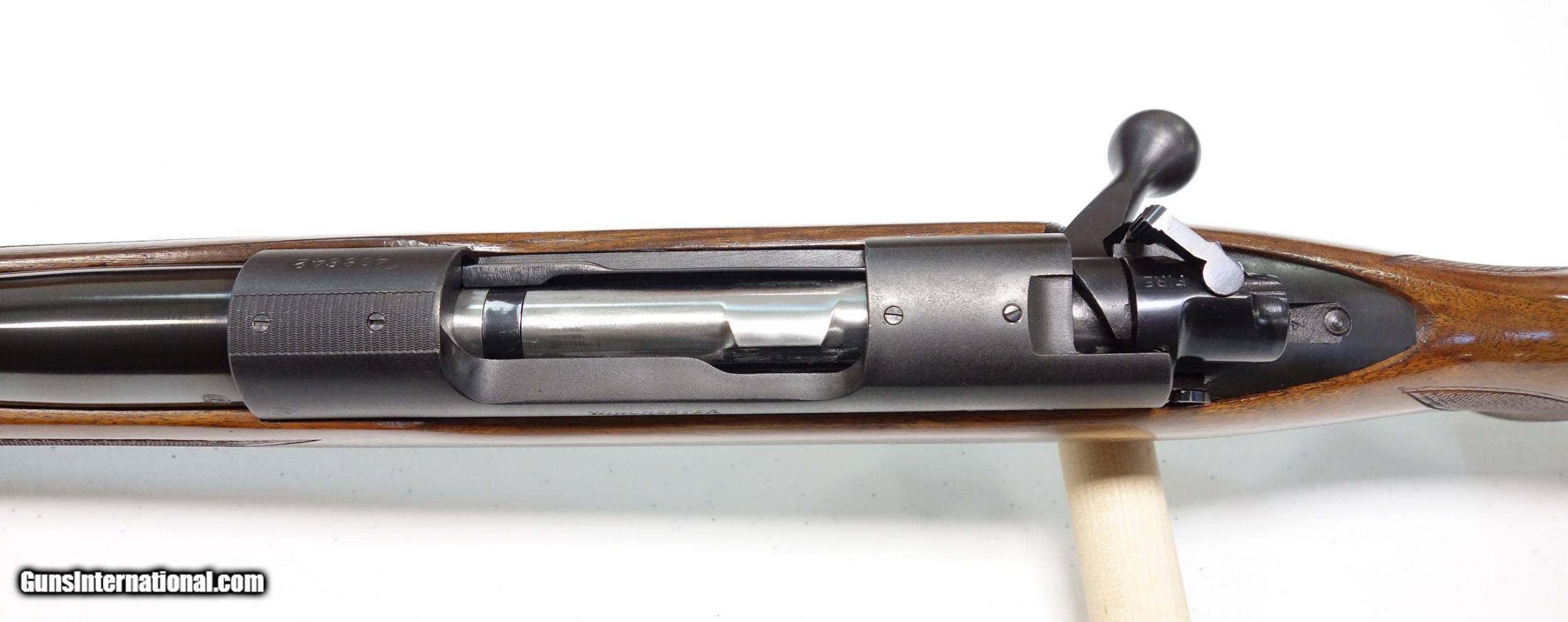 Description: Powerful .338 Magnum caliber in excellent condition throughout. S/N 408xxx with matching number bolt made in 1957. Barrel length is 25" with an excellent bore. All mechanical functions are smooth and operating as they should be. 99% Blue is about spotless along with 98% Varnish having some scattered light impressions. Factory solid red pad looks nearly new and remains soft. One of the nicest examples that you will see offered for sale. Flat rate of $55 for expedited/fully insured shipping from Alaska. SOLD Curio/Relic: Yes |