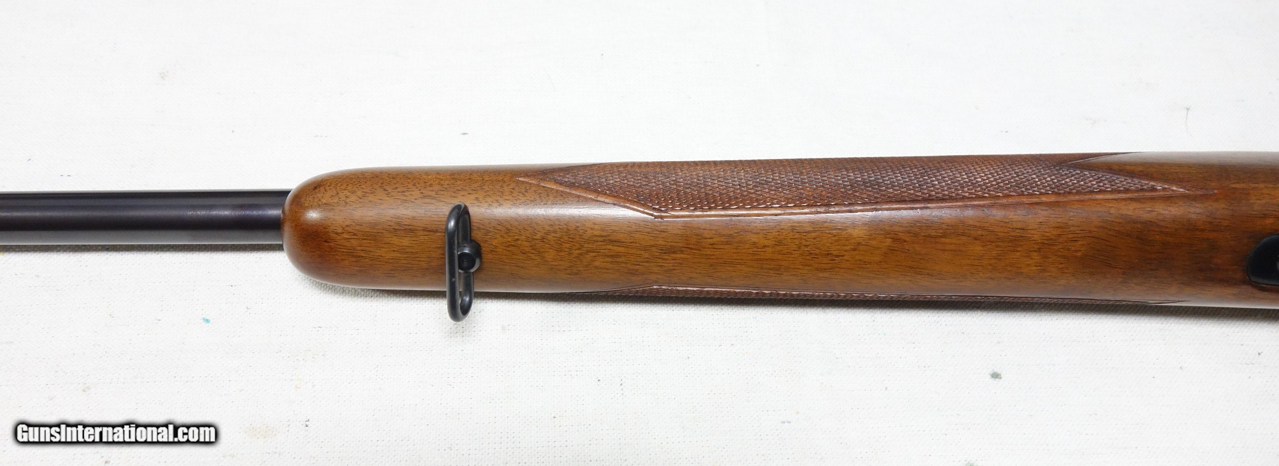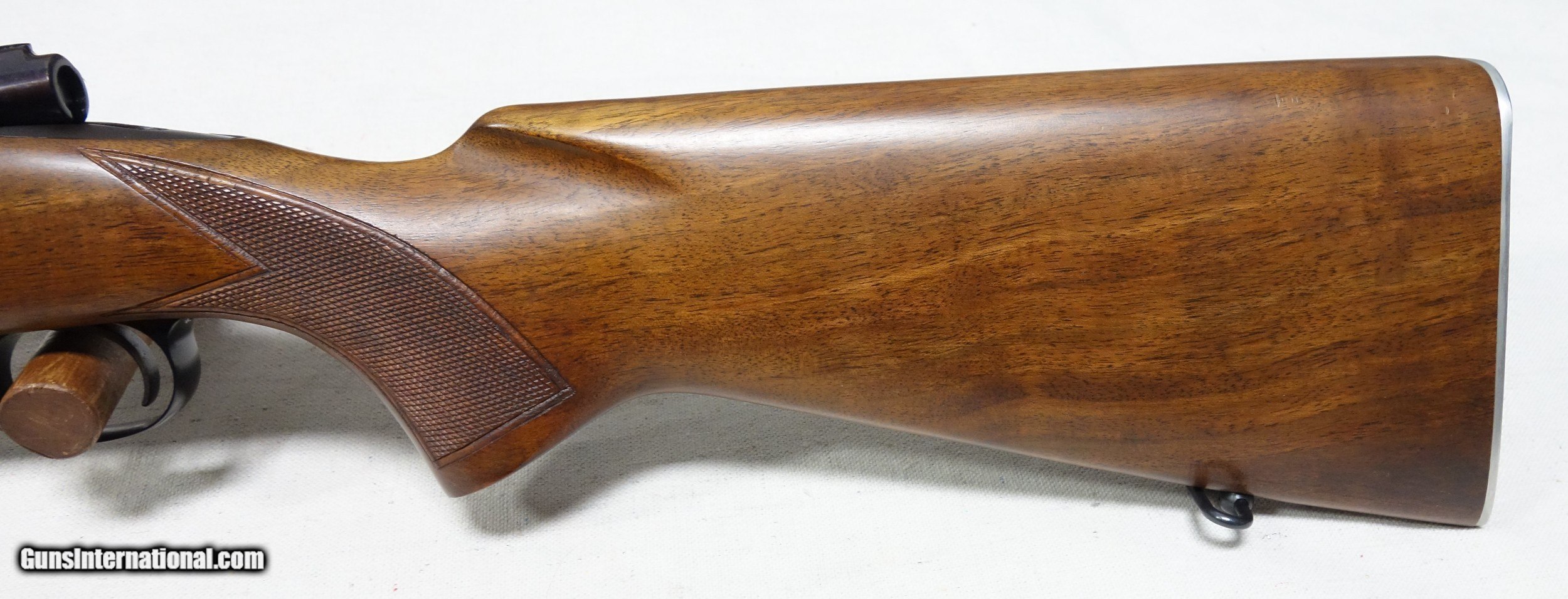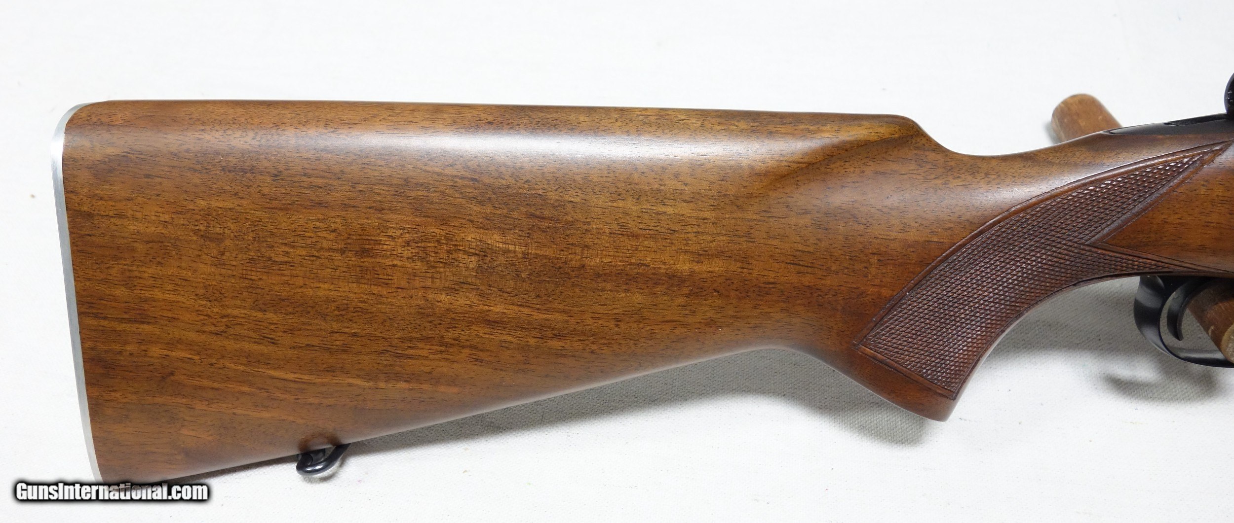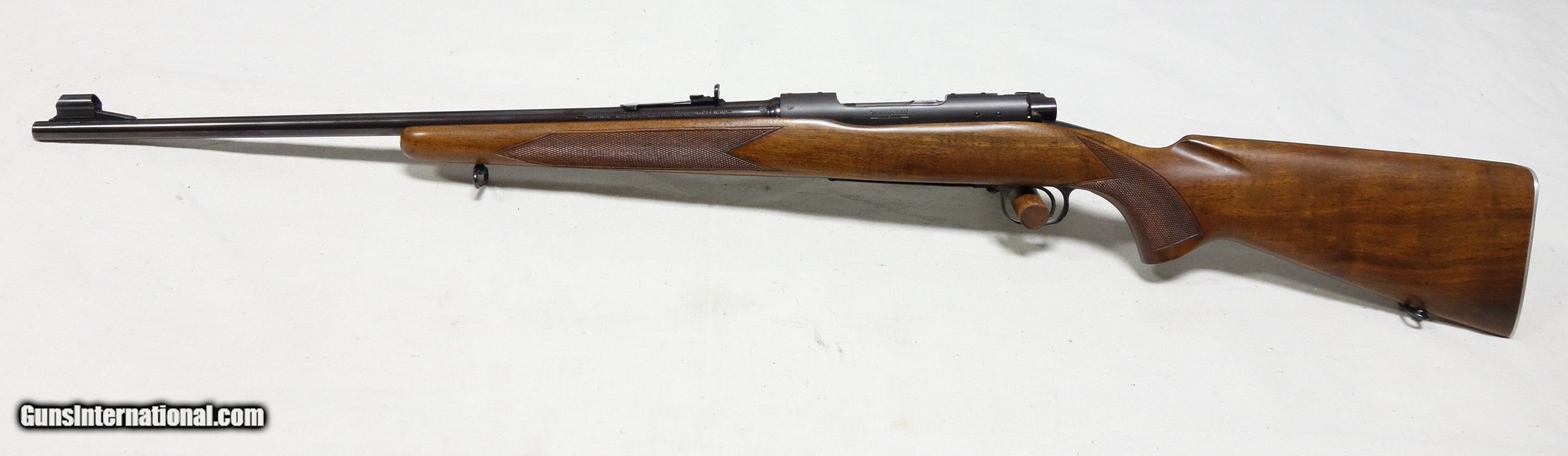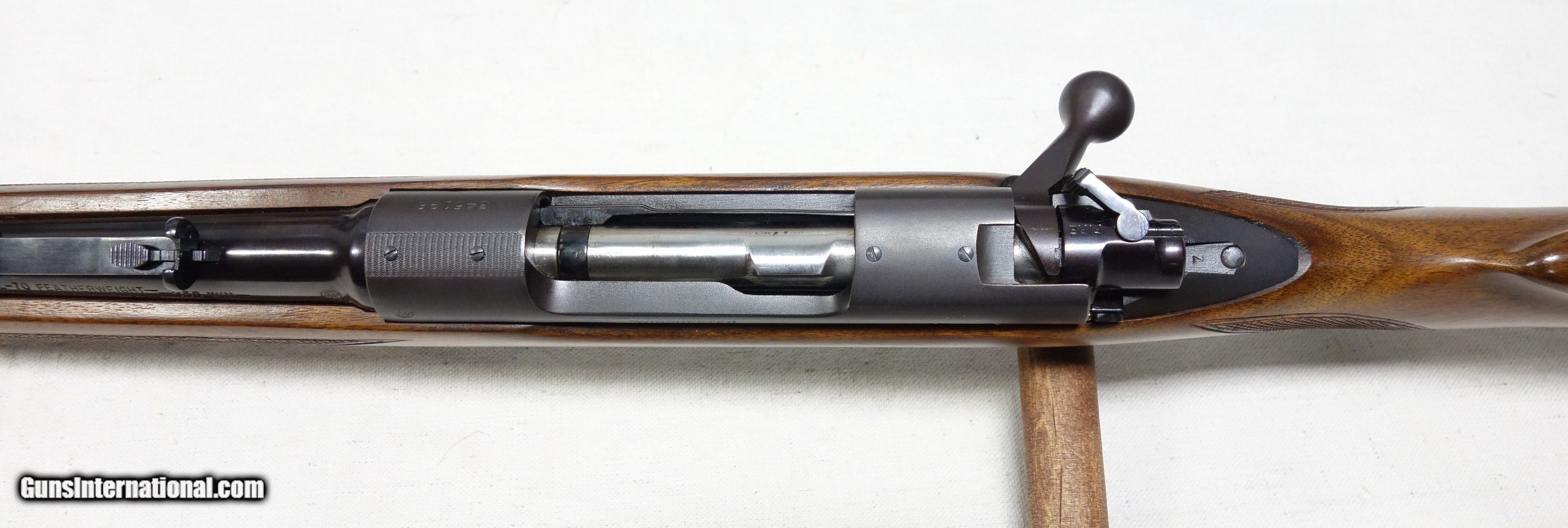 Description: Among the best you will ever see. This beautiful rifle is chambered in the ultra rare 358 Win. caliber. There were only 2,000 ever made in this caliber and many were recalled due to feeding problems making the survivors even rarer. S/N 345*** with matching scribed bolt made in 1955. Correct low comb stock and 22K rear sight. 99%+ mint condition to any rational viewer with a very attractive piece of wood. 22" barrel. Aluminum bottom metal and buttplate. Another fabulous investment grade firearm. SOLD Curio/Relic: Yes |