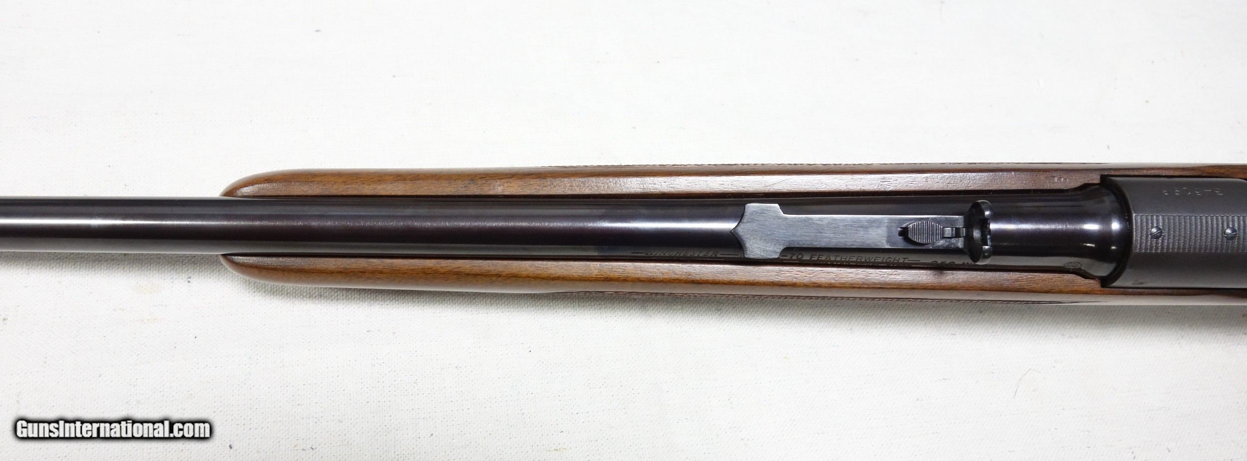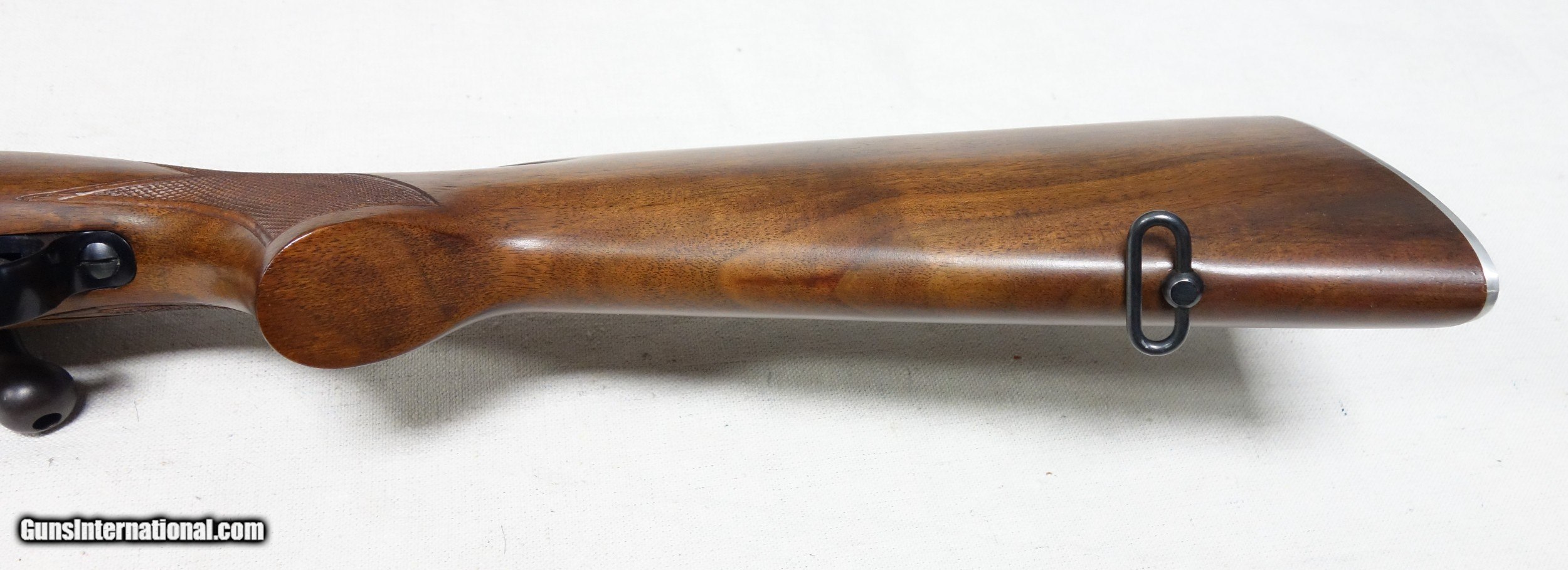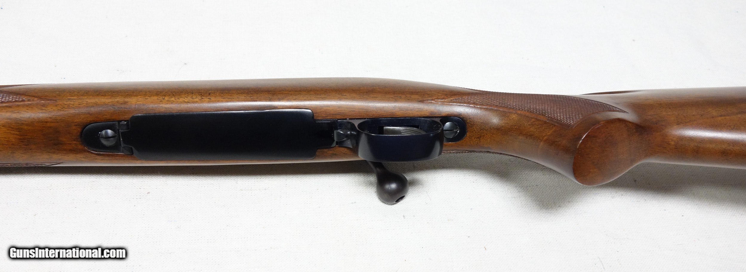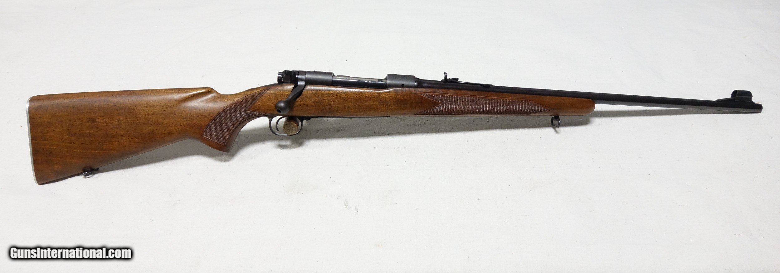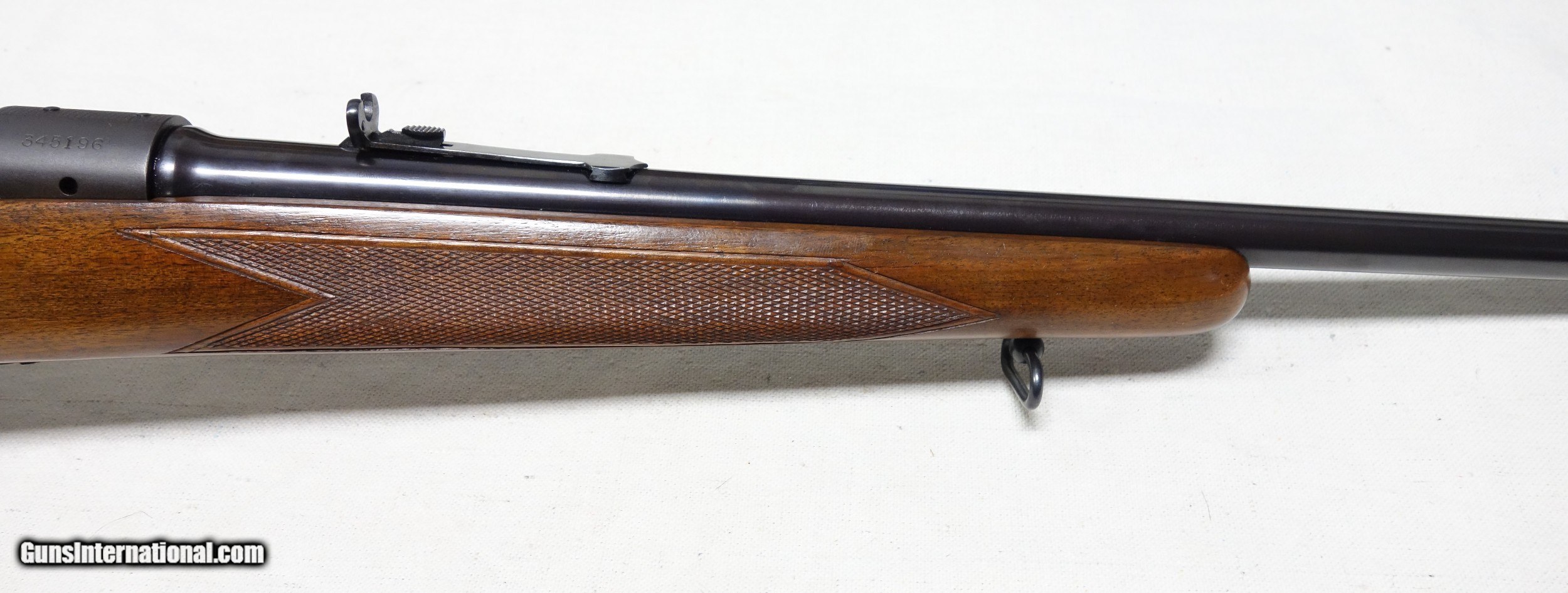 Description: Among the best you will ever see. This beautiful rifle is chambered in the ultra rare 358 Win. caliber. There were only 2,000 ever made in this caliber and many were recalled due to feeding problems making the survivors even rarer. S/N 345*** with matching scribed bolt made in 1955. Correct low comb stock and 22K rear sight. 99%+ mint condition to any rational viewer with a very attractive piece of wood. 22" barrel. Aluminum bottom metal and buttplate. Another fabulous investment grade firearm. SOLD Curio/Relic: Yes |