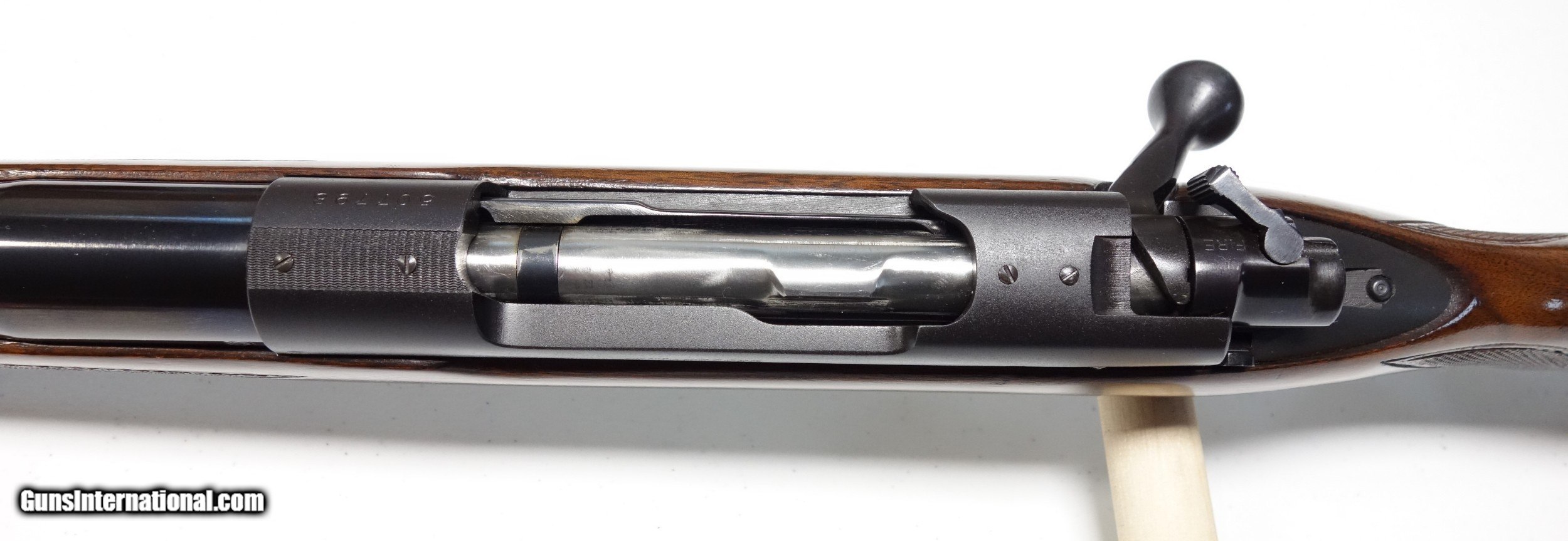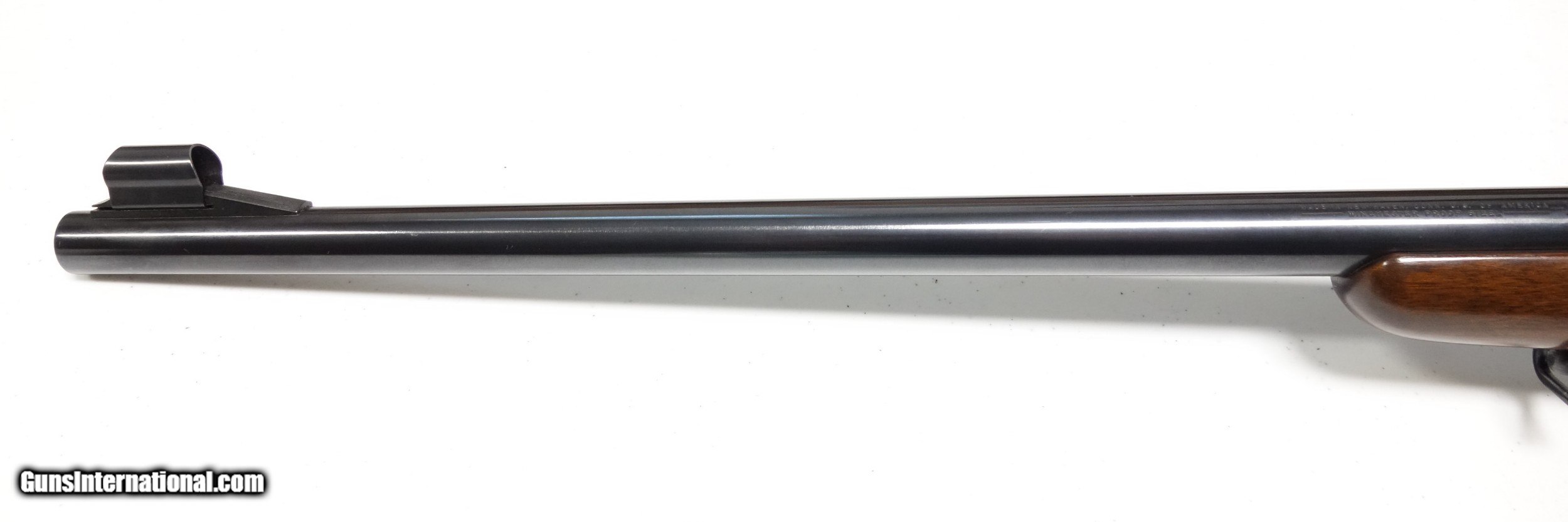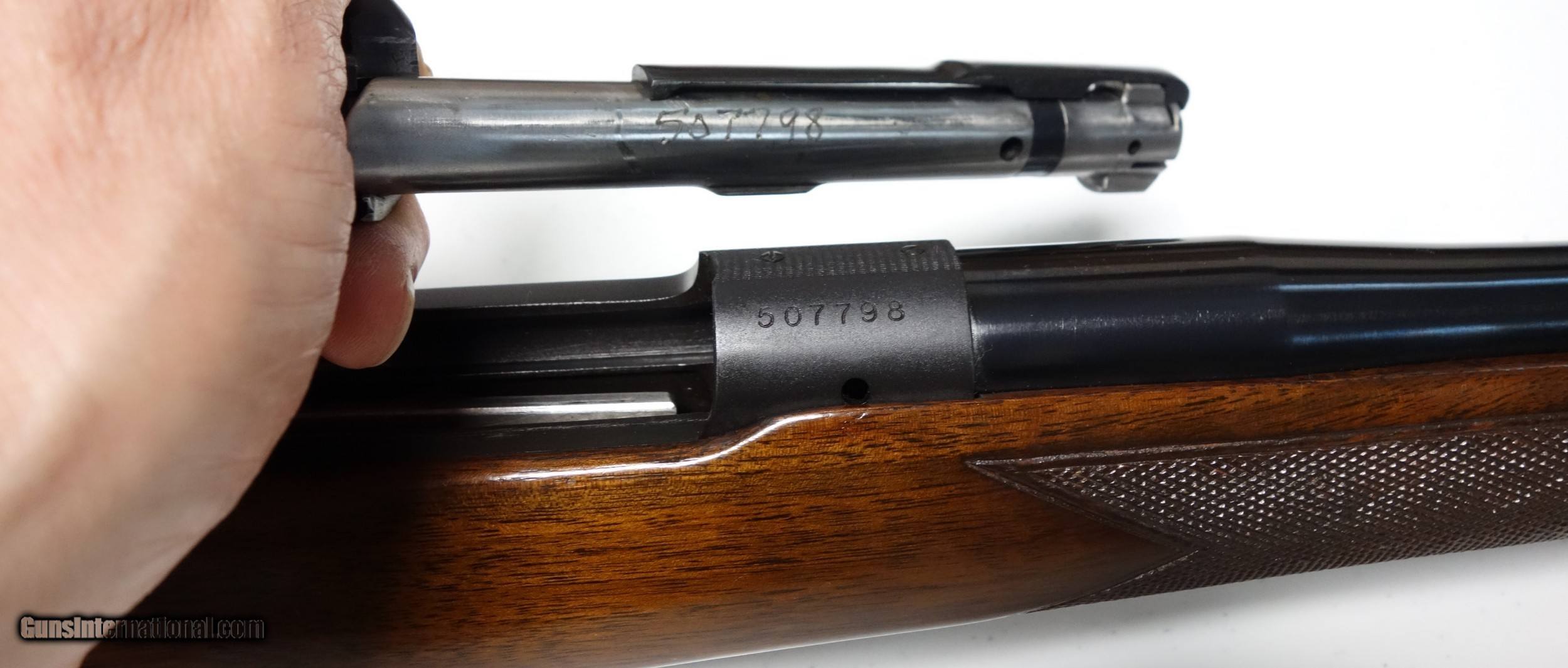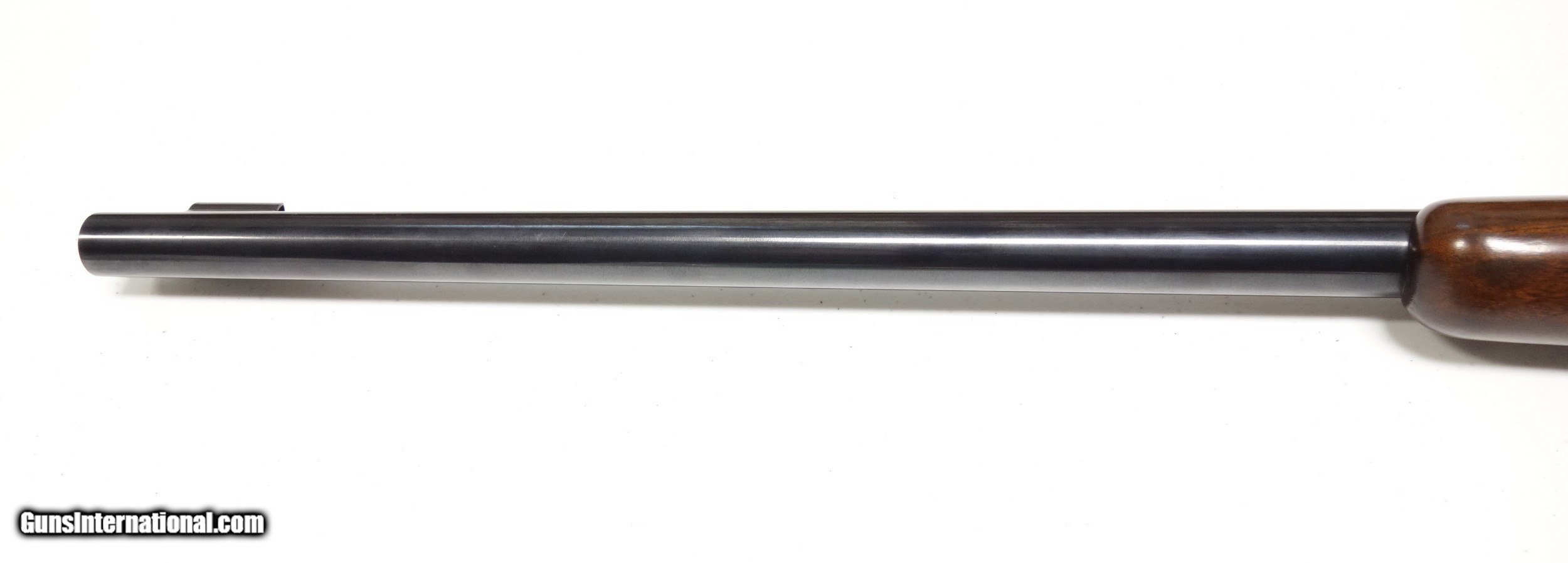 Description: Outstanding example. S/N 507*** with matching bolt Mfg. 1961. 99% Varnish with exception of one noticeable ding near forearm hold down screw. 99% Blue. 25" barrel. Factory installed pad as issued on all 375s. Original 70-B rollover rear sight. Mechanics and bore are excellent. SOLD Curio/Relic: Yes |