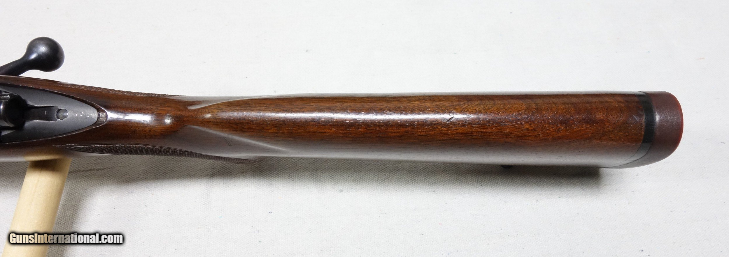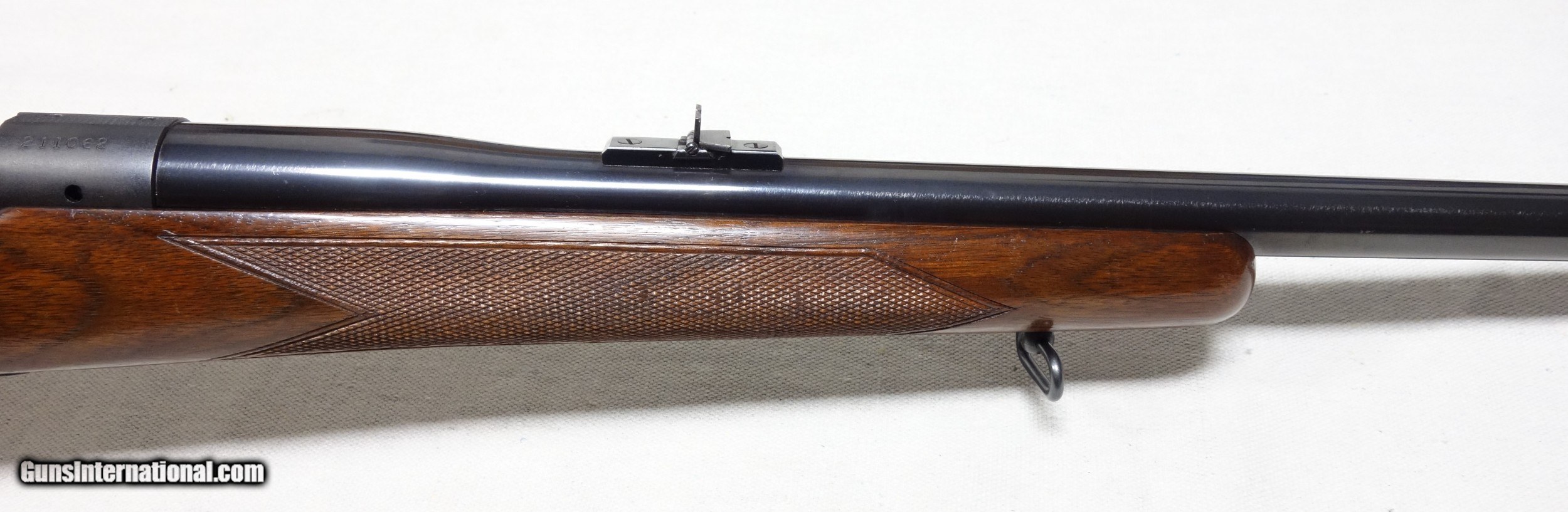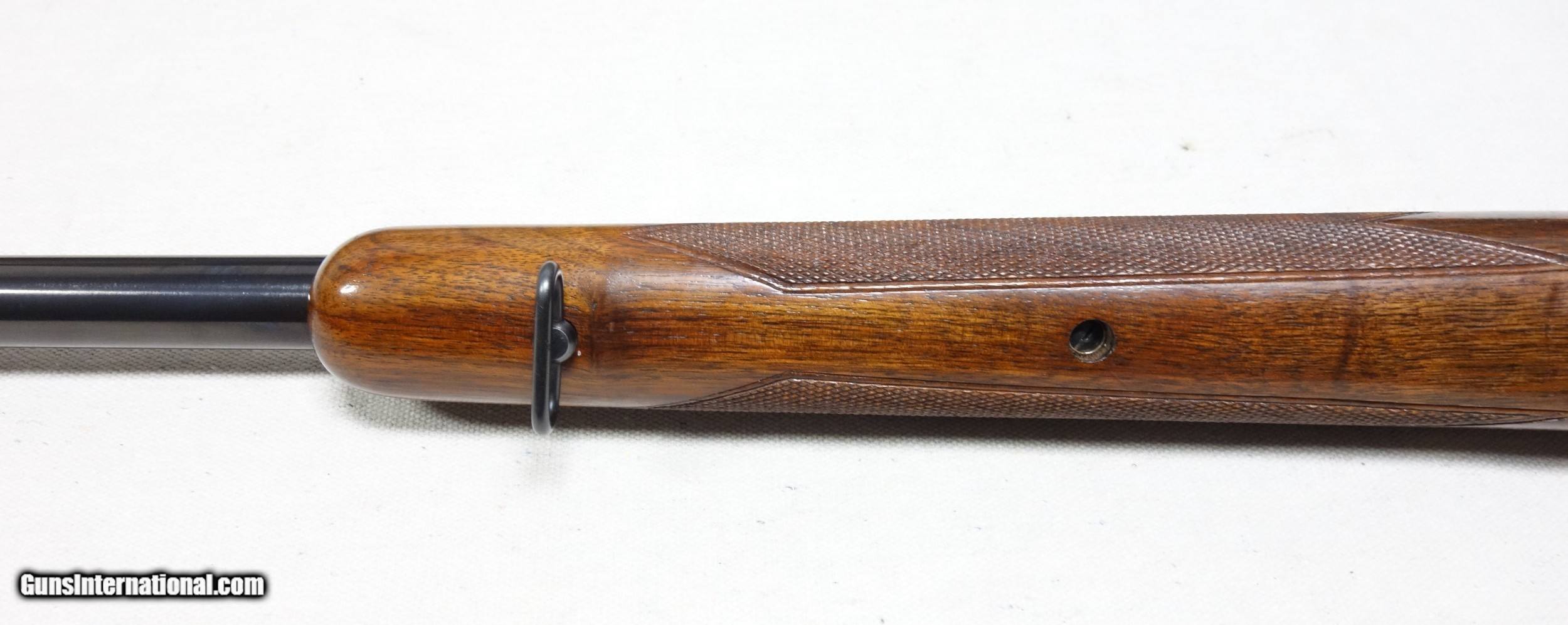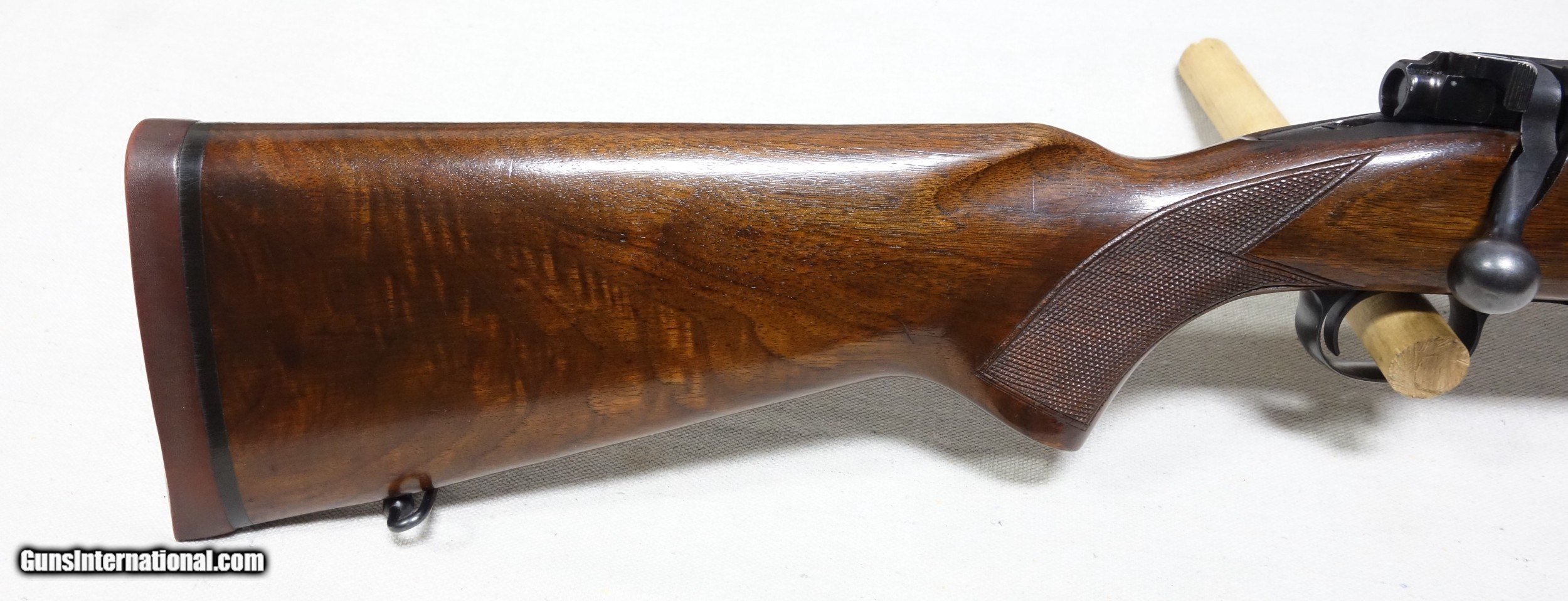 Description: Outstanding example of the powerful and versatile 375 H&H Mag. S/N 211*** with matching scribed bolt made in 1952. 98% Blue throughout. 97% Varnish. Beautiful dark wood with nice grain. Factory recoil pad as issued on all 375s. Low comb stock. 25" barrel with excellent bore. The greatest magnum caliber ever conceived and the parent case to nearly all others since. Please add $75 for expedited and fully insured shipping from Alaska to your FFL. SOLD Curio/Relic: Yes |