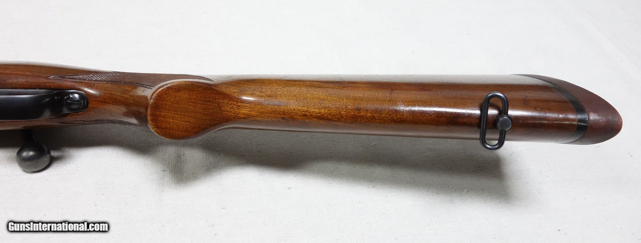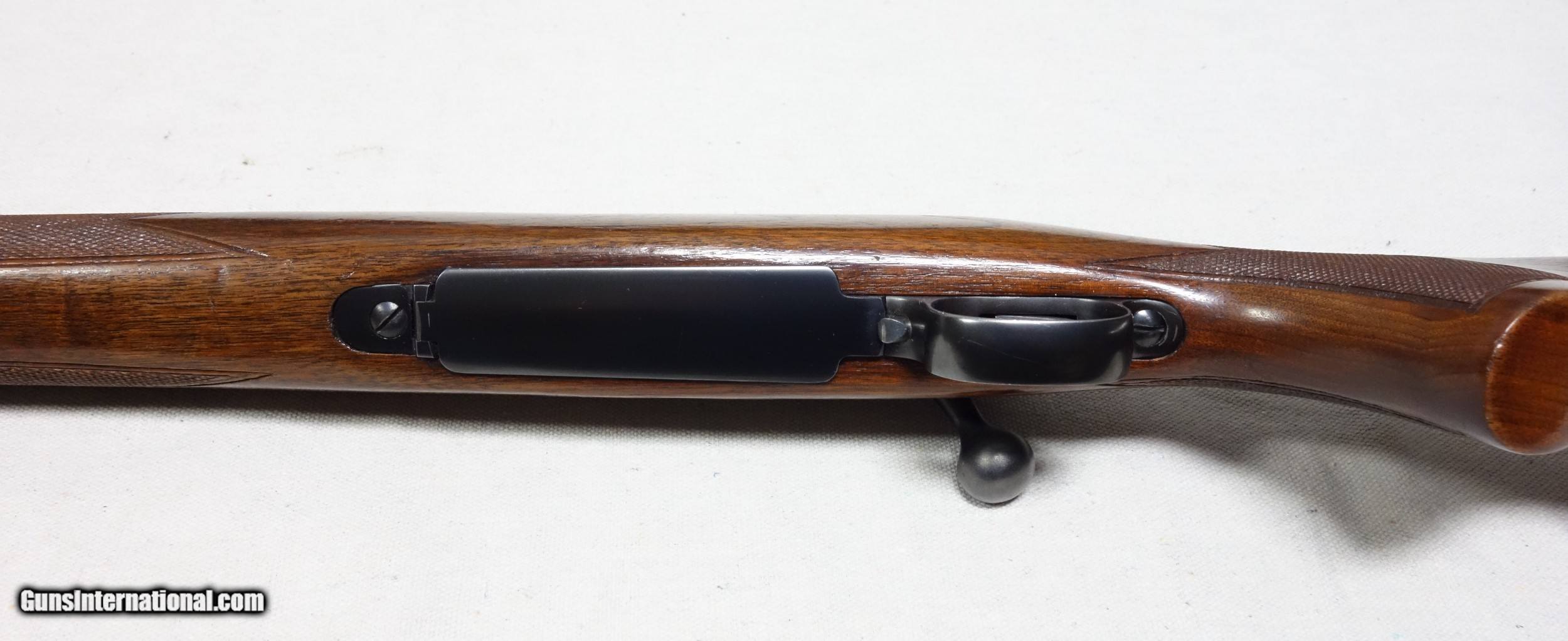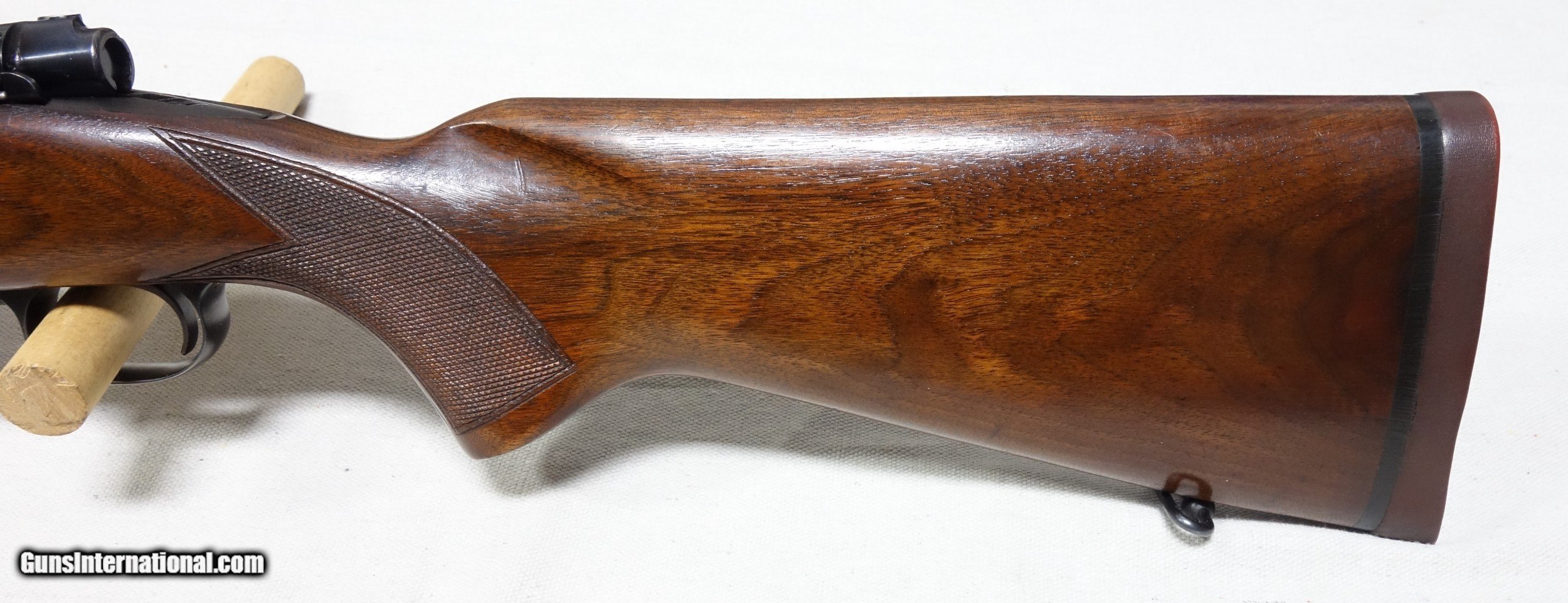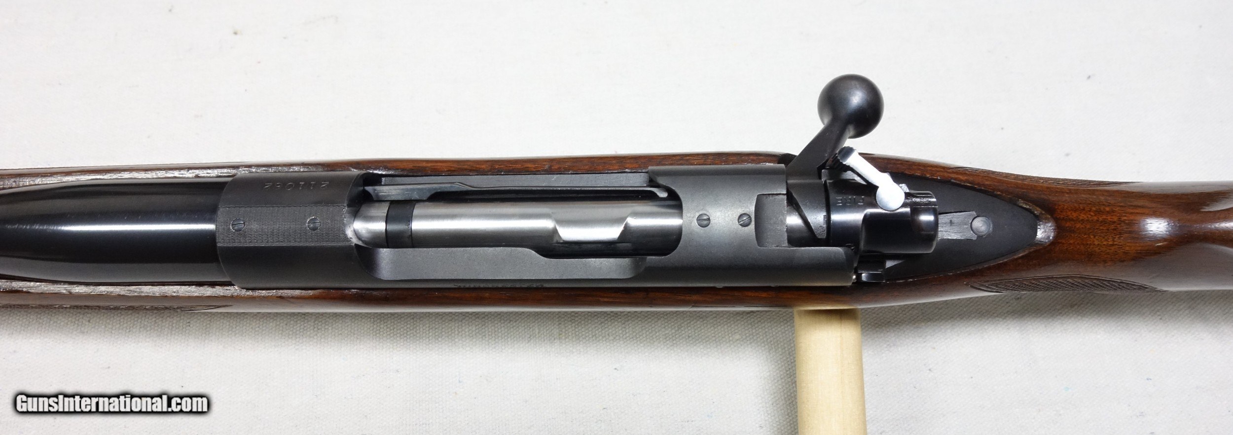 Description: Outstanding example of the powerful and versatile 375 H&H Mag. S/N 211*** with matching scribed bolt made in 1952. 98% Blue throughout. 97% Varnish. Beautiful dark wood with nice grain. Factory recoil pad as issued on all 375s. Low comb stock. 25" barrel with excellent bore. The greatest magnum caliber ever conceived and the parent case to nearly all others since. Please add $75 for expedited and fully insured shipping from Alaska to your FFL. SOLD Curio/Relic: Yes |