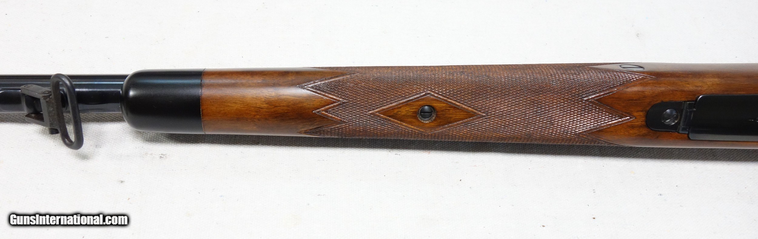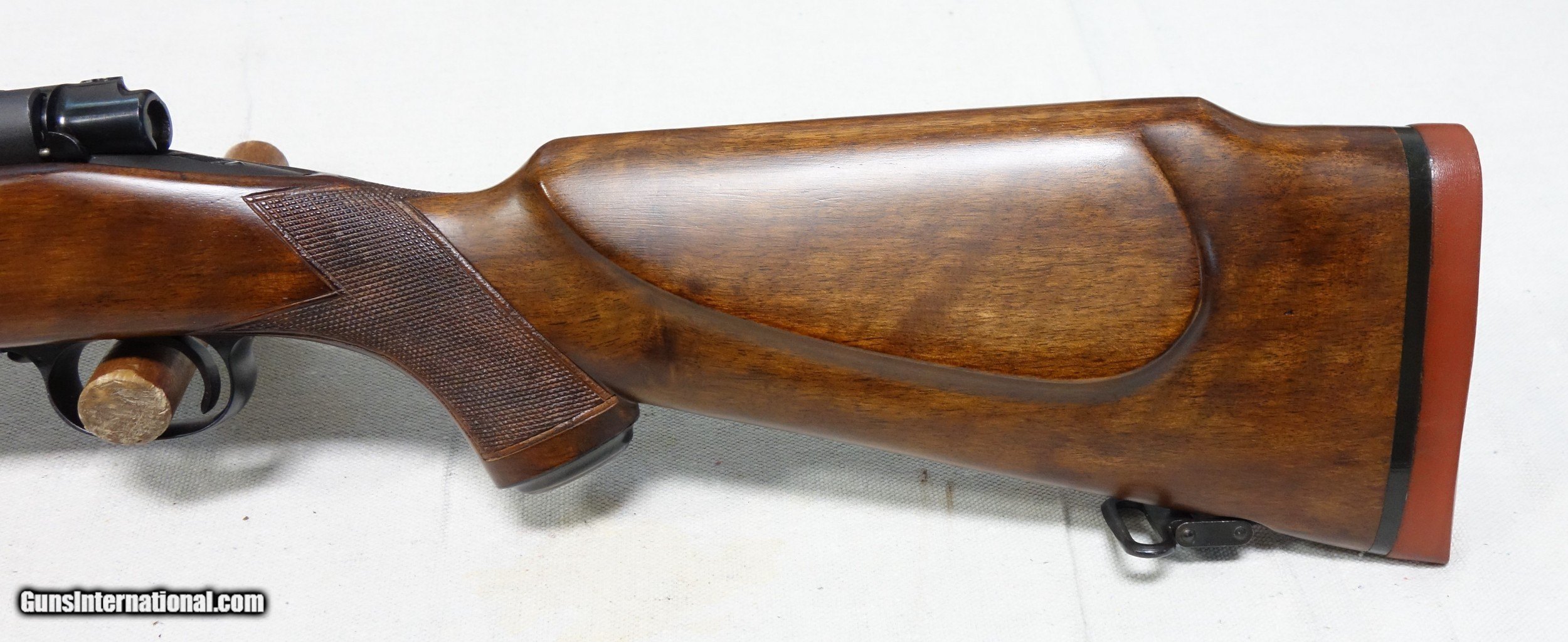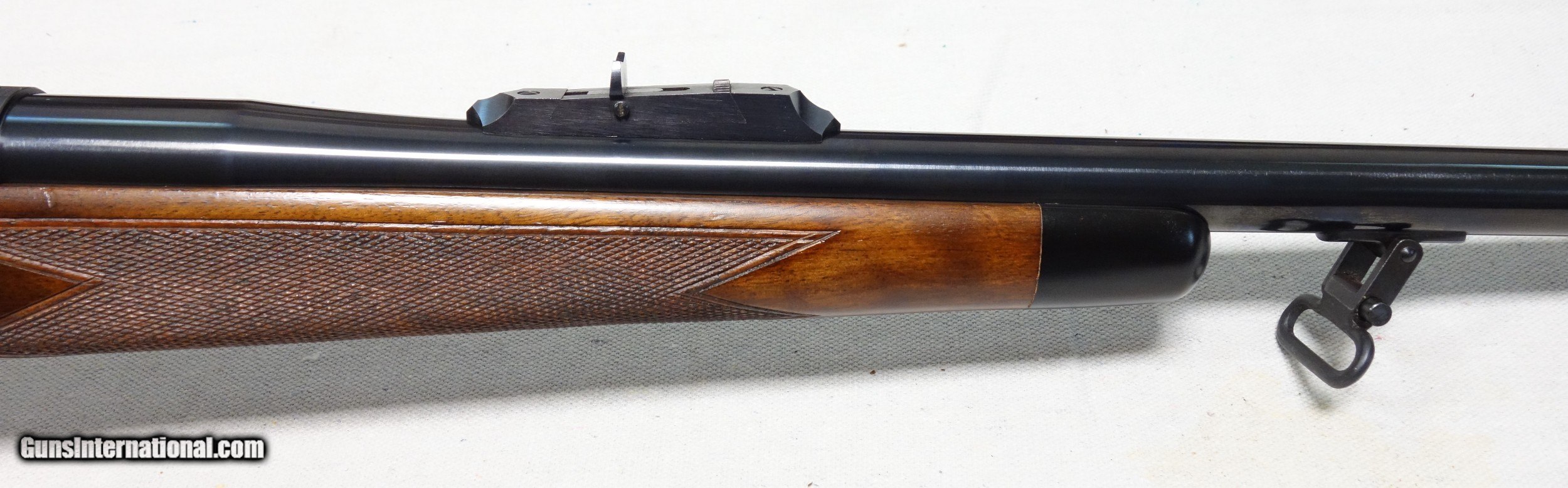 Description: ***SOLD*** Ultra rare (only 1226 ever made) 458 Winchester Magnum African in pristine condition! S/N 380*** with matching scribed bolt made in 1956. 99% plus condition throughout with perfect bore and mechanics. These few incredible rifles were actually put together much like Super Grades, so have most of the usual appointments such as deluxe stock with cheekpiece and contrasting foreend tip, Super Grade stamped floorplate, detachable swivels, etc. The inner action components of bolt body, extractor, and follower are also factory jeweled with properly applied S/N scribe on top of that jeweling. There is also a factory installed single cross bolt to prevent cracking, factory installed solid red pad, and a unique Lyman 37 front sight. A truly beautiful and highly collectible rifle! Expedited and fully insured shipping from Alaska to your FFL in a custom cut foam lined box is $100. SOLD Curio/Relic: Yes |