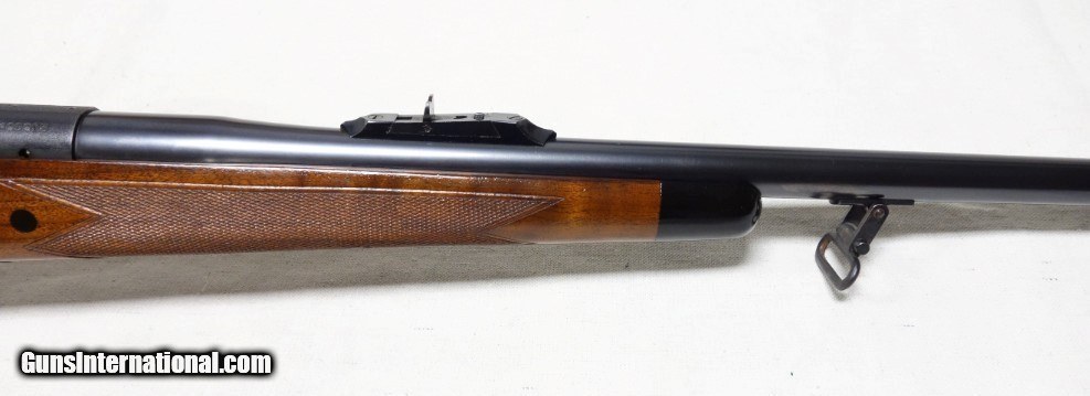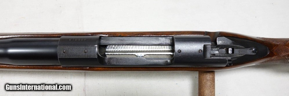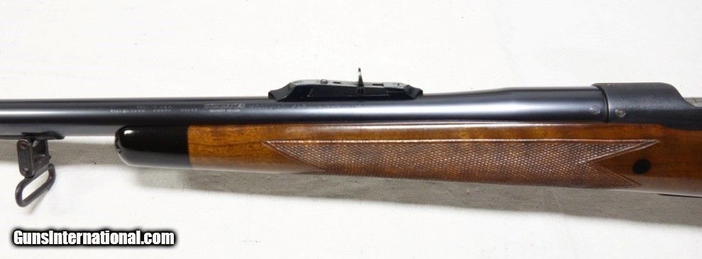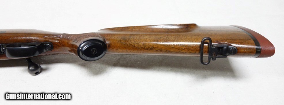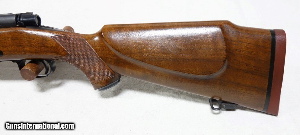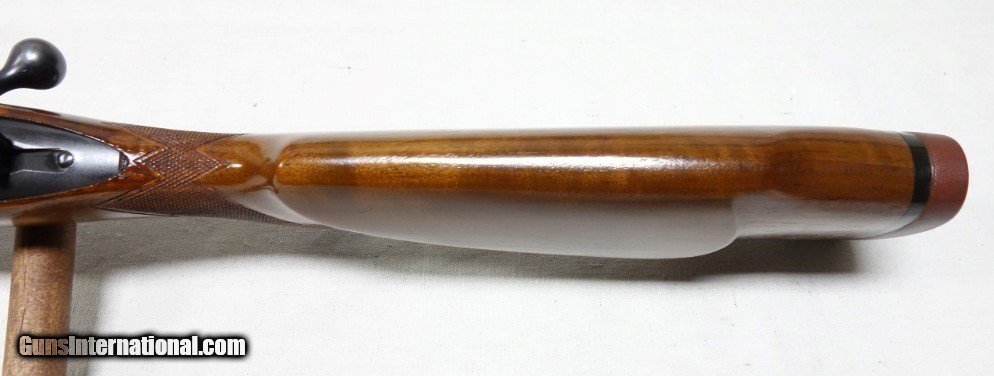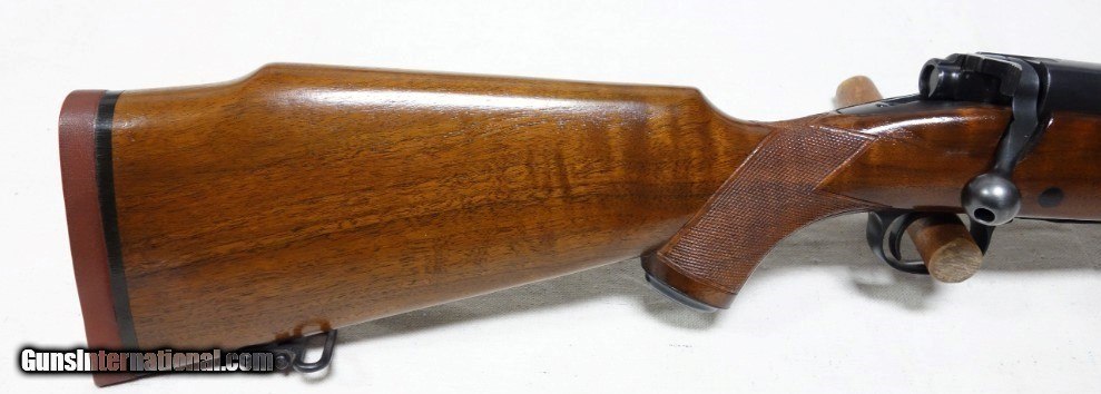 Description: Investment grade Winchester 70 African Super Grade in ultra rare 458 Win. Mag. Only 1226 ever made! S/N 409*** with matching scribed bolt made in 1957. 99% Blue and Varnish. 25" rust blued barrel. All correct and unique "African" features are present including jeweled action components, specialized rear sight, Lyman 37FA silver bead front sight (used only on this substyle) 1 1/2" detachable swivels, SG stamped floorplate, etc. All 458s had stock cross bolts in 3 different styles. This rifle has the double flush mounted type. Original factory installed solid red pad is excellent, soft, and unbulged at heel. An extraordinary rifle that would be nearly impossible to upgrade! Shipping from Alaska is $75 via Priority Mail with full insurance in a custom cut foam lined box for maximum protection. Credit card users please add 3%. SOLD Curio/Relic: Yes |