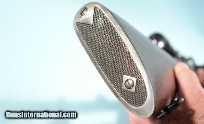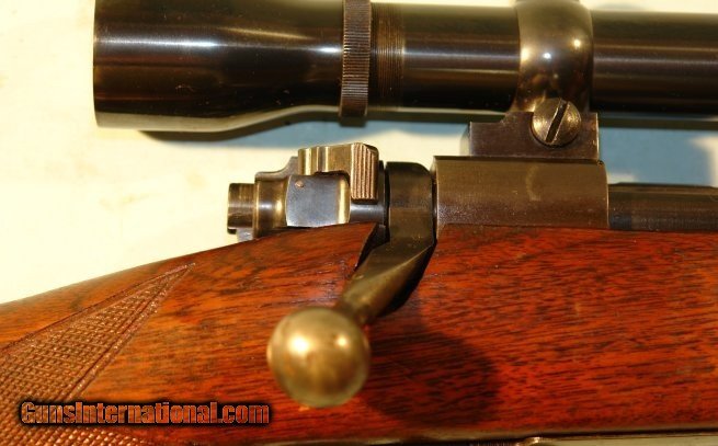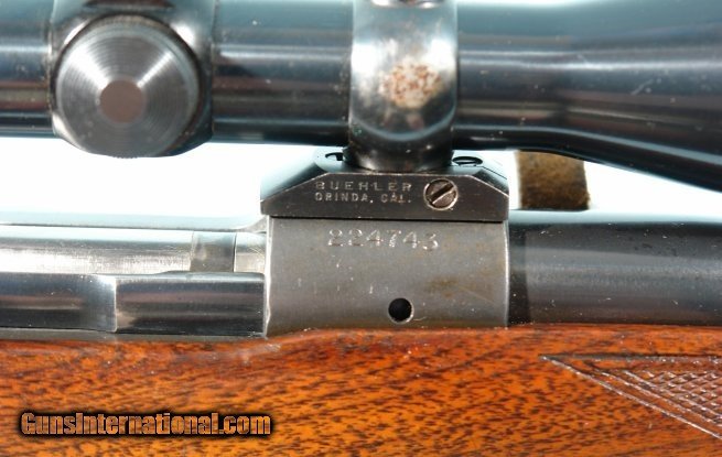 Description: PRE-64 WINCHESTER MODEL 70 BOLT ACTION .30-06 CAL. RIFLE WITH WEAVER K4 SCOPE CIRCA 1952. All original with Buehler two piece mounts in original factory tap holes. Very good plus to fine with approximately 95% blue with some light patina and wear. Stock with the original finish. Factory checkered steel butt plate. Light scratch on right side of butt and a few rub marks from carry around floorplate. Perfect working order and mint bore and rifling. Scope with perfect optics. Nice early 1950’s quality. Lots of character with period steel scope never been cleaned or touched up. SOLD Curio/Relic: Yes |