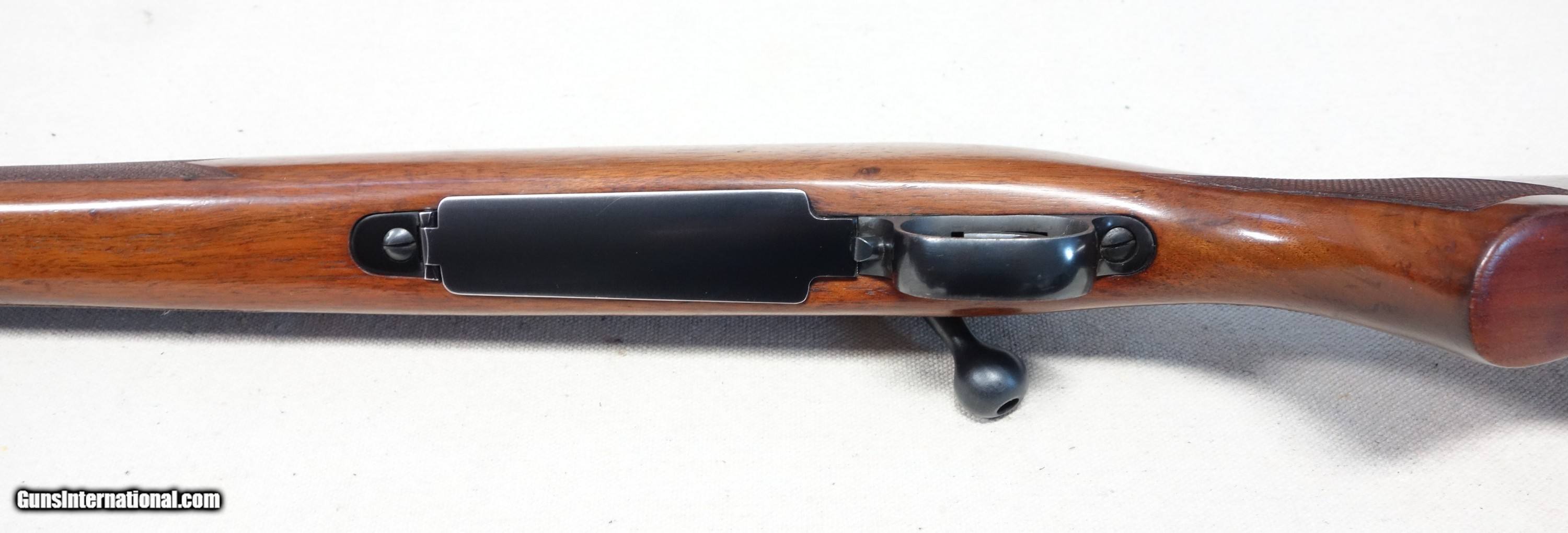 Description: ***SALE PENDING*** Highly respectable and untouched example of the very difficult to find 264 Featherweight. S/N 556936 with matching scribed bolt made in 1962. 22" slim profile barrel. Excellent condition throughout with all original finishes and great factory ventilated pad as issued on all 264 FWTS. only. 97-98% overall with only light handling marks, an excellent bore, and perfect mechanical function. A 100% original and very collectible rifle in a wicked and flat shooting caliber that gets the job done. Please add $100 for expedited and fully insured shipping from Alaska SOLD Curio/Relic: Yes |