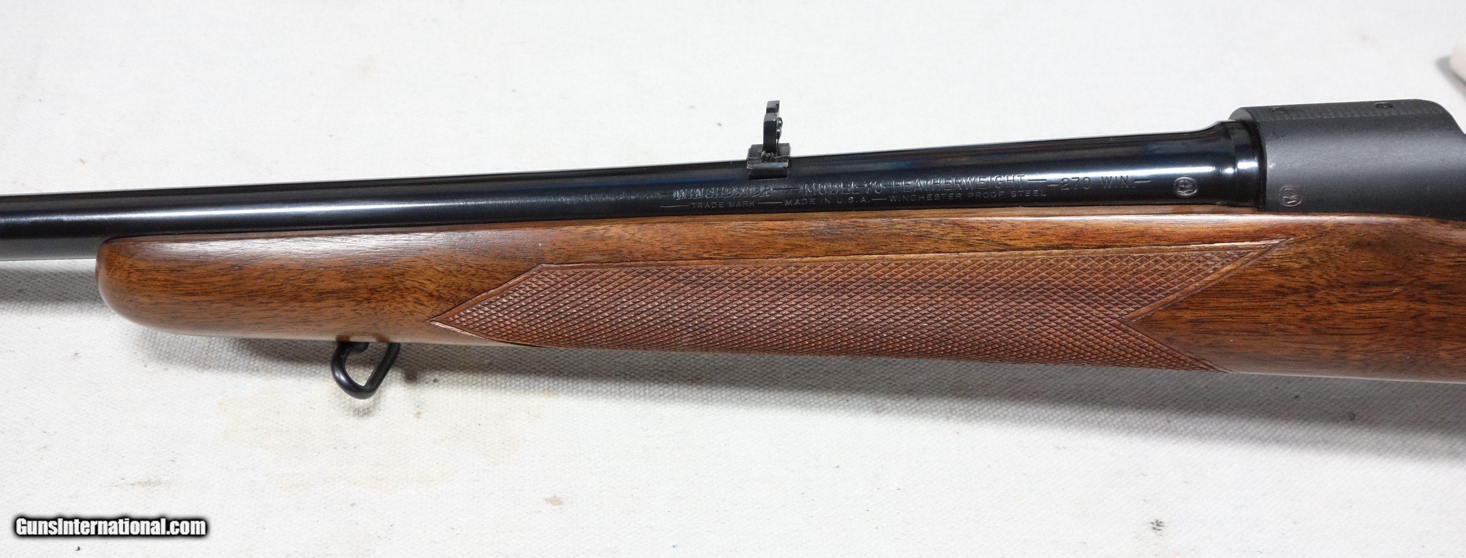 Description: ***SOLD*** The best there is. For those that know enough to care,,, this is what a real new in the box Model 70 is supposed to look like! Pre 64 Winchester Model 70 Featherweight in favorite .270 Win. caliber. S/N 407803 with matching bolt made in 1957. This rifle remains in 99-100% pristine condition throughout and has all the right "stuff": Aluminum butt, beautiful wood with wide checkering, etc. Genuine in all regards including box, label, and all of the paperwork and hang tags instead of the fake guns and contrived crap we often see. The box does have some broken corners with a bit of tape but is also in outstanding shape given its age. You won't find a better one than this. Shipping will be from $100-150 depending on how buyer wishes it sent. (one or two packages). SOLD Curio/Relic: Yes |