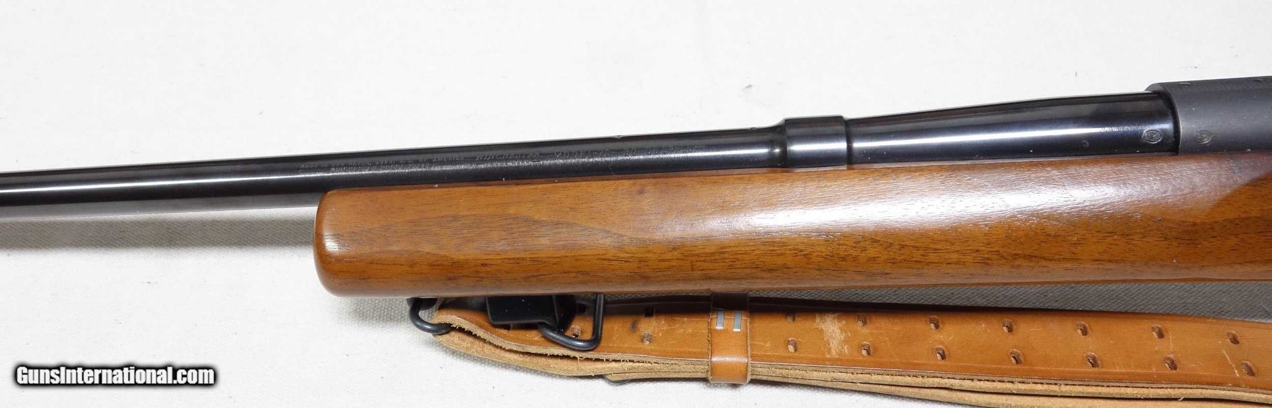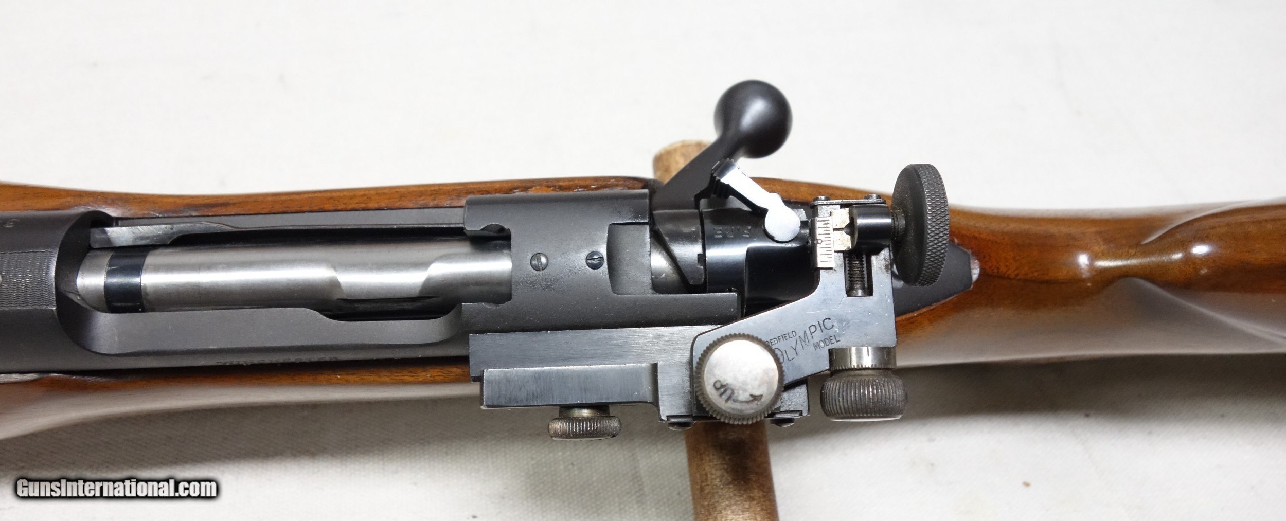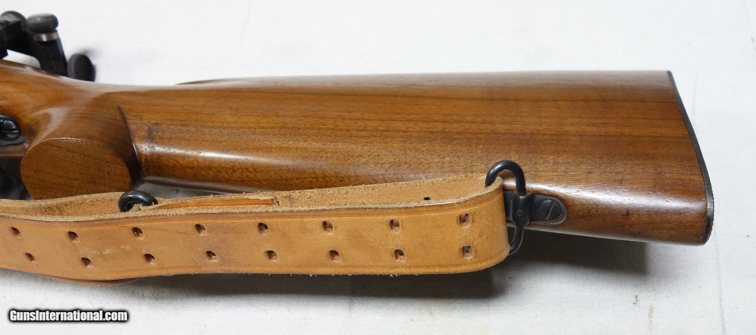 Description: ***SOLD*** Investment Grade National Match 30-06. This is the unique target style rifle with a standard weight barrel in a Marksman Target stock. Exceedingly rare style with less than 2,000 ever made. S/N 391*** with matching bolt made in 1956. The condition is superb showing 99% original finishes throughout. Correct low profile front ramp with no milled hood slot. Correct clip slotted receiver. Correct barrel bulge with no dovetail slot. The barrel is factory drilled for scope block. Current sights are the Lyman 77 globe front and Redfield International rear peep. There is a period leather sling in excellent condition. A beautiful rifle as nice as you will find. Expedited and fully insured shipping from Alaska to your FFL is an additional $75. SOLD Curio/Relic: Yes |