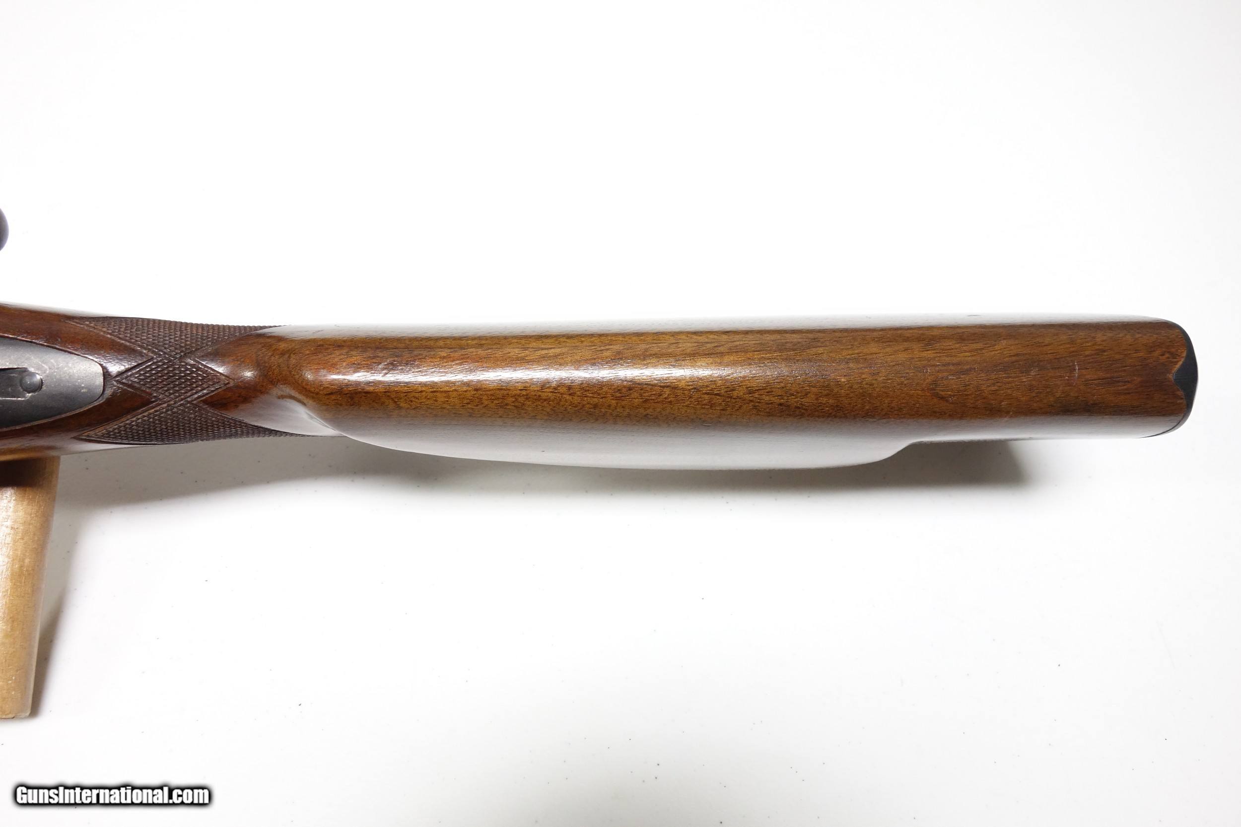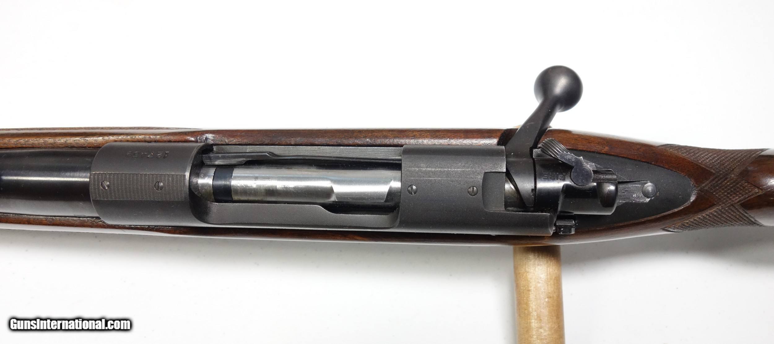Description: Extraordinary and very scarce Pre 64 Winchester Super Grade in highly sought after .22 Hornet caliber. S/N 127*** with matching scribed bolt made in 1949. Condition is excellent with original finishes rating 97-98%. All correct components including special Redfield gold bead front sight, floor plate, swivels, etc. The action components are correctly NOT jeweled, which did not occur on Super Grades until the mid 1950s. I have personally verified that the chamber of this rifle remains a true Hornet and has not been reamed to a K Hornet nor any other caliber. All internal parts are correct. Bore and mechanical function appear excellent. Rifles in this caliber, condition, and configuration do not come along very often and this is a fine collectible example that should be a proud addition to any collection. SOLD Curio/Relic: Yes |