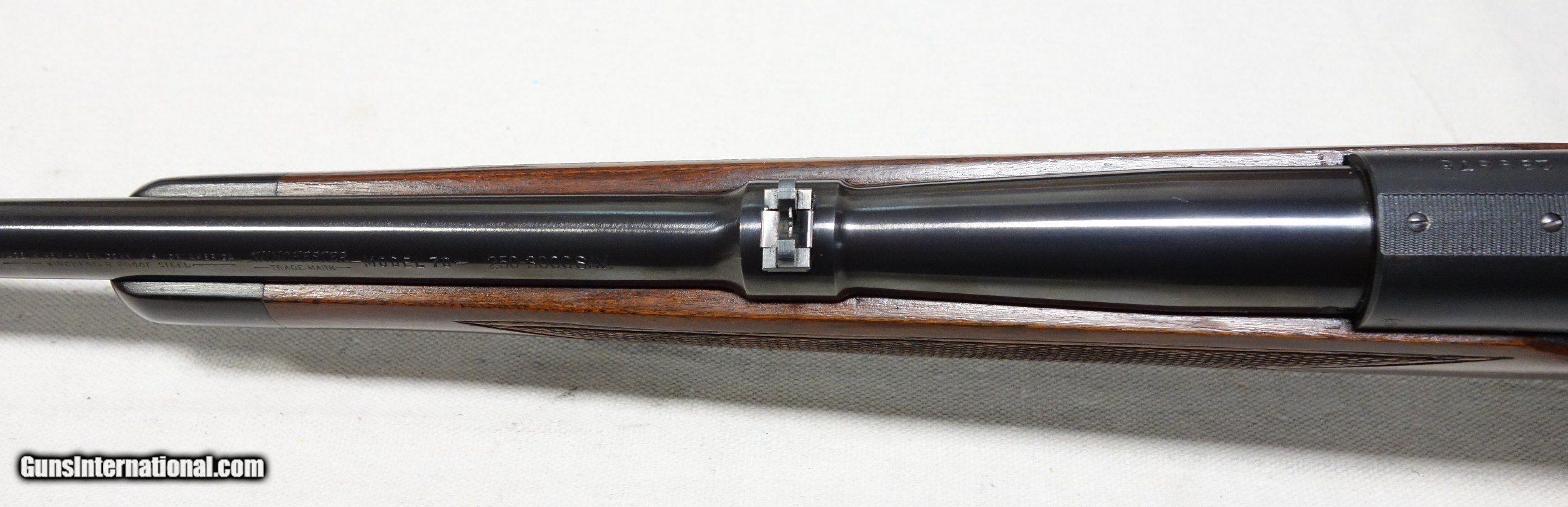 Description: ***SOLD*** Superb and exceedingly scarce Model 70 Super Grade in 250-3000 Savage caliber. S/N 239*** with matching scribed bolt made in 1953. 24" Barrel. Outstanding condition throughout showing 98% plus Blue and Varnish with nice dark wood with a bit of fancy grain. Perfect bore and mechanics. This is one of the rarest cataloged Model 70 calibers there is, representing less than 1/2 of 1% of all production. Super Grades of course represent far fewer than that! All genuine and correct SG components are present including proper front sight and detachable swivels. This "250 Savage" rifle also has all of the mandatory and unique internal components such as a #7 magazine box, #5 ejector, and special placement of the bolt collar stop. Expedited and fully insured shipping from Alaska to your FFL in a custom cut, foam lined box is $100. SOLD Curio/Relic: Yes |