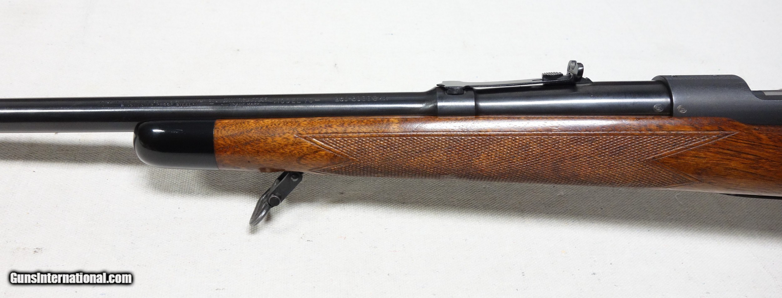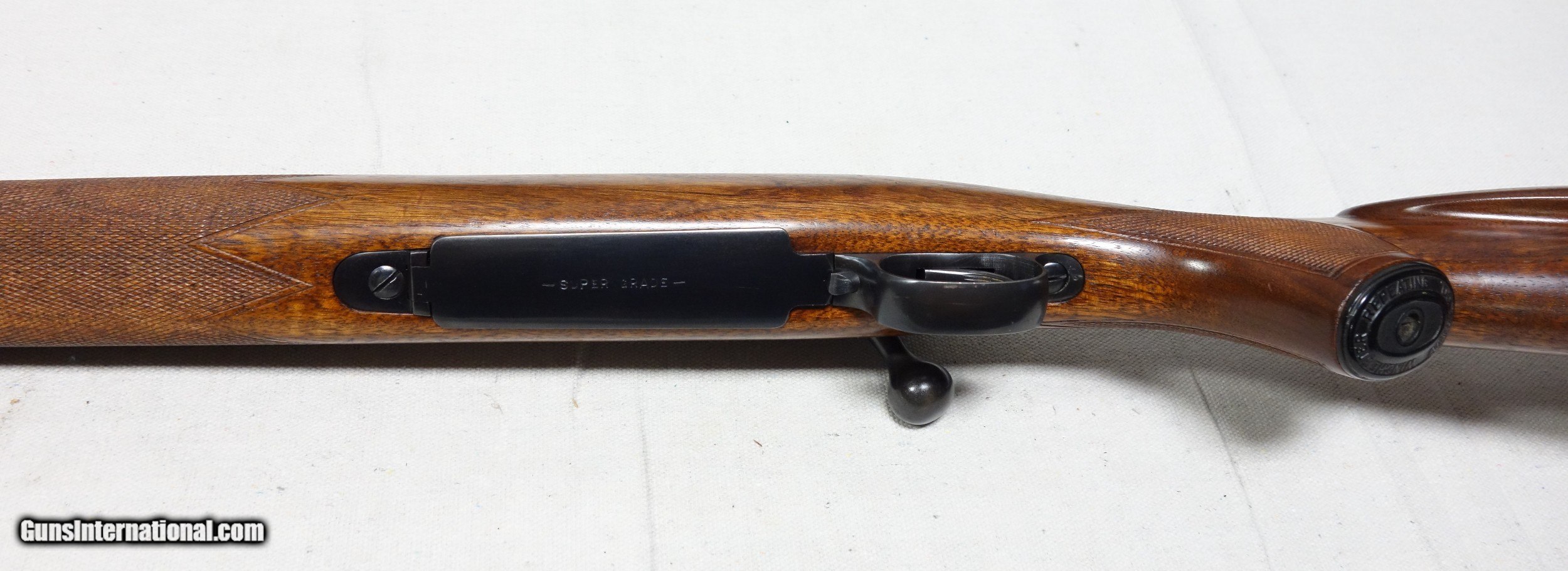 Description: ***SOLD*** Here is a beautiful Winchester 70 Super Grade in exeedingly RARE 250-3000 Savage caliber! S/N 137*** with matching bolt made in 1950. The condition is excellent throughout with all original finishes showing about 97% Blue and only some scattered light handling marks/impressions in the wood. There are no significant dents, nor any gouges or cracks. All of the factory correct internal components unique to this rare caliber are present, including #7 Mag box, #5 ejector, and special placement of bolt collar stop. The bore is excellent and the mechanical functions are flawless. All of the original Super Grade components are correct including the Redfield front sight and the proper robust detachable swivels. This is a highly desirable and highly collectible Model 70 you will seldom find anywhere else. Expedited and fully insured shipping from Alaska to your FFL is an additional $100. SOLD Curio/Relic: Yes |