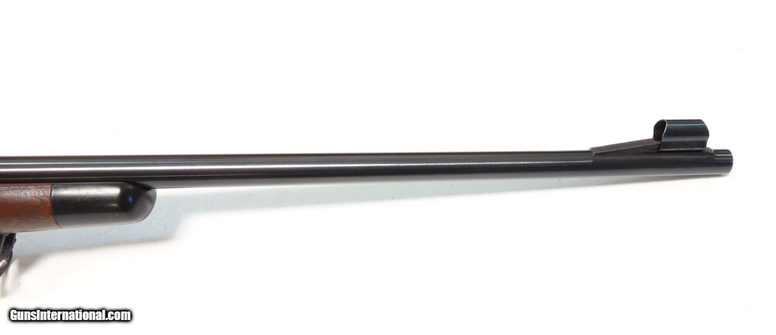 Description: Very nice late transition era Winchester 70 Super Grade in scarce .257 Roberts caliber. S/N 100*** with matching scribed bolt made in late 1948. Still has the pre war style clover leaf tang. Overall condition remains very good with at least 97% blue over most, other than the usual areas of increased wear such as the buttplate. The wood is close to the same at about 95% showing some minor dings and a slight patina developed over 73 years of careful use. All original and correct Super Grade components are present and in excellent condition as well including SG stamped Floorplate, Proper swivels, Redfield full length gold bead front sight. etc. There was NO factory jeweling on inner action parts of Supers until about 1955, nor any special stamps under barrel or recoil lug. This is a very difficult rifle to find, especially in such nice shape, and being chambered in one of the greatest classic calibers ever conceived, with its very low recoil but incredible performance. BIG NEWS for serious Model 70 Collectors!: Many of you already know me as a consistent and reliable source for the very best collectible Model 70s on the market today. That is about to be multiplied 10 fold beginning next week, as I begin the slow but steady process of unveiling the largest, rarest, and most complex collection of vintage Model 70s ever assembled. This will be an unprecedented event that you do not want to miss so please stay tuned!! SOLD Curio/Relic: Yes |
