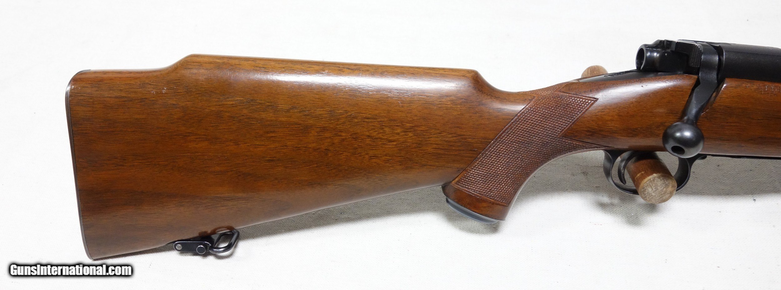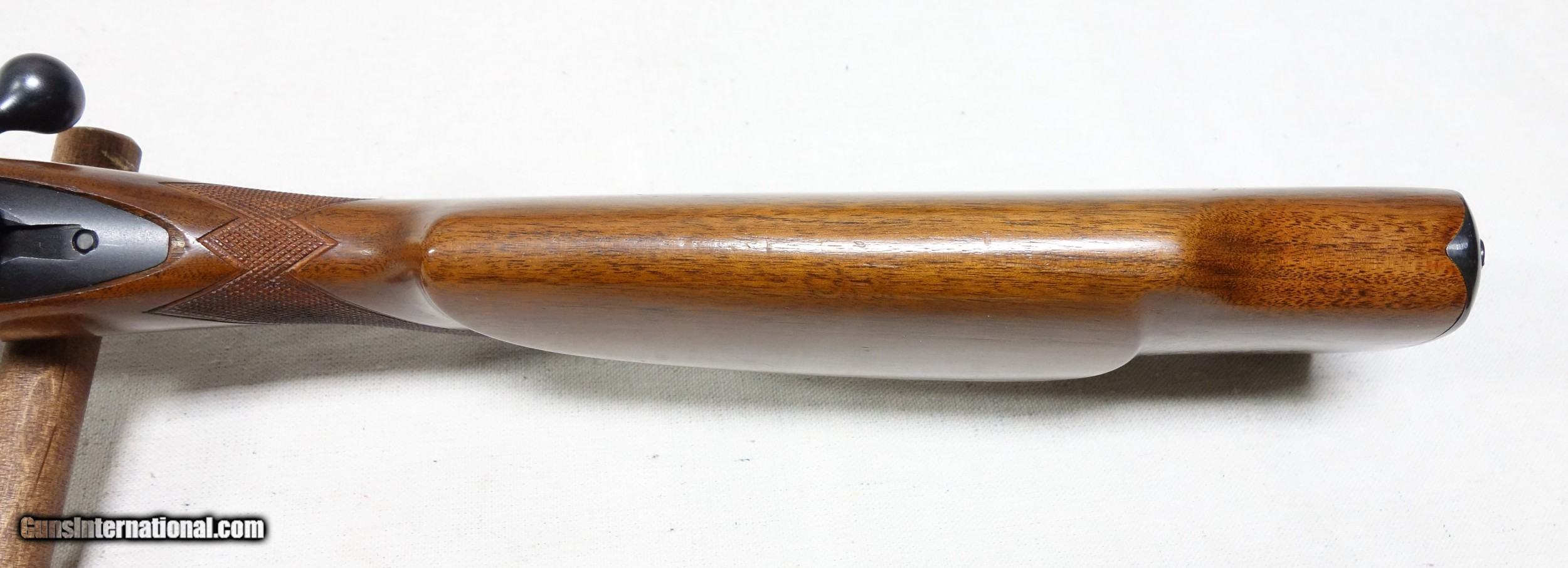 Description: Excellent Model 70 Super Grade in VERY SCARCE .257 Roberts caliber. S/N 282*** with matching scribed bolt made in 1953. 98% Blue and Varnish. 24" barrel with excellent bore and flawless mechanics. All unique Super Grade components are present and correct including the deluxe stock with contrasting fore end tip/ elevated cheek rest/ and extensive wrap around checkering, Redfield 255 gold bead front sight, SUPER GRADE stamped floorplate, robust detachable swivels, etc. Shipping from Alaska is $75 via Priority Mail with full insurance in a custom cut foam lined box for maximum protection. Credit card users please add 3%. SOLD Curio/Relic: Yes |