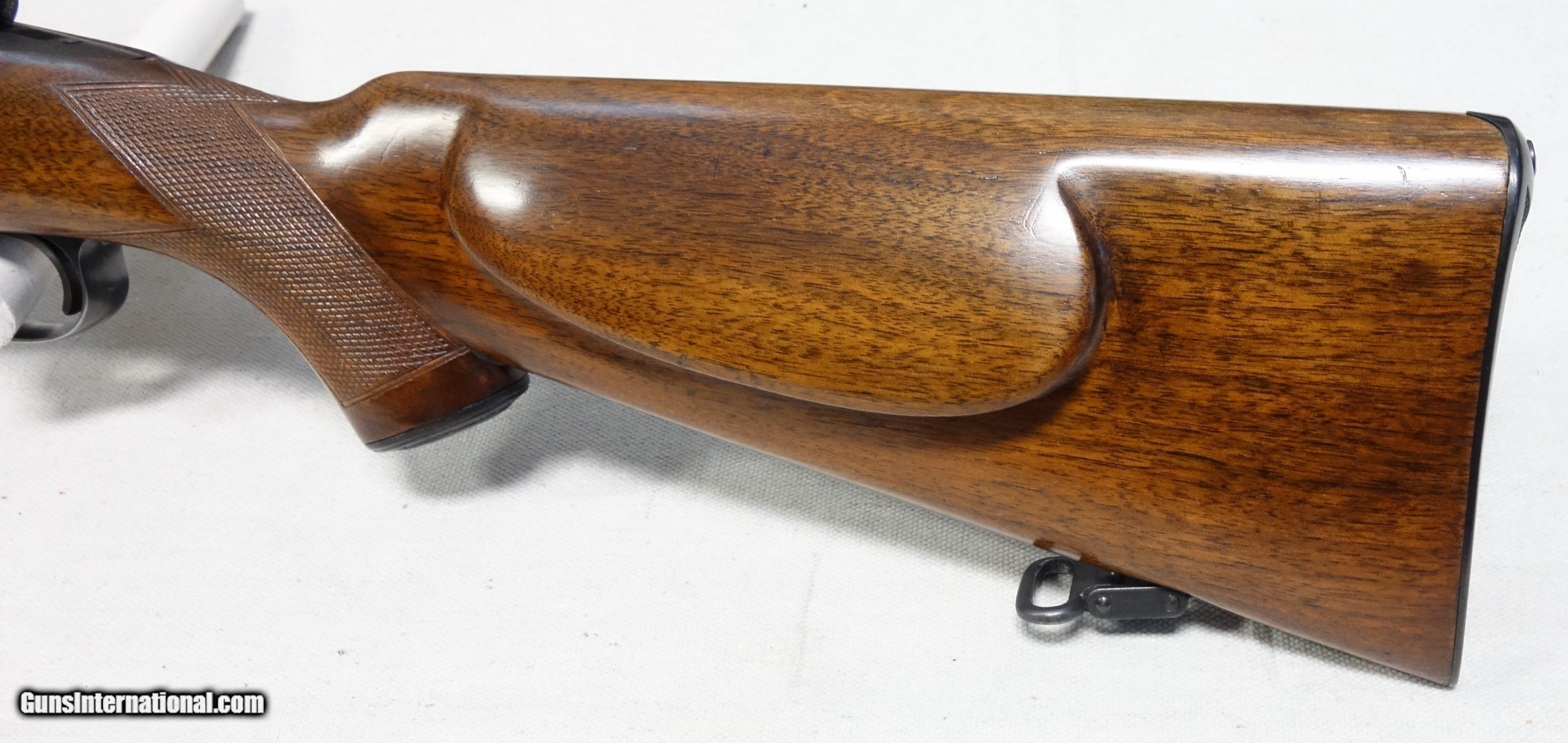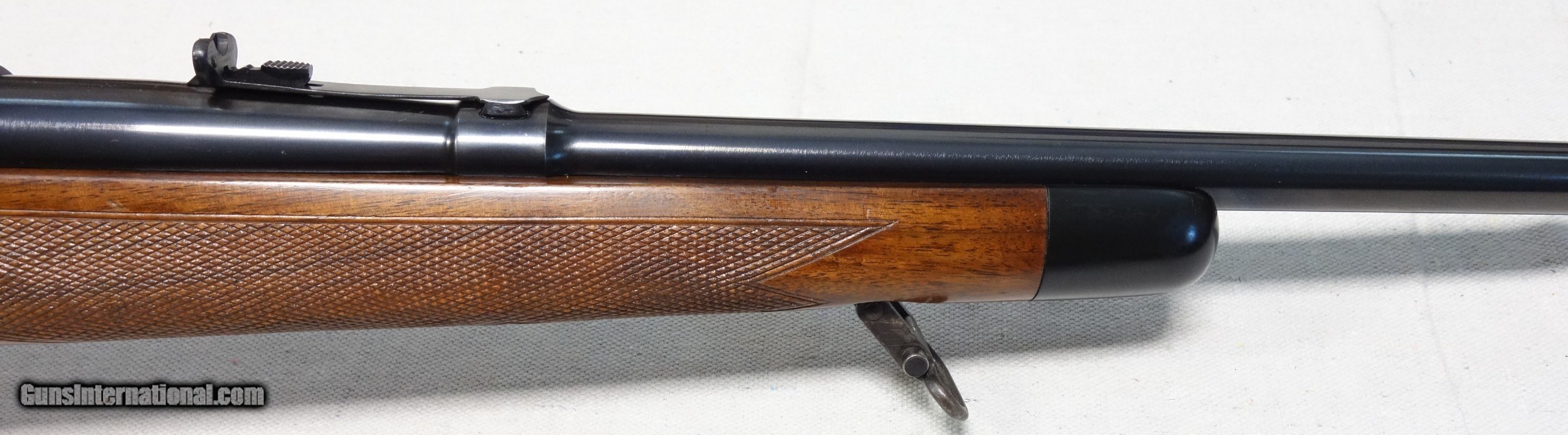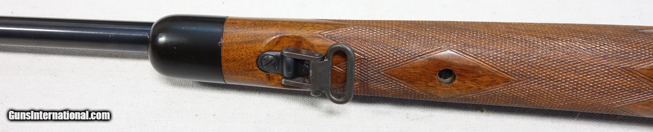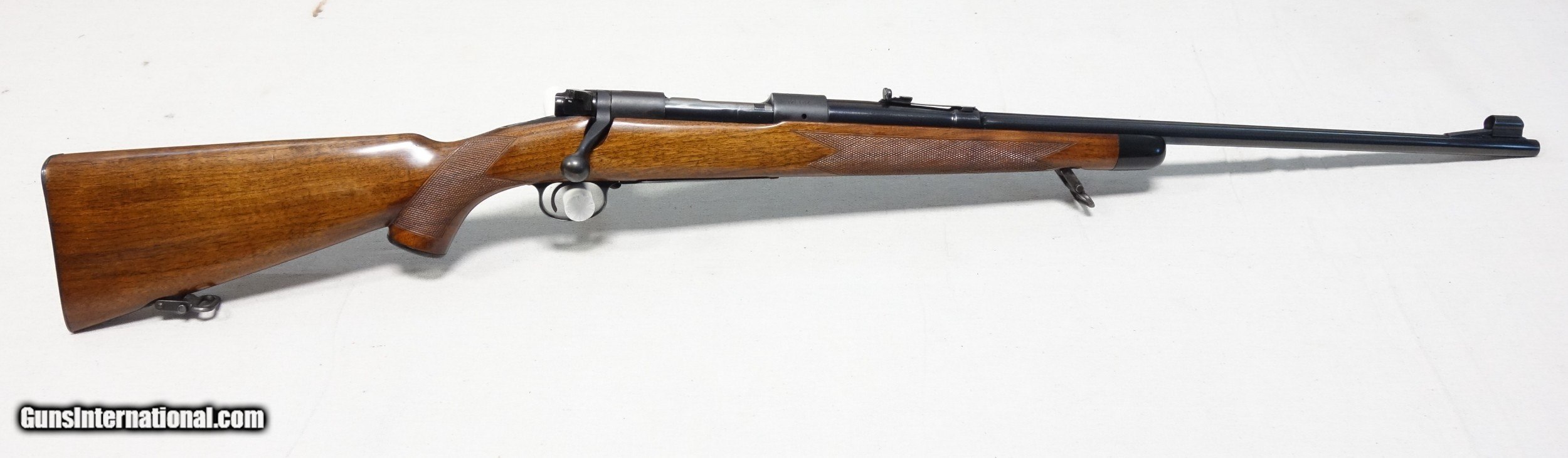 Description: Excellent example of an early post war 270 Super Grade in all original condition. Clean inside and out. S/N 128*** with matching bolt made in 1949. 98% Blue and 97% Varnish throughout. All correct Super Grade components present including a solid low combed SG stock with pancake cheekpiece, Super Grade stamped floorplate, Redfield 255 gold bead front sight, 22G rear sight w/ correct 4 step elevator, and proper detachable swivels. 24" Barrel. Excellent bore and mechanics. You won't see too many "common" caliber Supers these days, and this is among the nicest ones you will see. Expedited and fully insured shipping from Alaska to your FFL is additional $100. SOLD Curio/Relic: Yes |