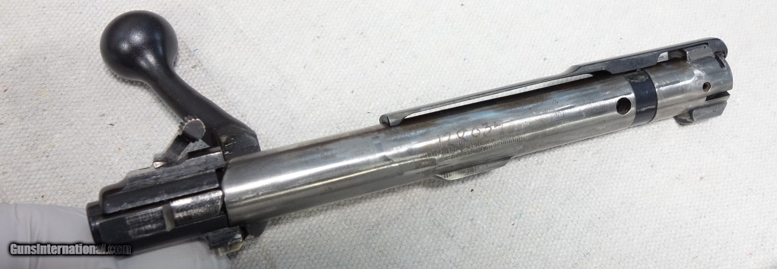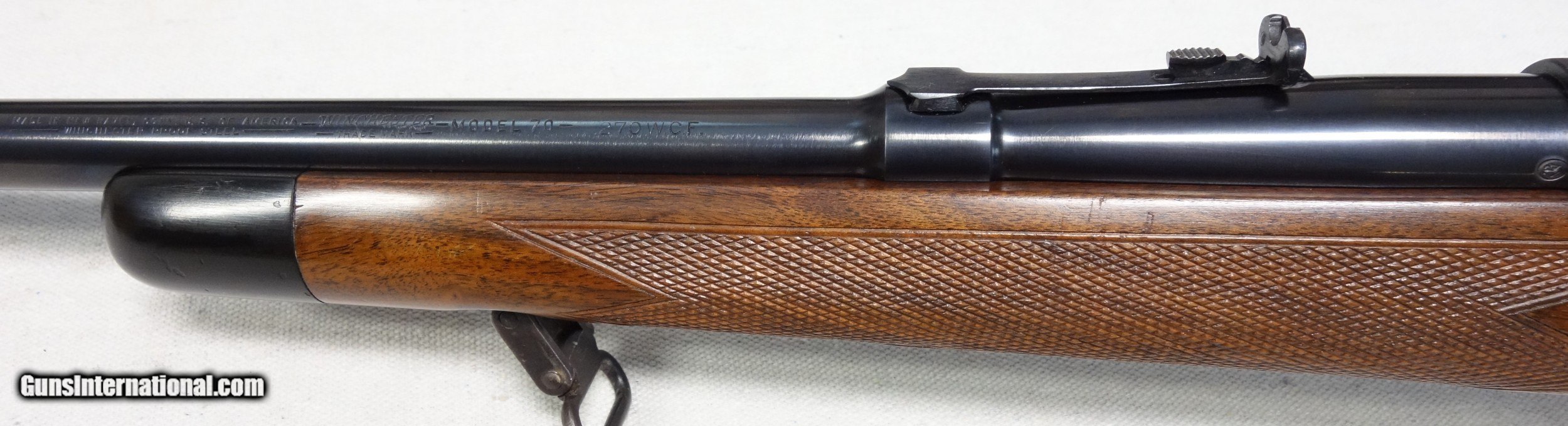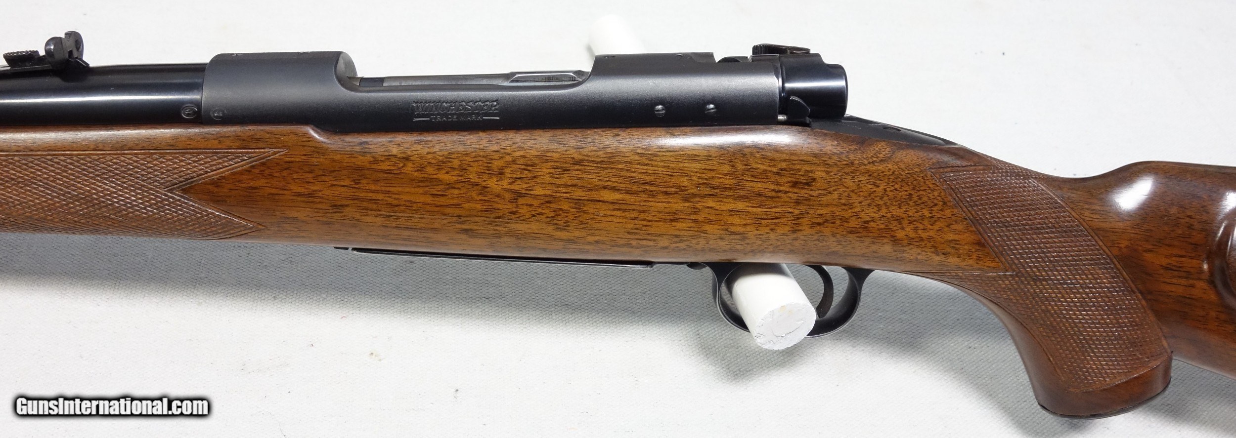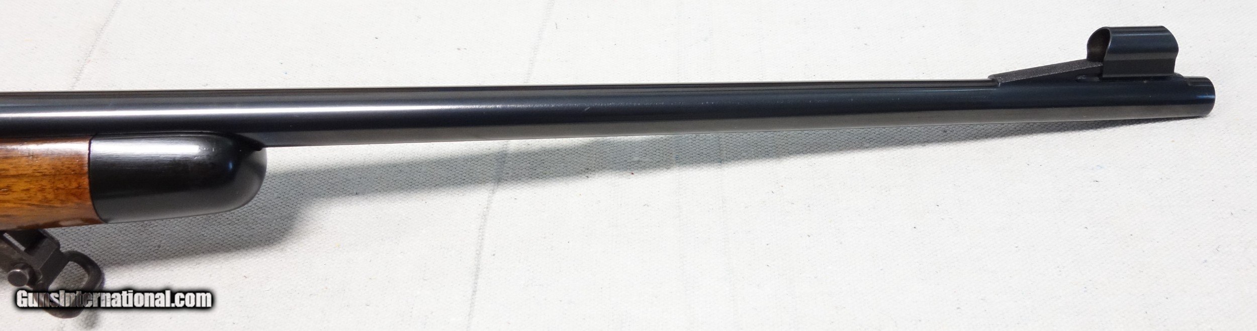 Description: Excellent example of an early post war 270 Super Grade in all original condition. Clean inside and out. S/N 128*** with matching bolt made in 1949. 98% Blue and 97% Varnish throughout. All correct Super Grade components present including a solid low combed SG stock with pancake cheekpiece, Super Grade stamped floorplate, Redfield 255 gold bead front sight, 22G rear sight w/ correct 4 step elevator, and proper detachable swivels. 24" Barrel. Excellent bore and mechanics. You won't see too many "common" caliber Supers these days, and this is among the nicest ones you will see. Expedited and fully insured shipping from Alaska to your FFL is additional $100. SOLD Curio/Relic: Yes |