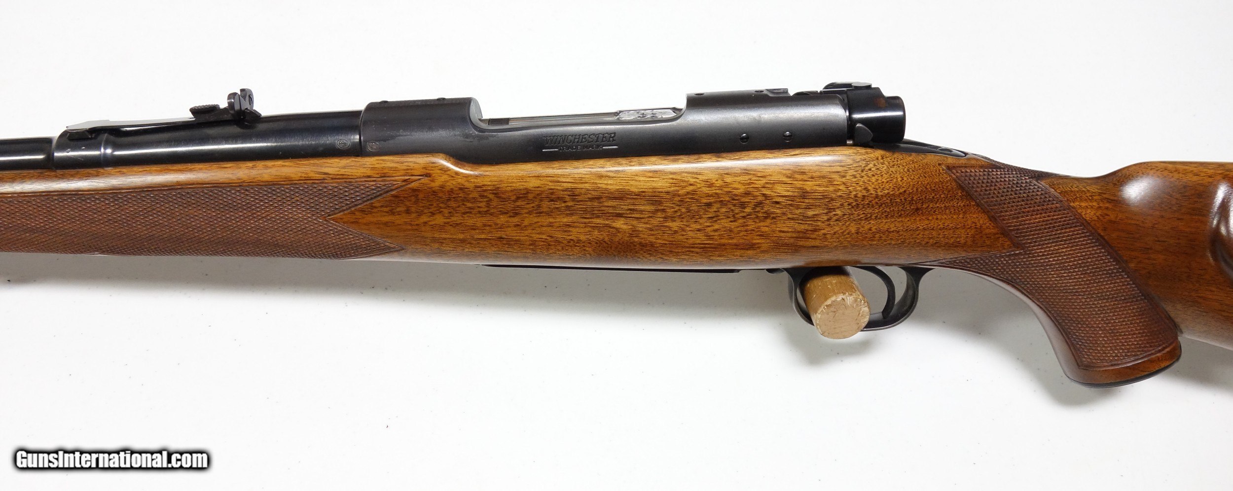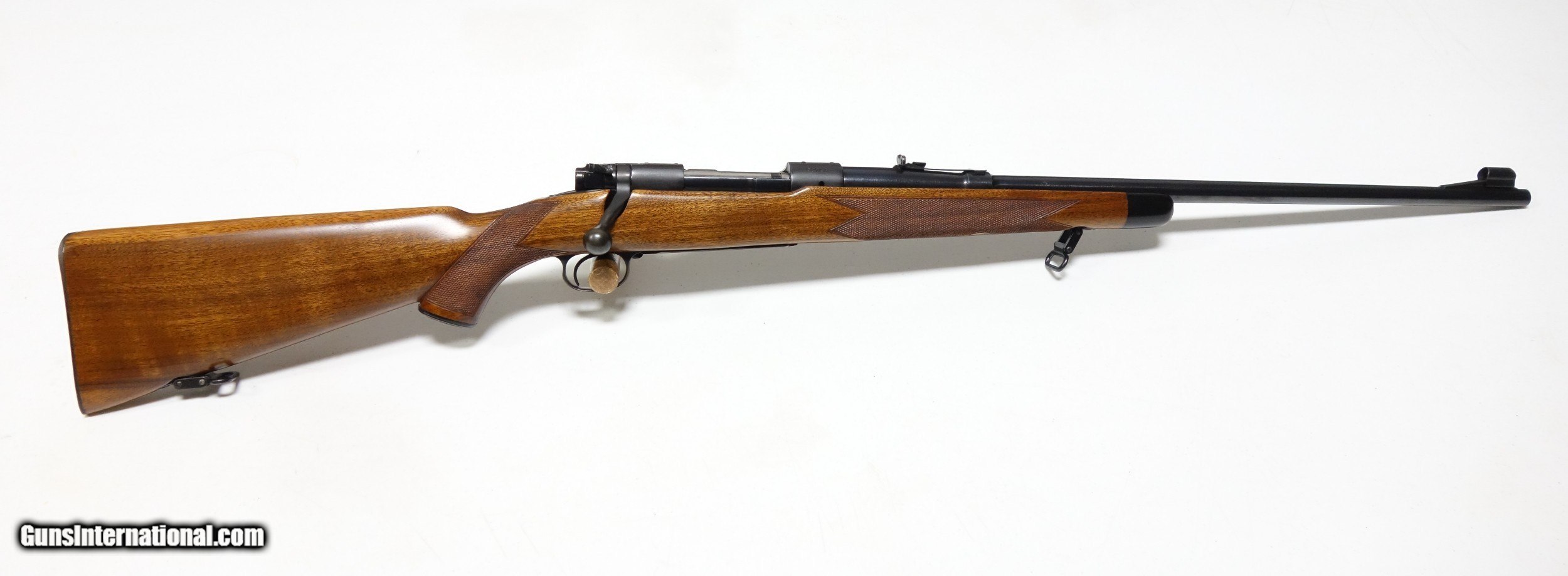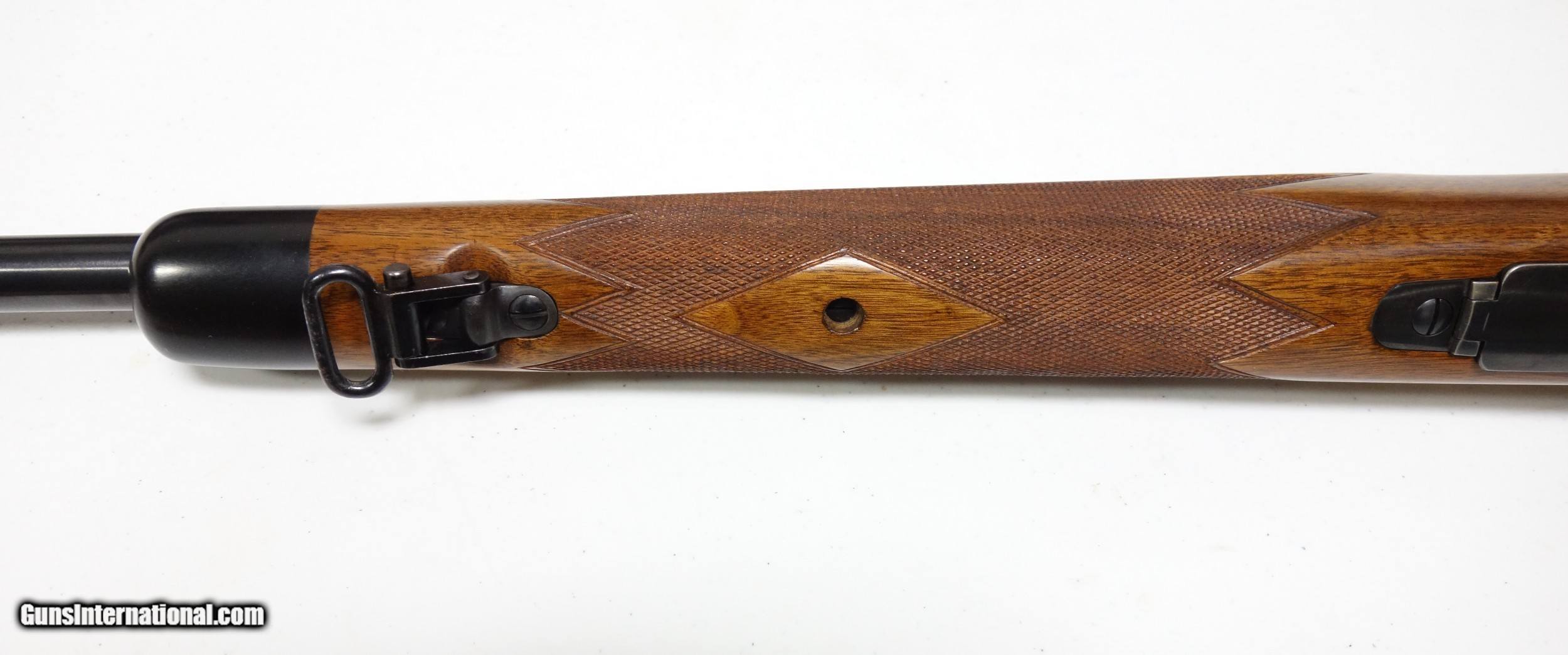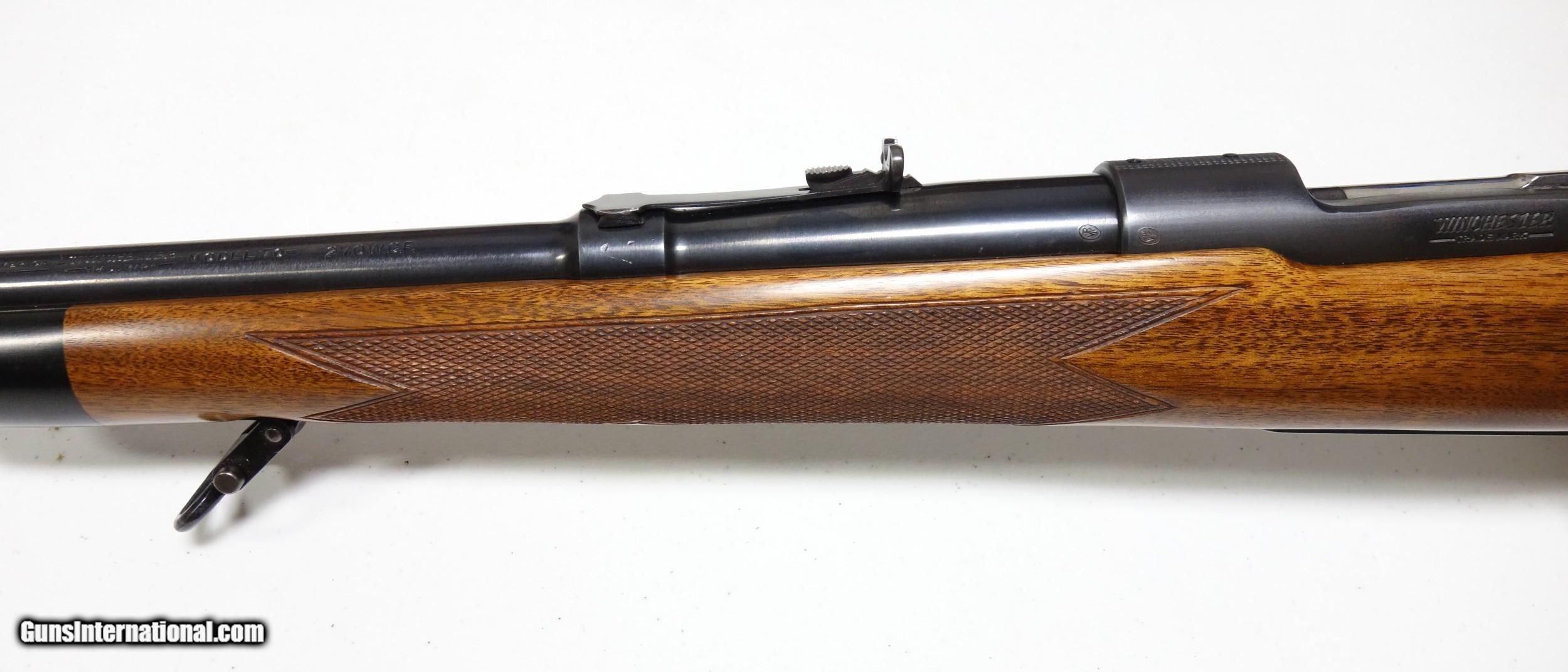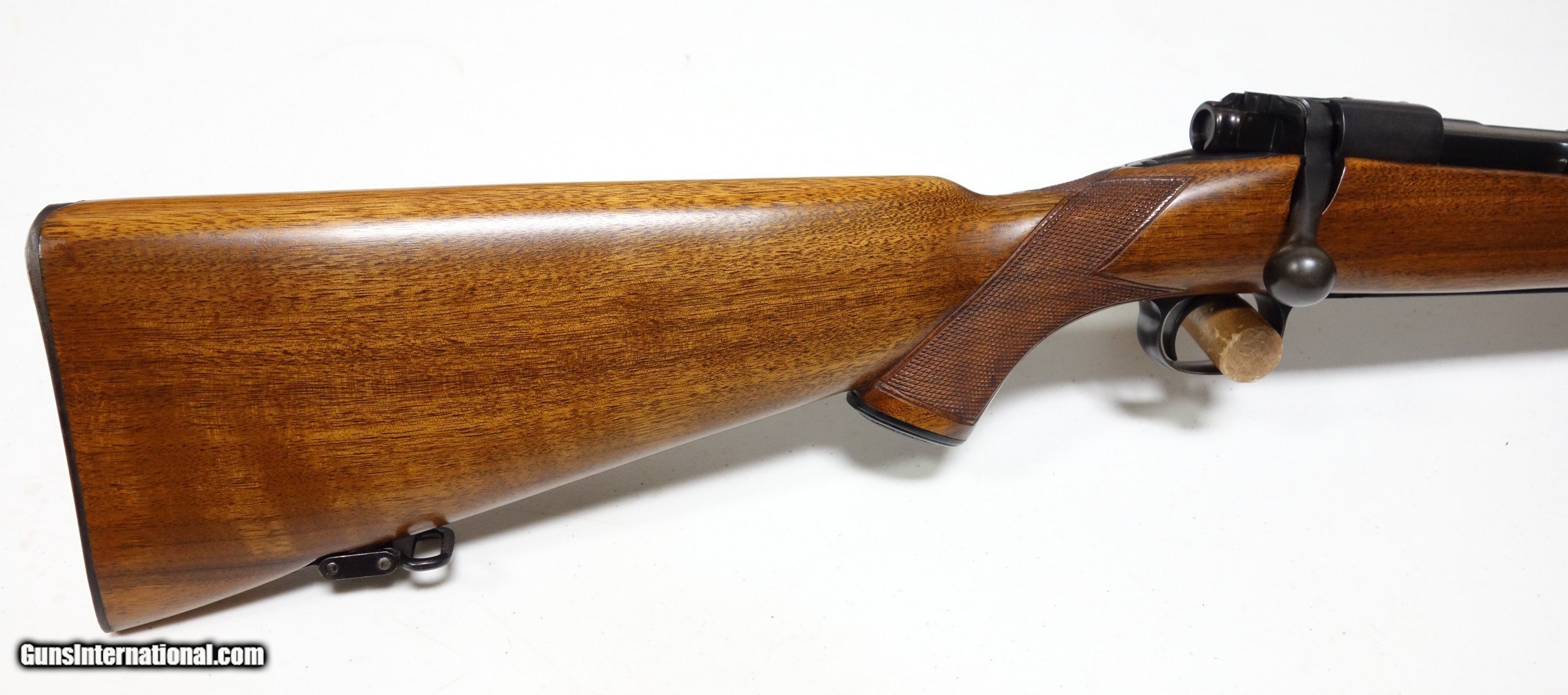 Description: ***SOLD*** Incredible and rare transition era .270 Super Grade with a VERY unique piece of wood. S/N 62*** with matching scribed bolt made in 1947. Beautiful condition throughout showing 98%-99% original finishes. All correct Super Grade components are present including the special Redfield front sight and detachable swivels. Bore and mechanics are flawless, as are the internals. This scarce early post war rifle retains the Pre War style receiver with a clover leaf tang and has the unique to this era "clam shell" aka "rabbit's foot" safety. The beautiful wood shows quite a unique color pattern with very light streak running along the comb, then reemerges along the L. side forearm. There is another lighter section on the toe. I have seen this phenomenon before, but to a lesser degree. There are absolutely no blends or refinish that I can detect and I think I've seen it all! It's just a really cool and different piece of wood. Certainly a conversation piece for any collection! Expedited and fully insured shipping from Alaska to your FFL is an additional $75. SOLD Curio/Relic: Yes |