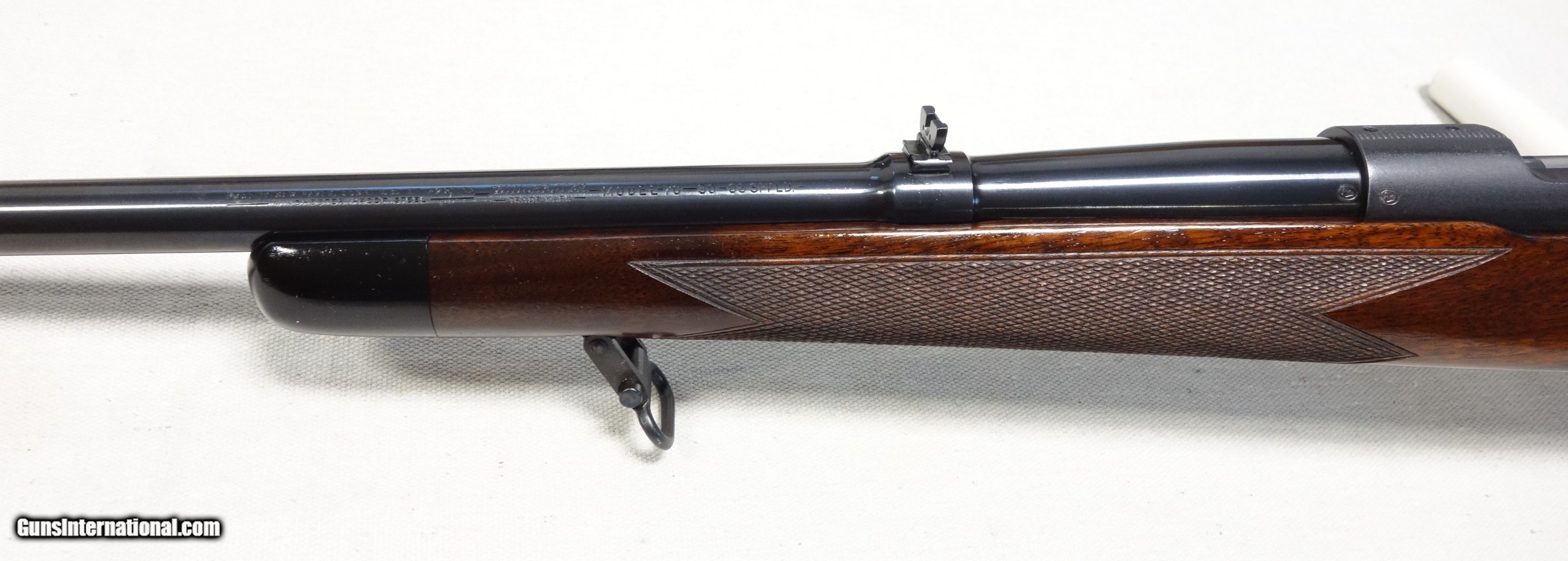 Description: *SOLD* Beautiful pre 64 Winchester 70 Super Grade in ever popular 30-06 caliber. These "common" caliber Supers have become quite scarce and this is a high condition example with nice dark wood. S/N 310*** with matching scribed bolt made in 1954. Outstanding 98-99% original finishes with only faint marks and a bit of light freckling on the correctly stamped floorplate. All other Super Grade components are also present and correct including the deluxe, fully featured stock, detachable swivels, and rare Redfield gold bead front sight. 24" barrel with an excellent bore. All mechanical functions are working smoothly and properly. A nice looking rifle! Please add $100 for expedited and fully insured shipping from Alaska to your receiving FFL dealer. SOLD Curio/Relic: Yes |