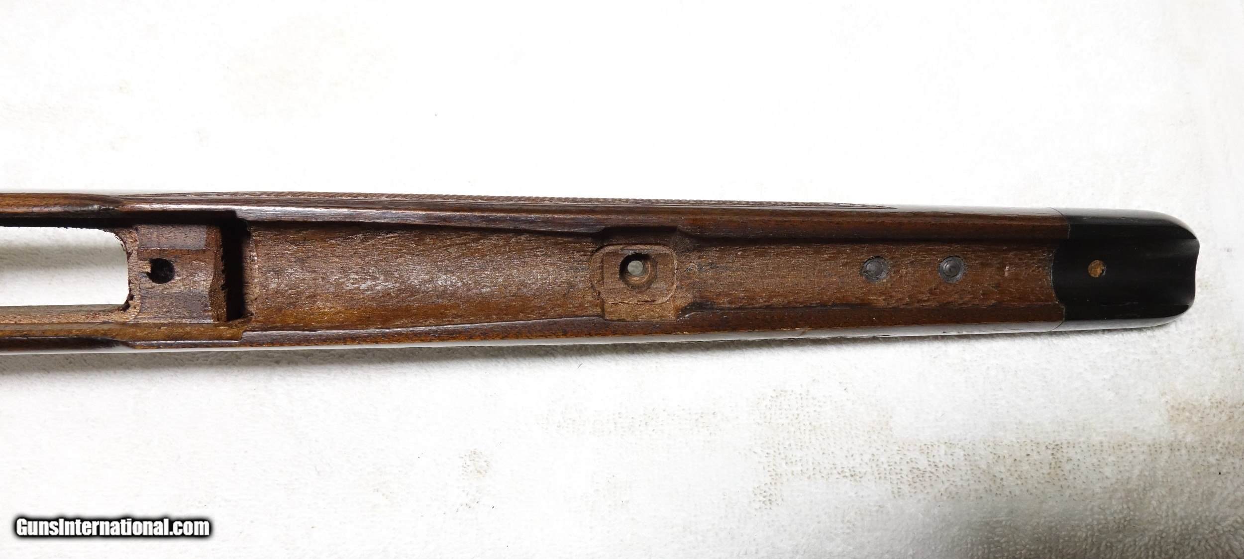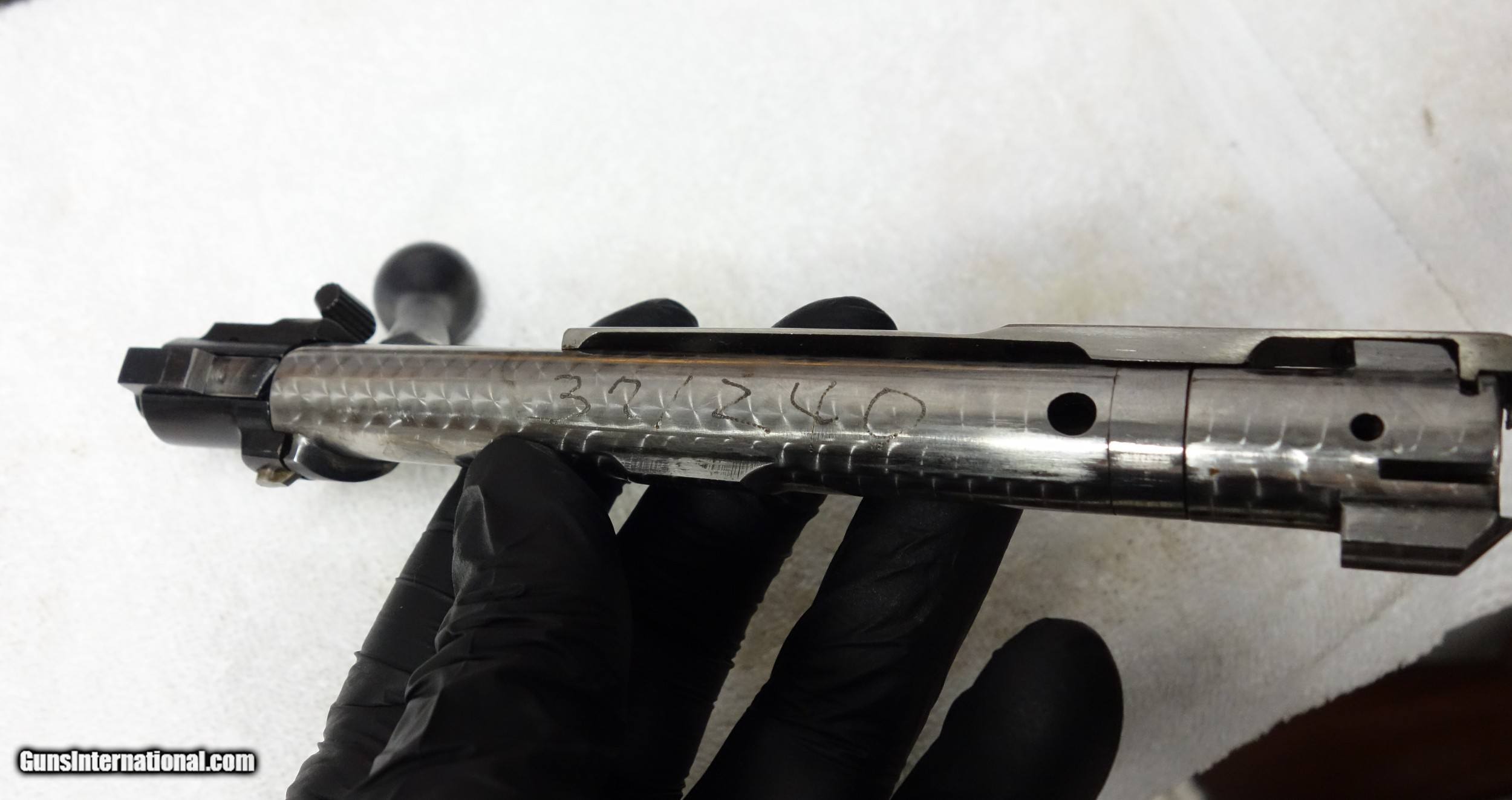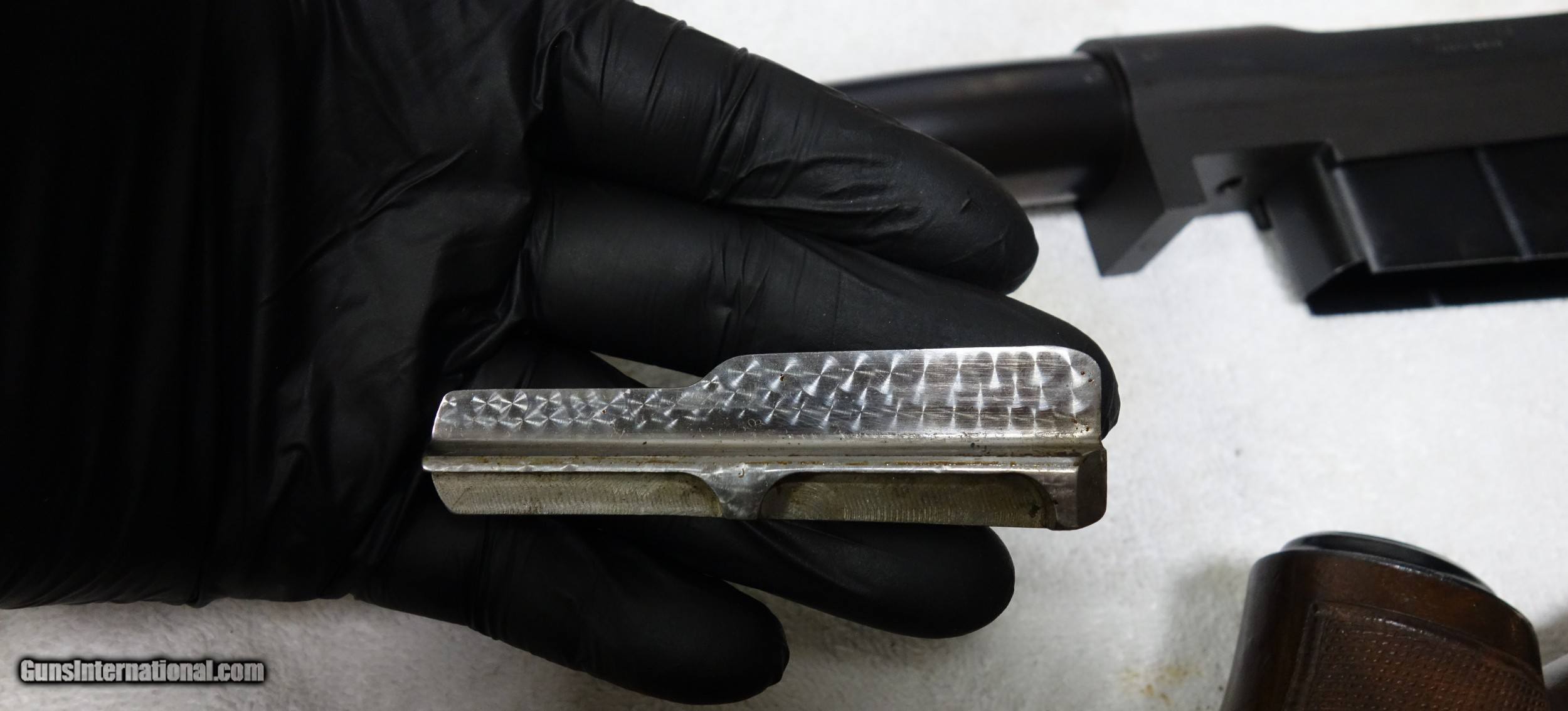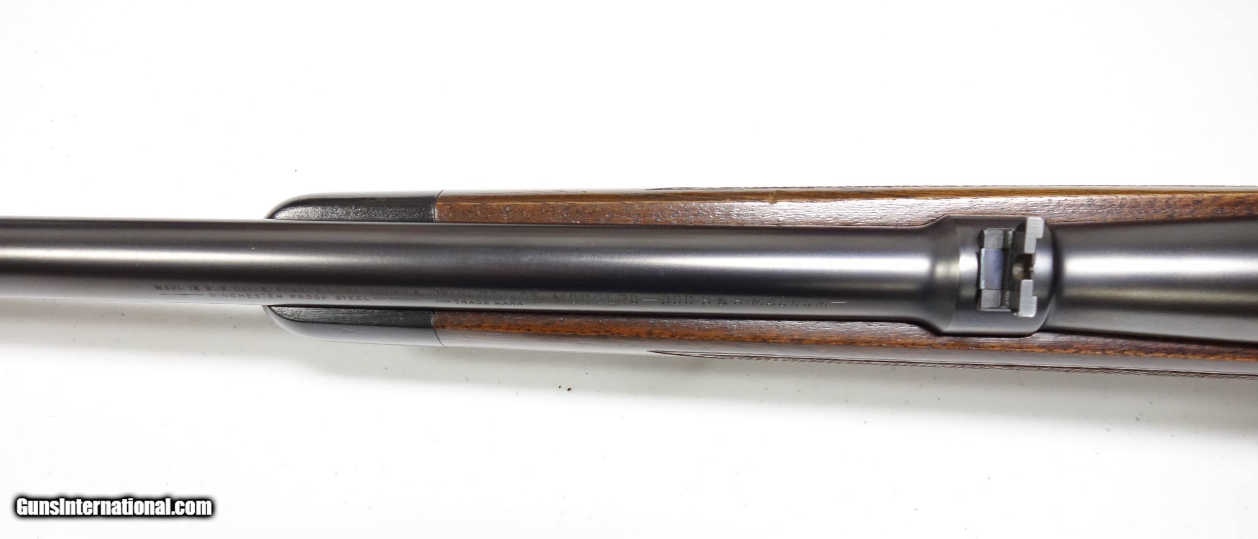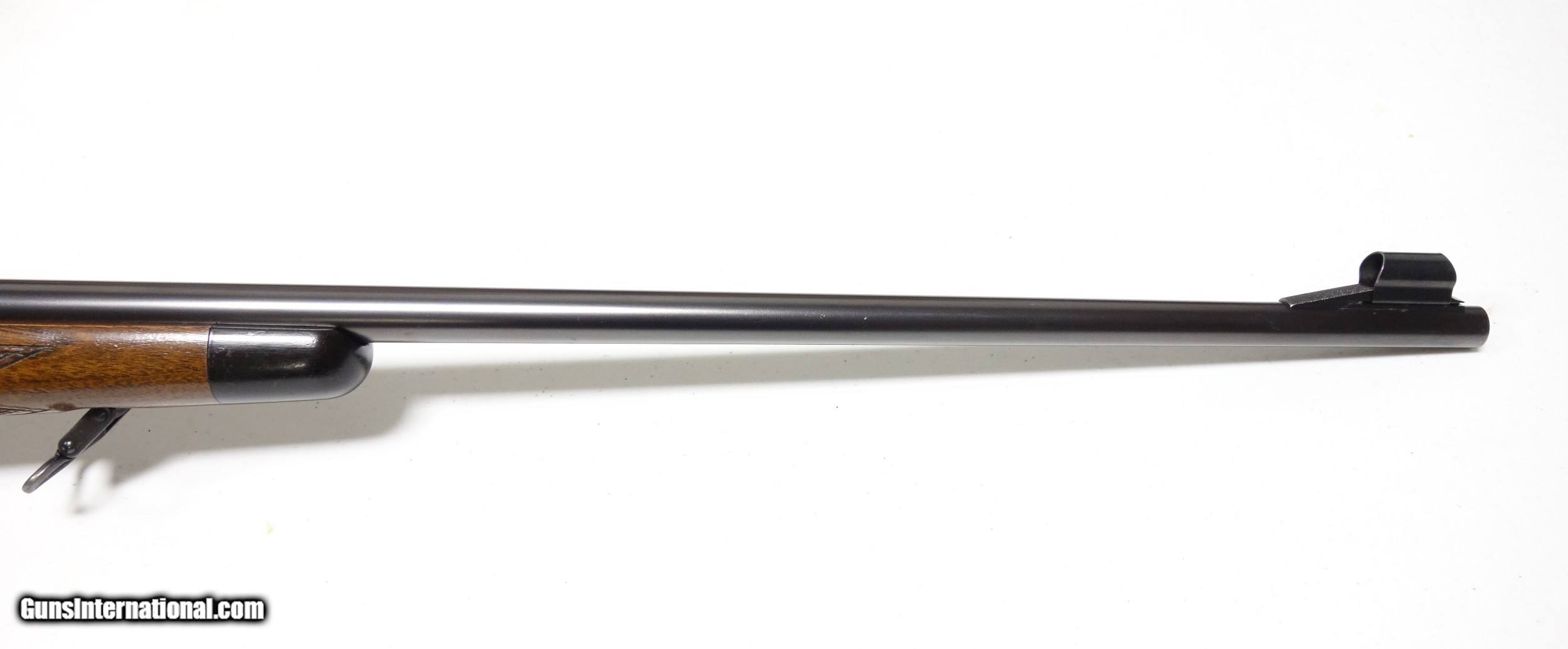 Description: Scarce Pre 64 Winchester Model 70 Super Grade in 300 H&H caliber. S/N 371*** with matching scribed bolt made in 1956. Excellent original condition showing 98% Blue, 97% Varnish. All of the correct SG components and markings unique to a mid-1950s rifle are present including SUPER GRADE stamps on the underside of the barrel and on the floorplate, backwards "S" on recoil lug, beautiful rust blued barrel, "jeweled" action components, Redfield 255 gold bead front sight, genuine SG swivels, etc. The leather sling is also included. The bore and mechanical functions of this rifle are excellent. The chamber has NOT been reamed out to Weatherby. A GREAT rifle in a very hard to find caliber and configuration from this production era! SOLD Curio/Relic: Yes |