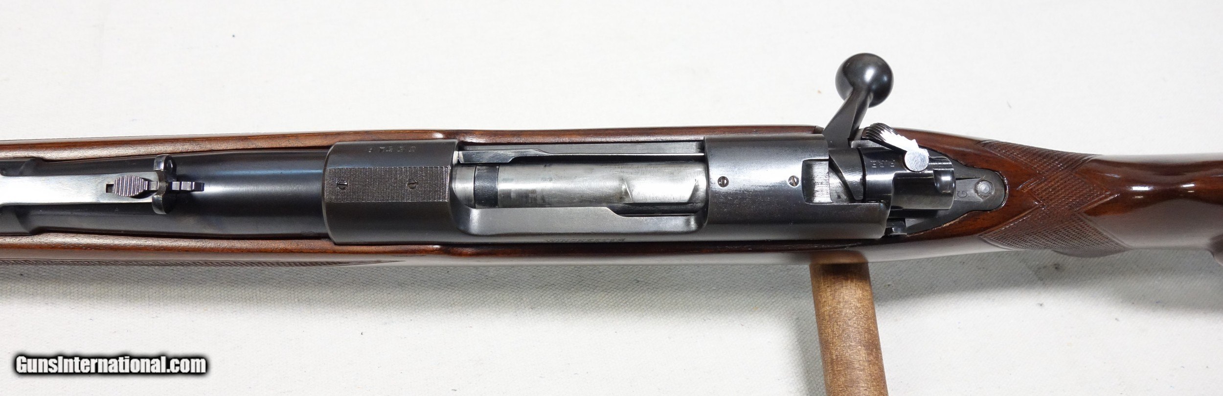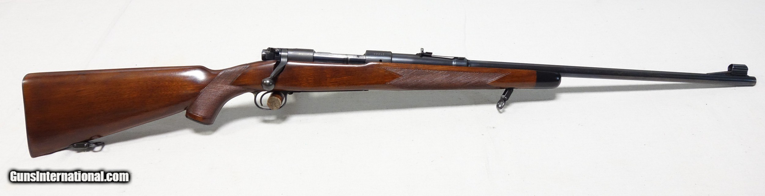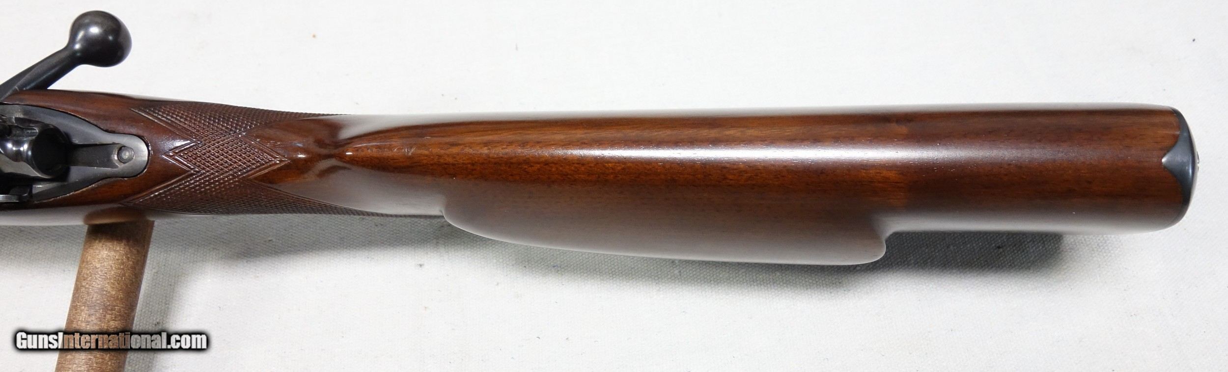 Description: ***SOLD*** Incredibly rare Model 70 Super Grade in 35 Remington caliber. S/N 55*** with matching scribed bolt made in 1946. 24" Barrel. Excellent condition throughout showing 98% Blue and Varnish overall with nice dark wood. Excellent bore and mechanics. As far as production figures go, this rifle is neck and neck with the 300 Savage as the 2 rarest cataloged Model 70 calibers there are, with only 42 units separating them, but I can assure you that the 35 Rem is significantly more difficult to locate in any configuration. They almost never surface, and of course Super Grades in 35 Rem are practically nonexistent! This amazing rifle has all of the genuine and correct SG components present including the proper Redfield 255 gold bead front sight and robust detachable swivels. This is a genuine 35 Rem rifle that meets all of the mandatory and unique internal features such as a #7 magazine box, #5 ejector, and special placement of the bolt collar stop. Additionally, the bolt face recess is of the correct slightly diminished diameter which, while combined with its special and slightly longer lipped extractor (that is correctly stamped with an R on the back), holds the case head firmly as it should for positive feeding and ejecting. Expedited and fully insured shipping from Alaska to your FFL in a custom cut foam lined box is $100. SOLD Curio/Relic: Yes |