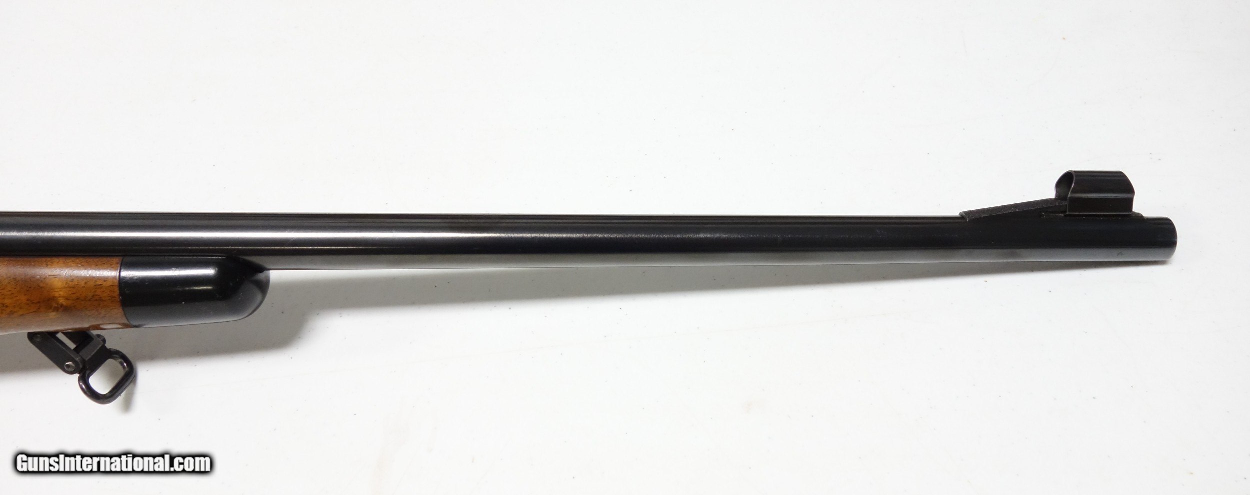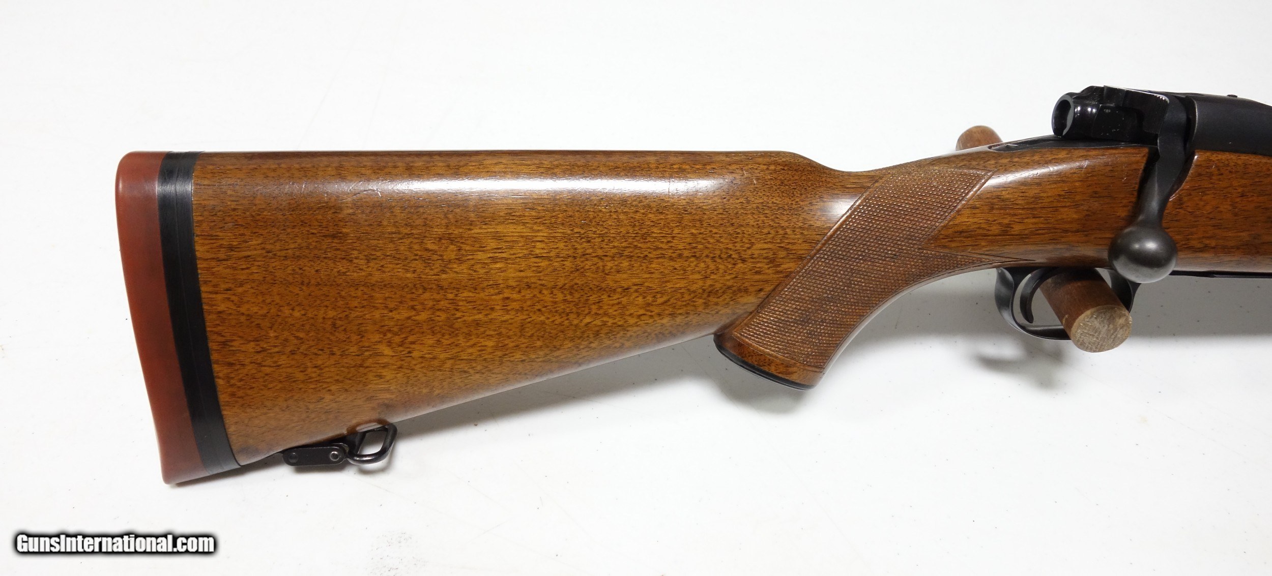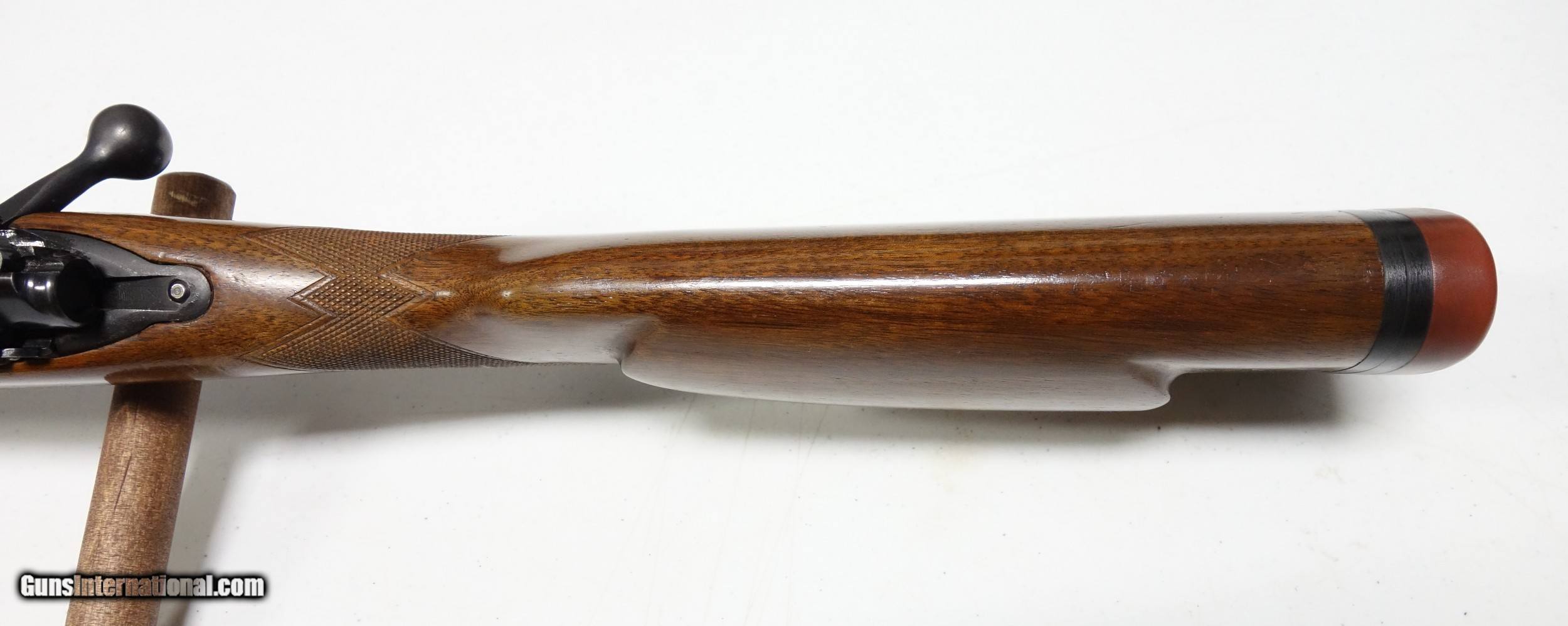 Description: Genuine and scarce Winchester 70 Super Grade in powerful 375 H&H caliber with all factory correct SG components including correct Redfield front sight, factory stamped Floor Plate and SG swivels, . This beautiful rifle is being represented and priced strictly as a "shooter grade" due most notably to the stock having been shortened to 13" LOP and the internals glass bedded for accuracy and strength, taking it out of the pure collector's realm but also significantly reducing the price that I usually get for these! It may be just perfect for you? S/N 121352 with matching scribed bolt made in 1949. 25" barrel with an outstanding bore. Mechanics are fine showing very little use and a mostly blue bolt face. There are no cracks. This will make a robust and ideal BIG game hunting rifle for the sportsman who prefers a stock with a shorter length of pull due to arm length or heavy hunting clothing. SOLD Curio/Relic: Yes |