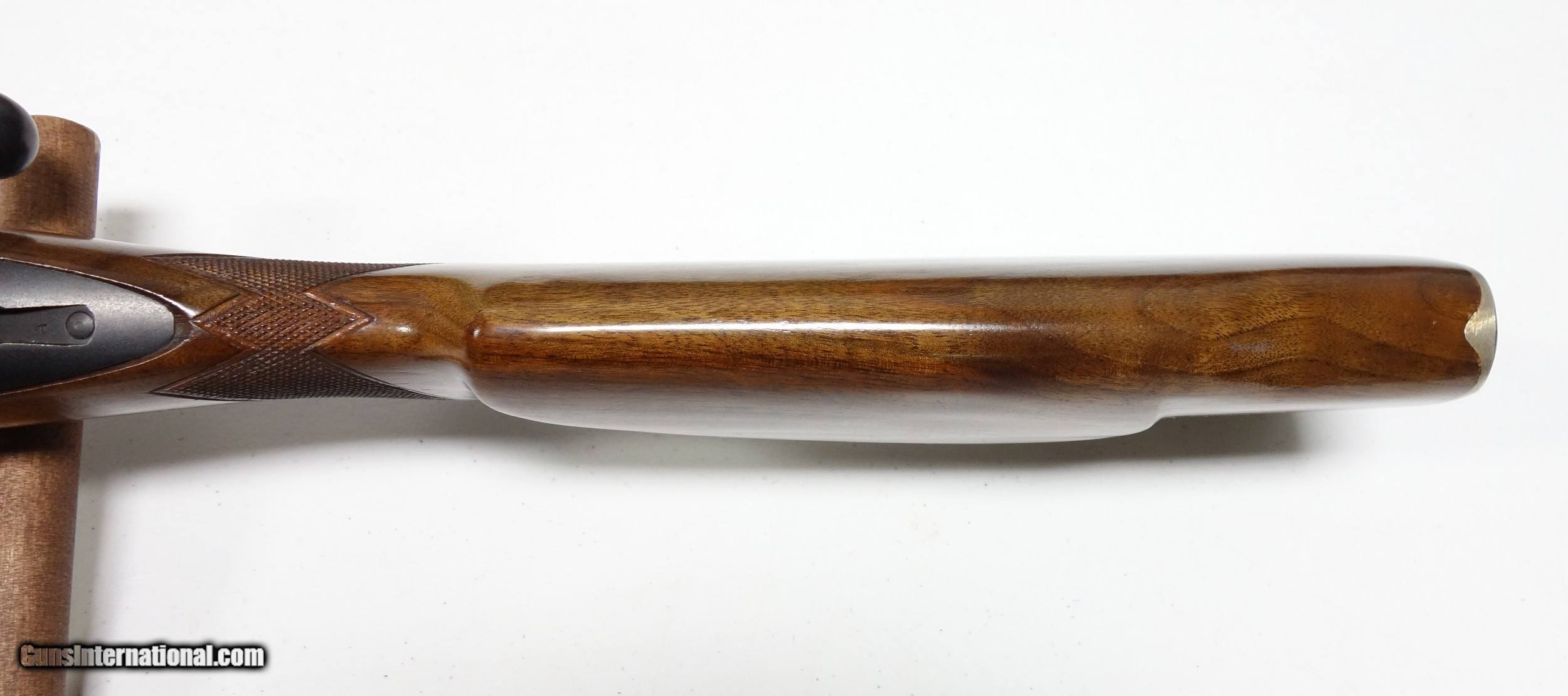 Description: ***SOLD*** Superb example of the EXTREMELY rare Super Grade Featherweight in .270 Win. caliber. This is THE rarest style of any Model 70 ever made and the .270 is the 2nd rarest of the 4 calibers produced with only 248 in existence! S/N 325*** with matching scribed bolt made in 1955. All original and in at least 98% condition throughout. Even the fragile aluminum components of floorplate, trigger guard and buttplate look virtually new. All of the inner stampings and unique features are present and correct. A fabulous addition to any collection. Expedited and fully insured shipping from Alaska to your FFL is an additional $100. SOLD Curio/Relic: Yes |