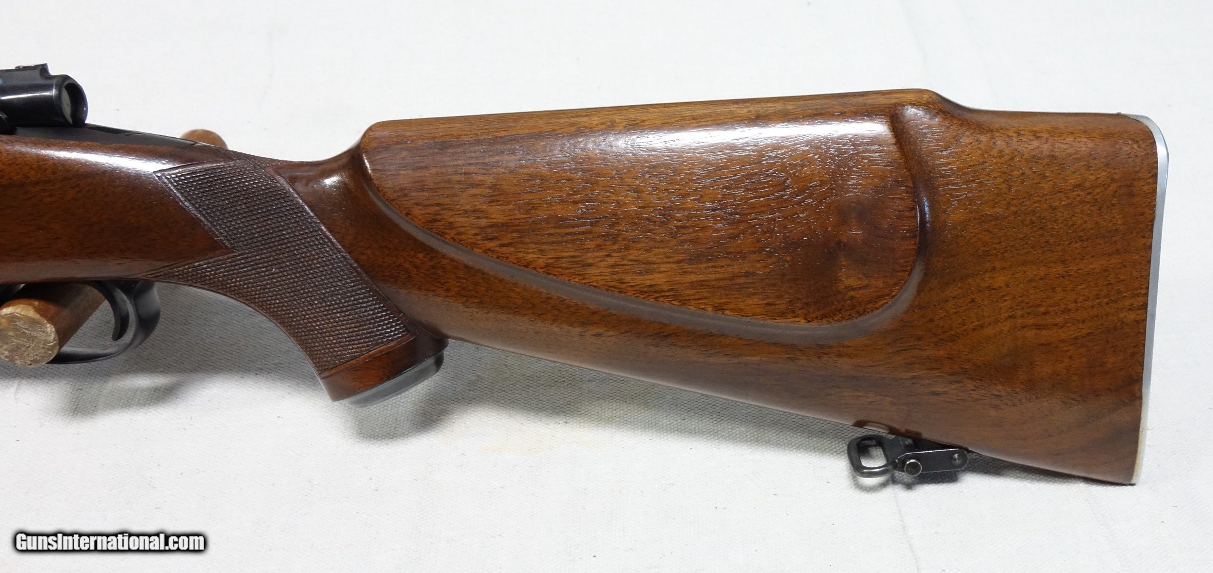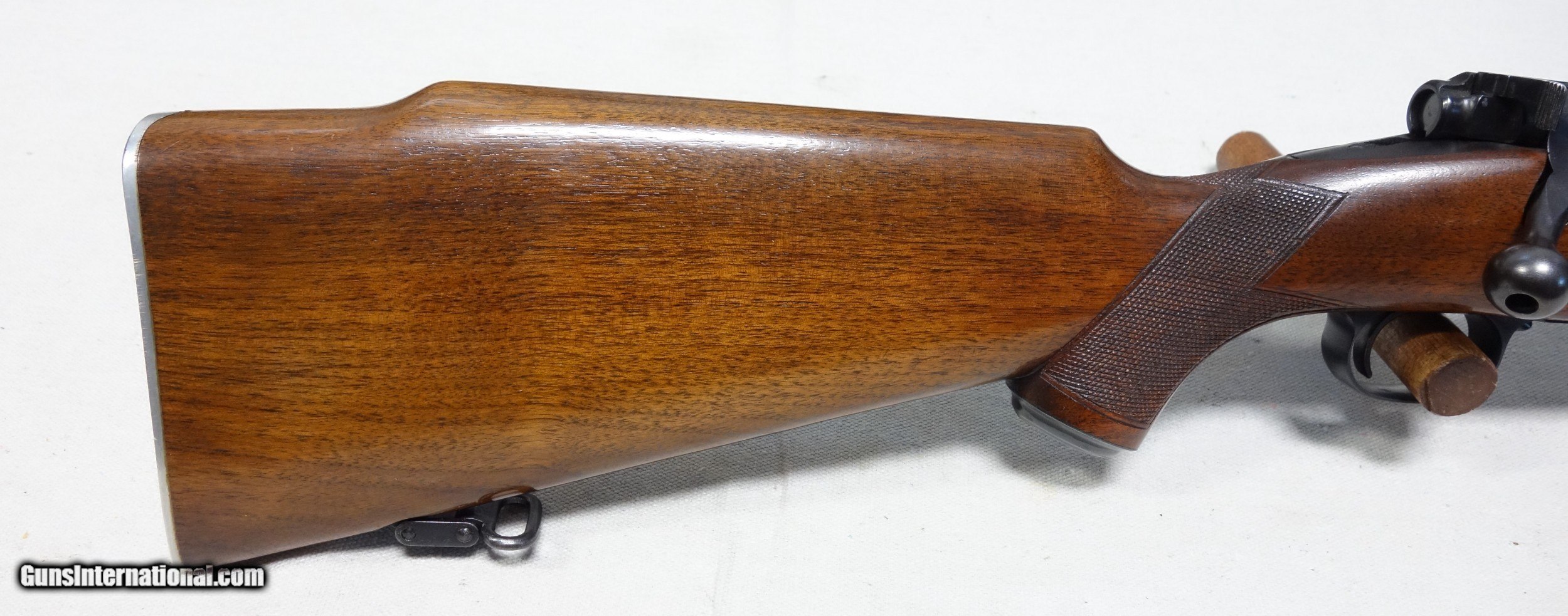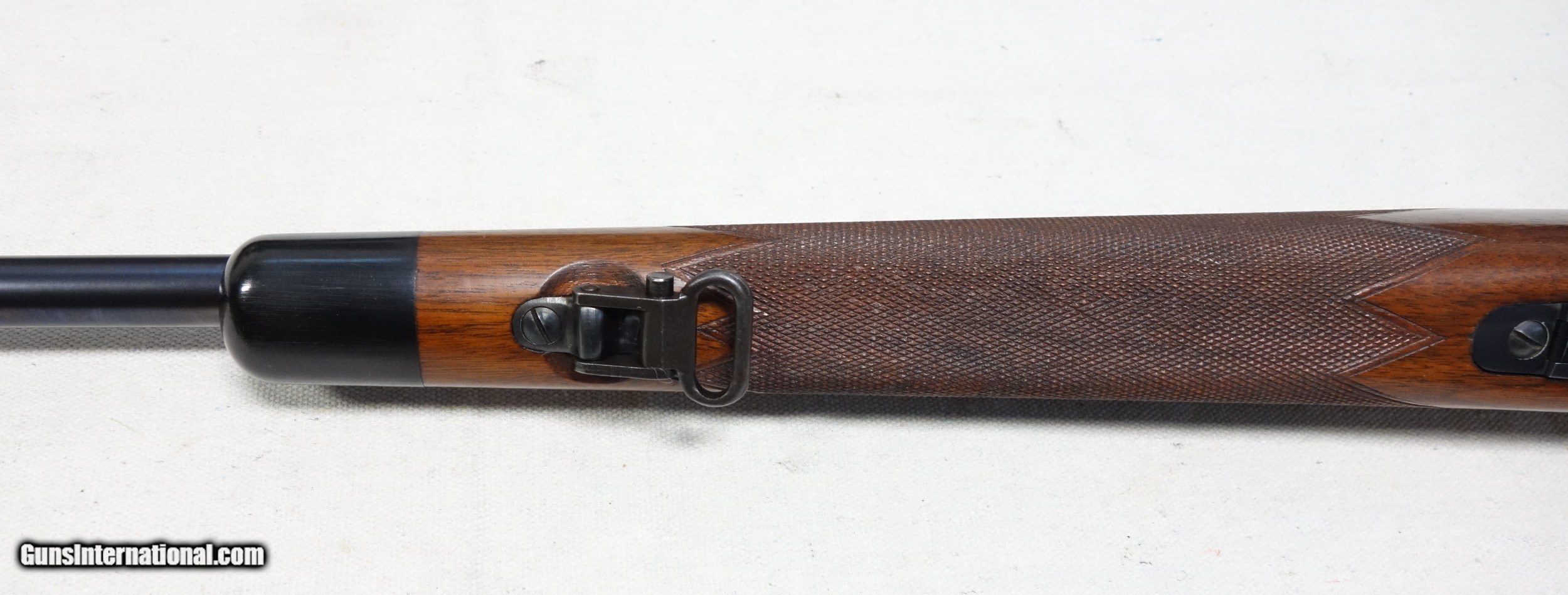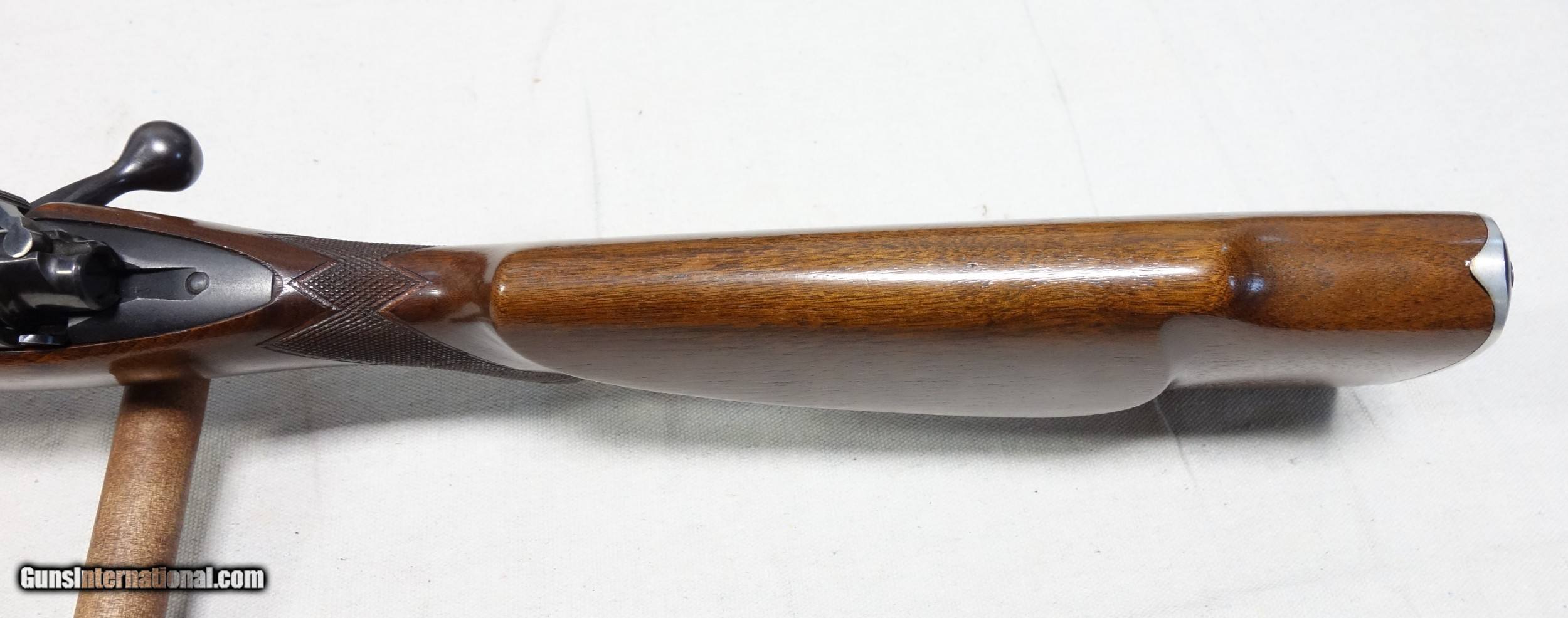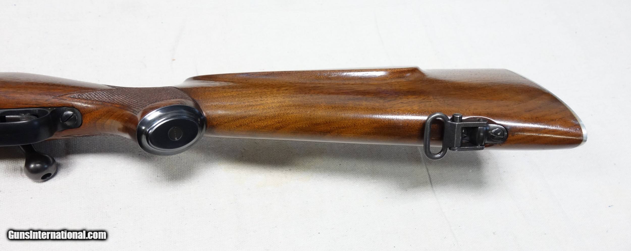 Description: ***SOLD*** Superb example of the EXTREMELY rare Super Grade Featherweight in 30-06 caliber. This is THE rarest style of any Model 70 ever created. They were produced in just 4 calibers with only 321 of the 30-06's in existence! S/N 413*** with matching scribed bolt made in 1957. All original finishes showing 99% Blue, 98% Varnish throughout. Even the fragile aluminum components of floorplate, trigger guard and buttplate look virtually new. All of the usual Super Grade characteristics along with other unique features of this very special style are present and correct, including proper Redfield front sight and swivels. A fabulous addition to any collection. Expedited and fully insured shipping from Alaska to your FFL is an additional $100. SOLD Curio/Relic: Yes |