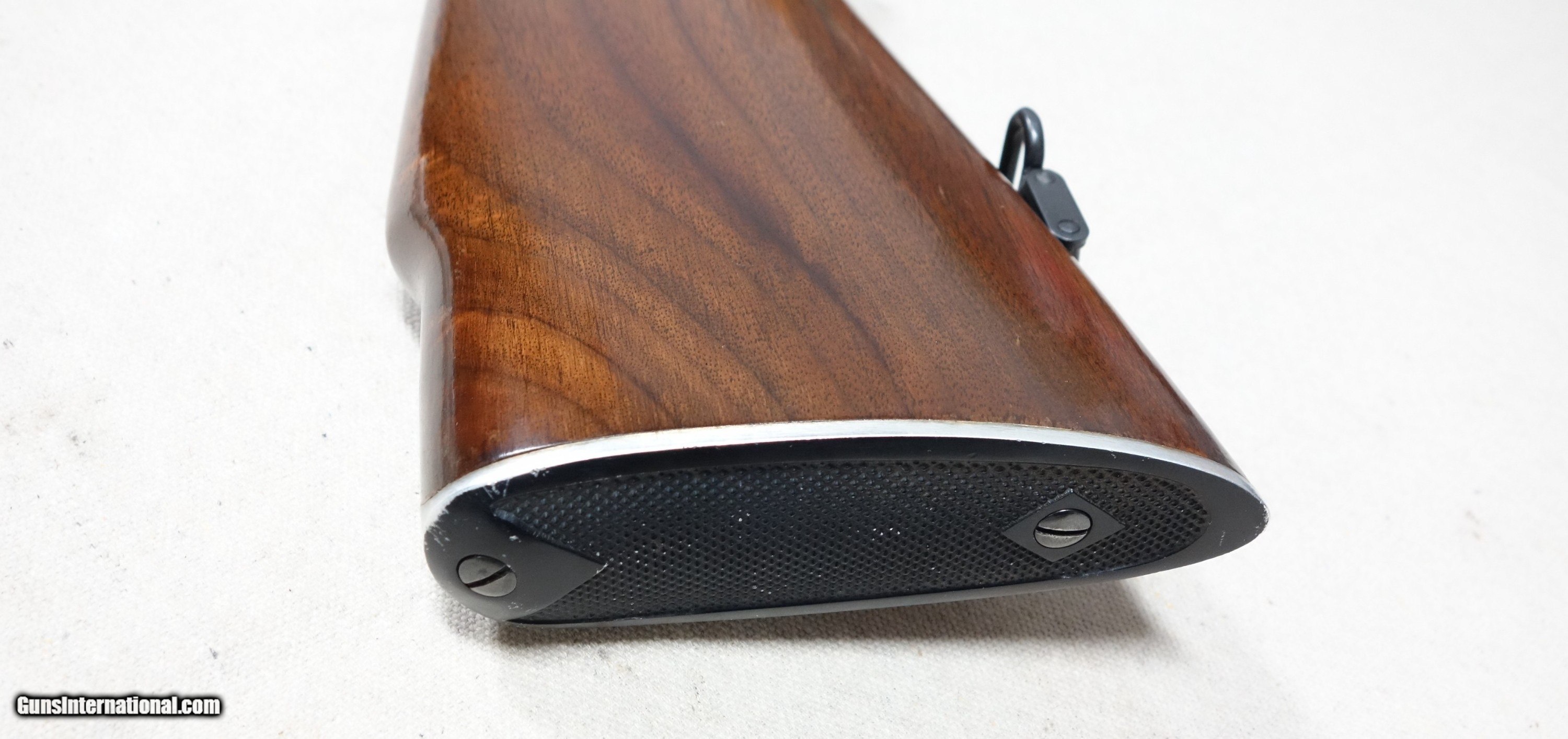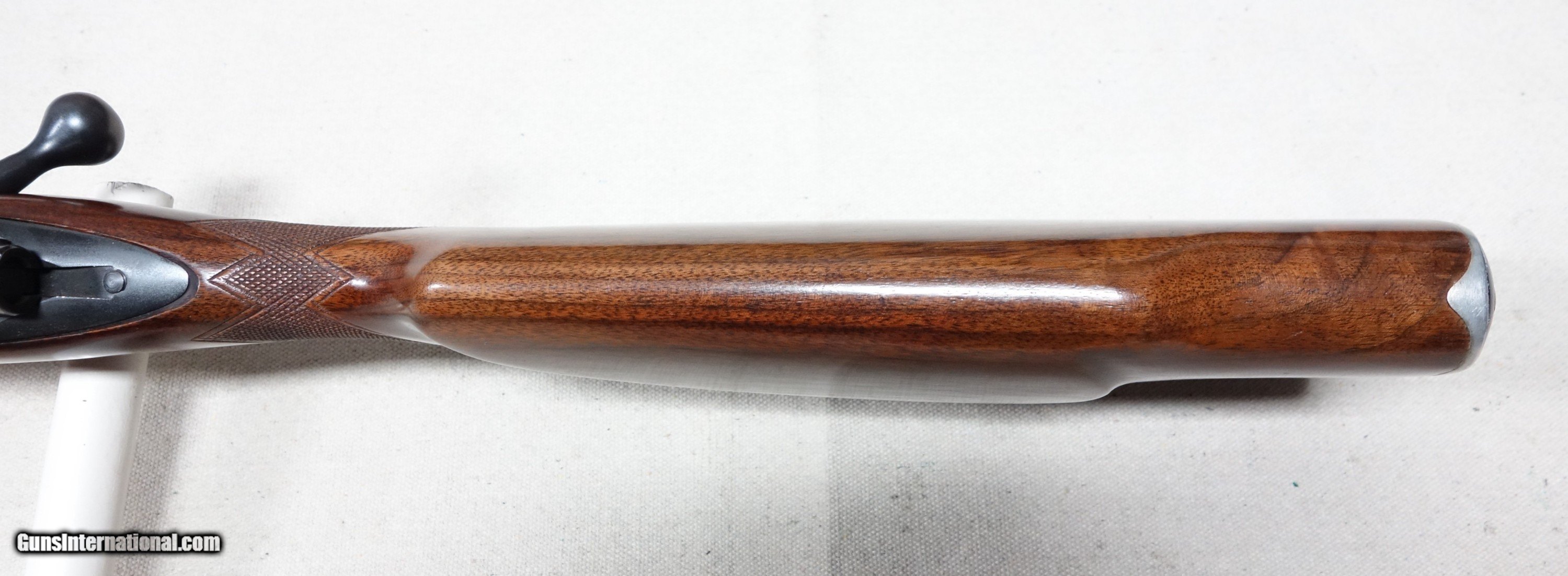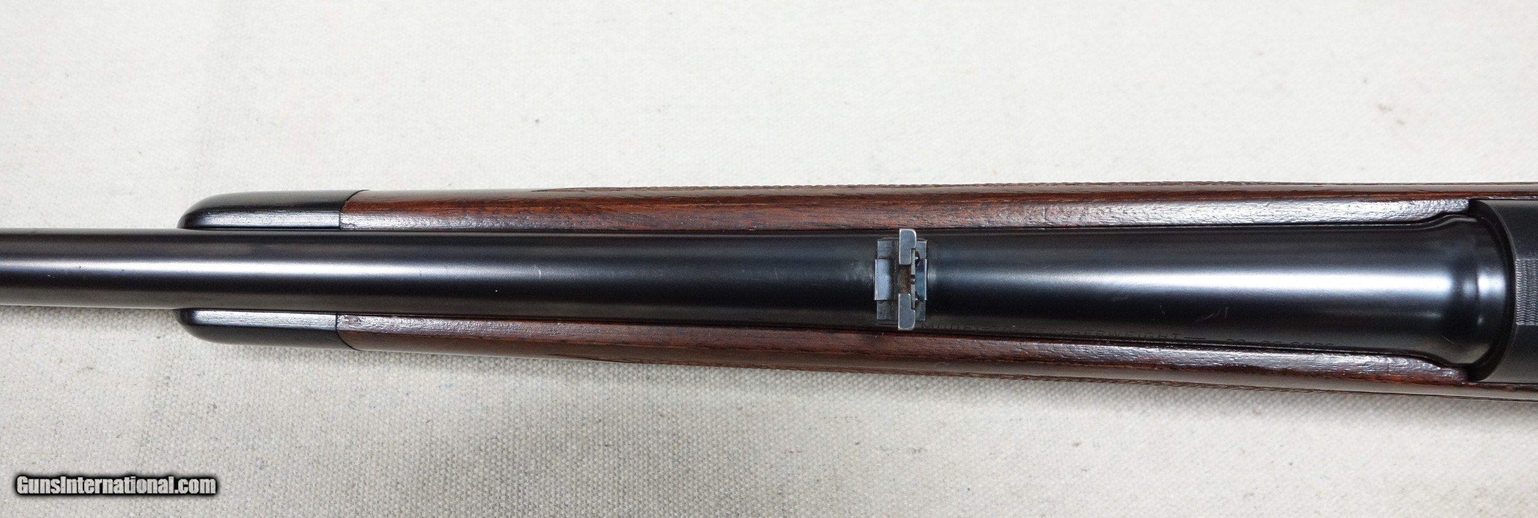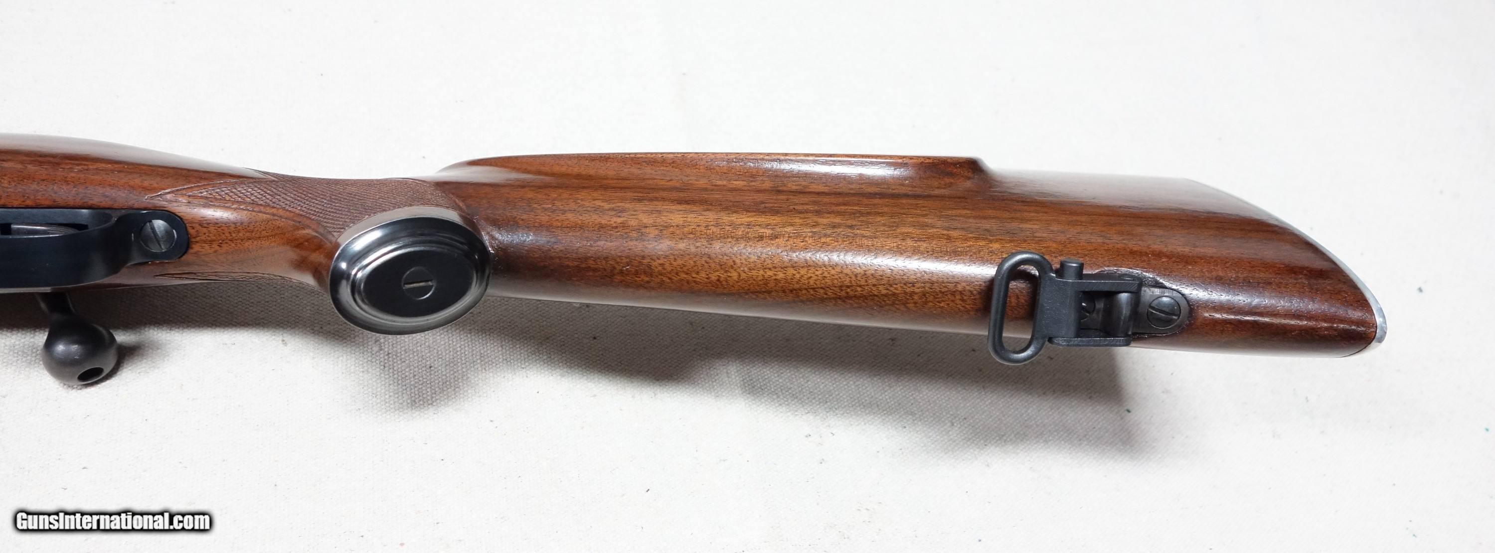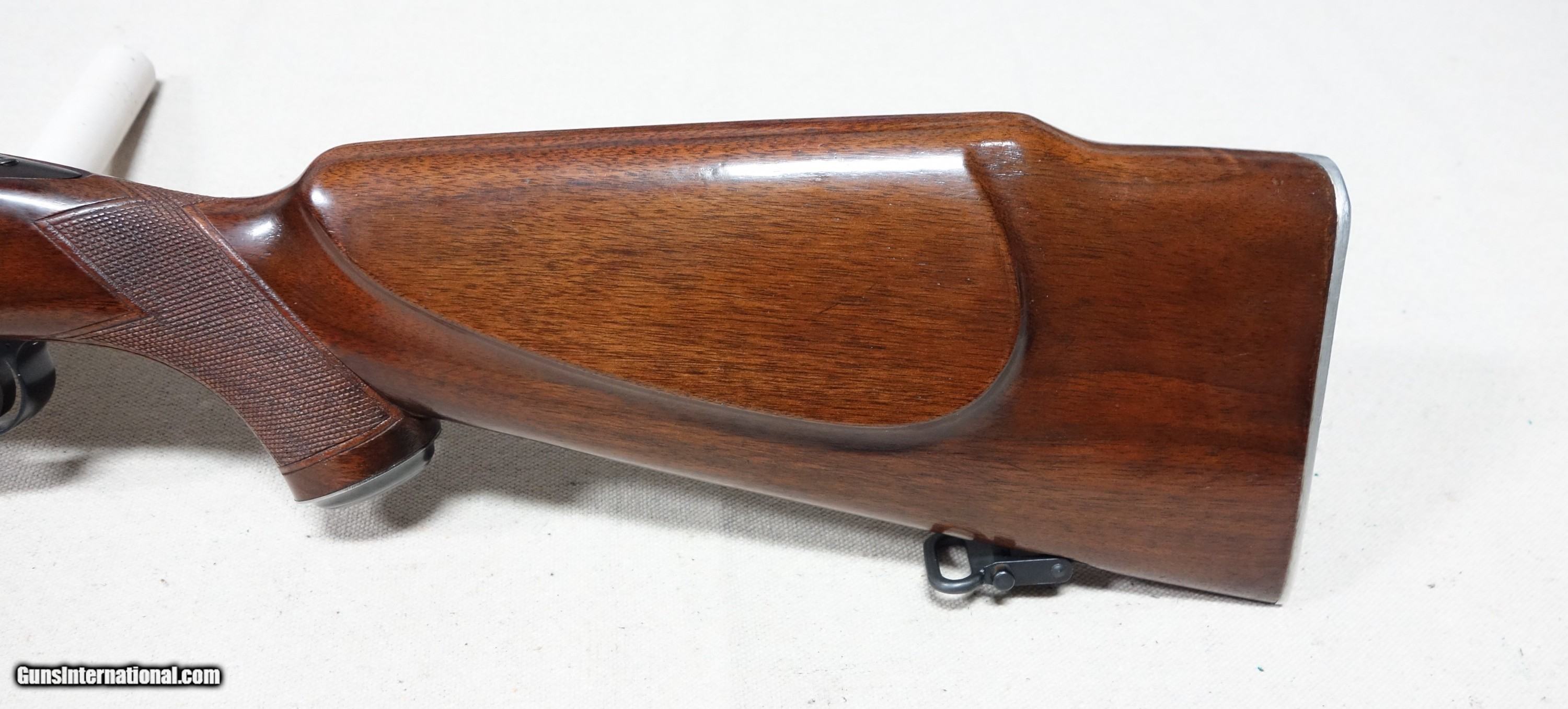 Description: Outstanding and incredibly rare Model 70 Super Grade FEATHERWEIGHT in 30-06 Caliber! S/N 374346 with a matching scribed bolt made in 1956. This is the absolute rarest style of ANY Model 70 ever produced, with only 930 made in the 4 cataloged calibers. This one is in 30-06 caliber which accounted for only 321 of that total, and would have to be considered among the finest of the few. This amazing rifle has all the right "stuff" and is guaranteed to be of 100% genuine components in every regard. Showing 98% original finishes throughout, with a few scattered scuffs on the barrel. The aluminum floorplate, trigger guard, and buttplate remain in nearly perfect condition. Correct and original SUPER grade underbarrel stampings, 22" factory rust blued barrel, jeweled action components, Redfield 255 front sight, proper detachable swivels, etc. Excellent bore and mechanical functions of course. A truly fantastic rifle worthy of any advanced Model 70 collection! Please add $100 for expedited and fully insured shipping from Alaska in a custom cut, foam lined box. SOLD Curio/Relic: Yes |