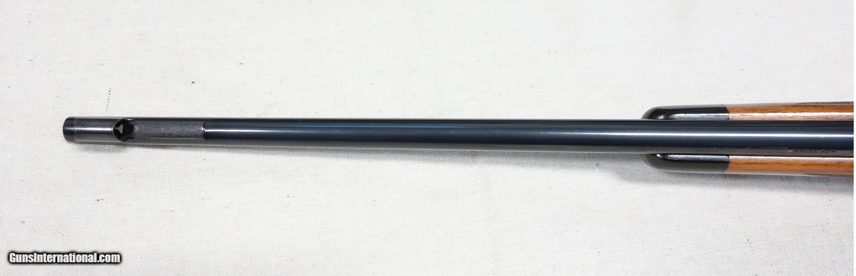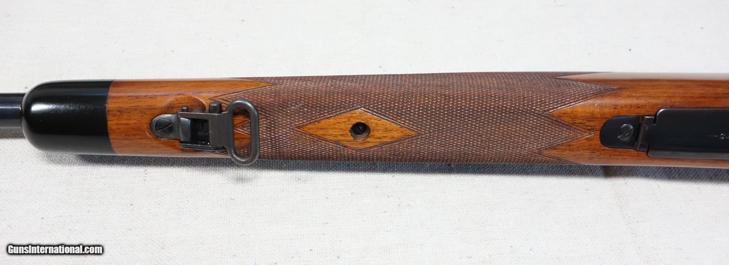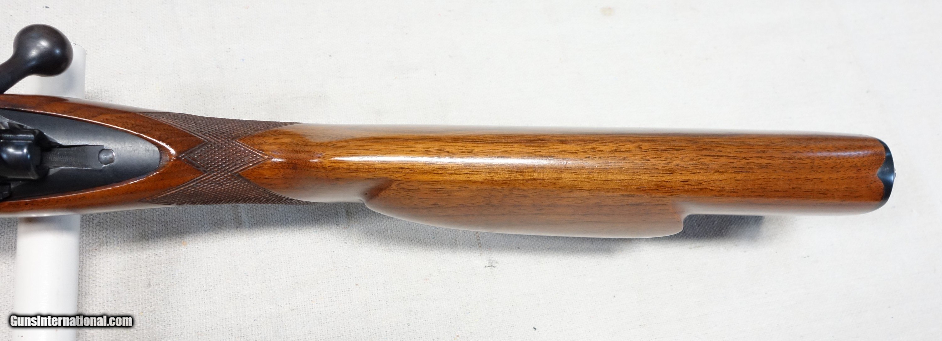 Description: ***SOLD*** Very scarce Model 70 Super Grade in .22 Hornet caliber. S/N 107321 with matching scribed bolt body made in 1949. Excellent bluing over most, but I am rating at 96% due to some light oxidation near muzzle and on the floorplate. 98-99% Varnish. The wood looks a bit bright, but that is supported by the natural coloration of the raw barrel channel. 24" barrel with an excellent bore. Mechanical functions are also excellent. Rare and correct Redfield 255 front sight, along with all other special and era appropriate Super Grade appointments including the robust detachable swivels. The inside of floorplate is machined properly for its unique follower spring and so stamped with an "H". I have also verified the chamber has not been reamed to the value killing "K" hornet. A difficult variant to find, especially in such overall nice condition! Please add $100 for expedited and fully insured shipping from Alaska. SOLD Curio/Relic: Yes |