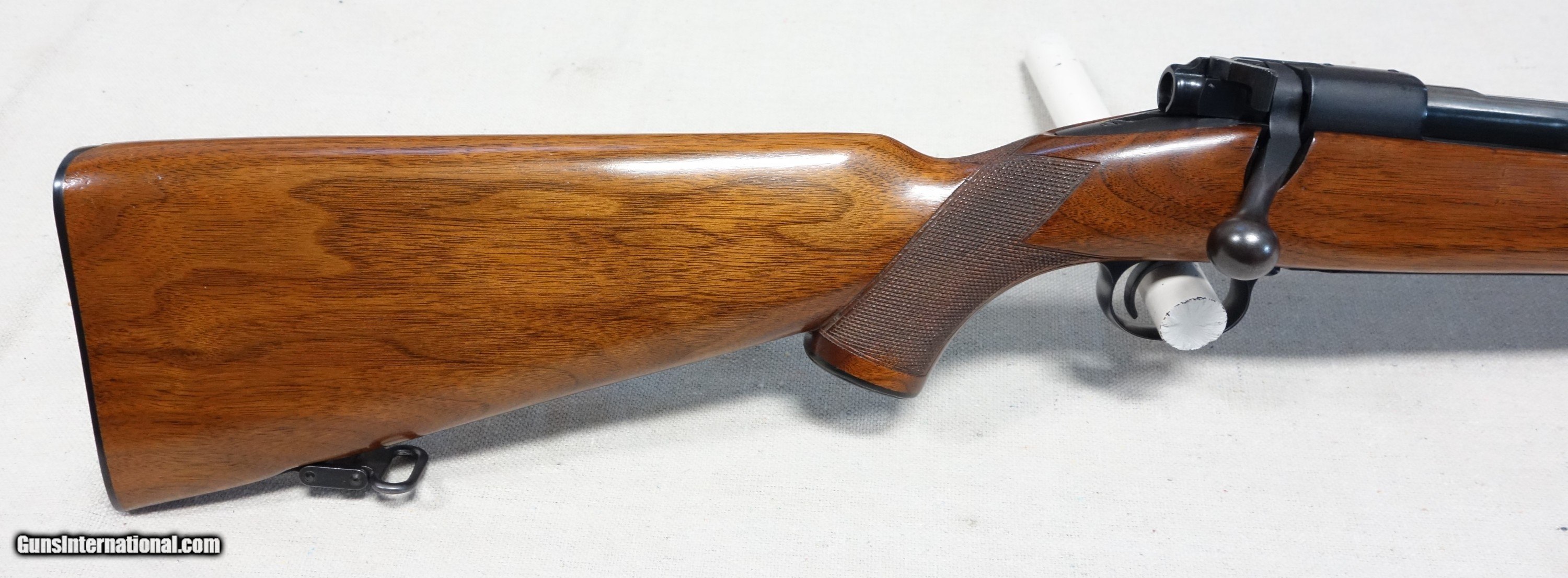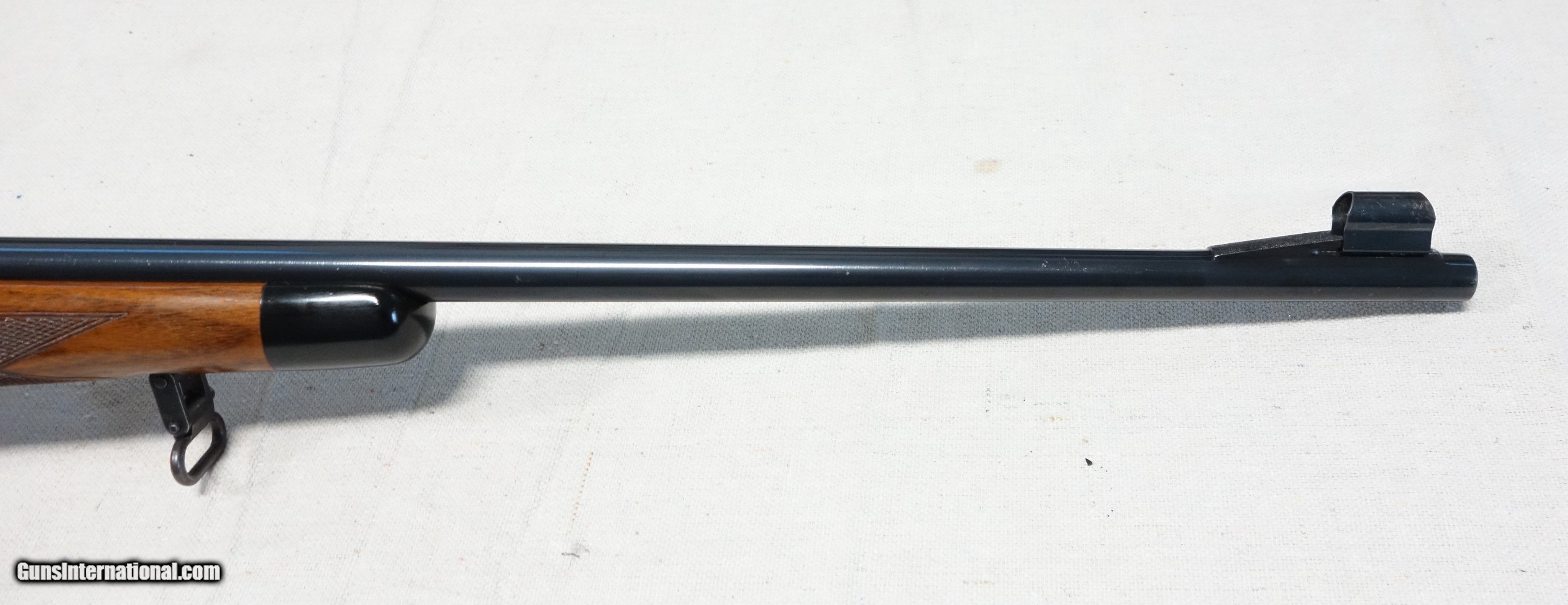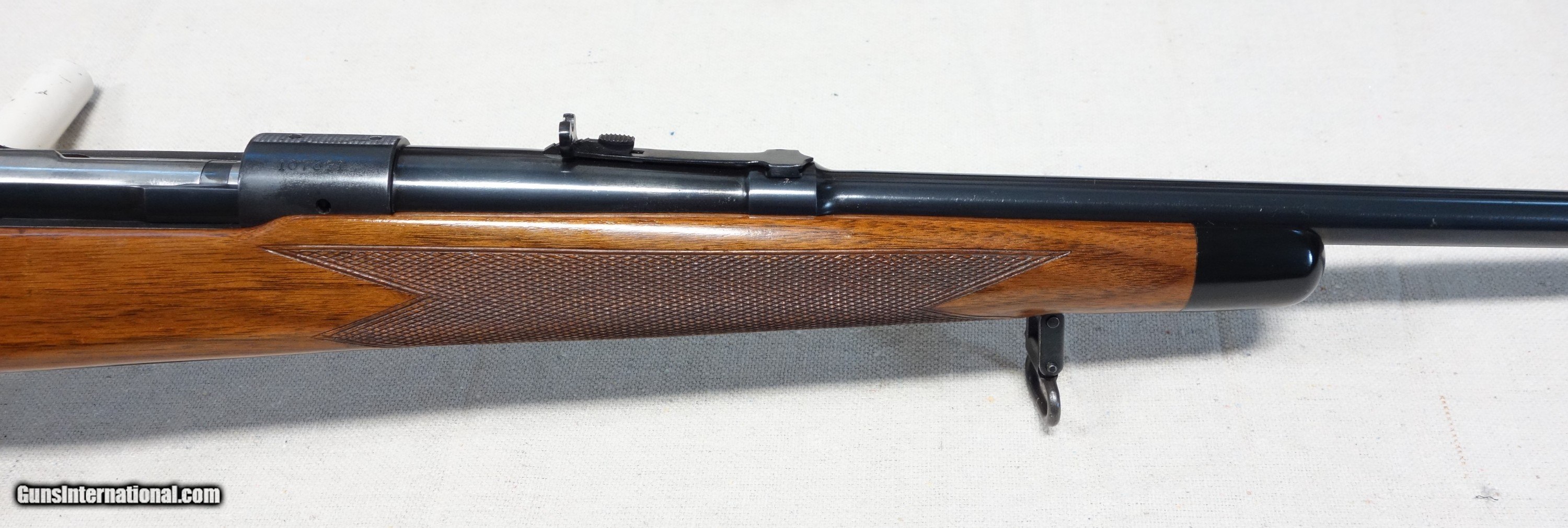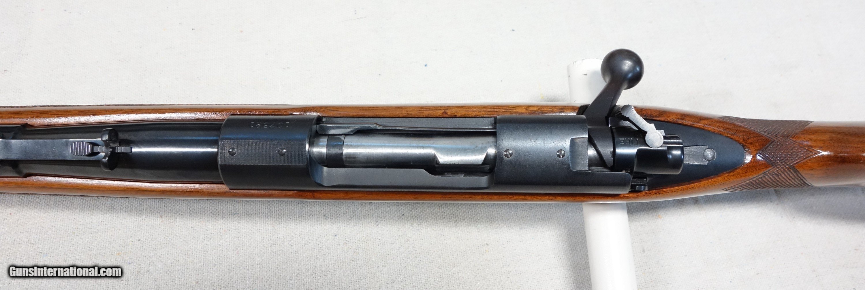 Description: ***SOLD*** Very scarce Model 70 Super Grade in .22 Hornet caliber. S/N 107321 with matching scribed bolt body made in 1949. Excellent bluing over most, but I am rating at 96% due to some light oxidation near muzzle and on the floorplate. 98-99% Varnish. The wood looks a bit bright, but that is supported by the natural coloration of the raw barrel channel. 24" barrel with an excellent bore. Mechanical functions are also excellent. Rare and correct Redfield 255 front sight, along with all other special and era appropriate Super Grade appointments including the robust detachable swivels. The inside of floorplate is machined properly for its unique follower spring and so stamped with an "H". I have also verified the chamber has not been reamed to the value killing "K" hornet. A difficult variant to find, especially in such overall nice condition! Please add $100 for expedited and fully insured shipping from Alaska. SOLD Curio/Relic: Yes |