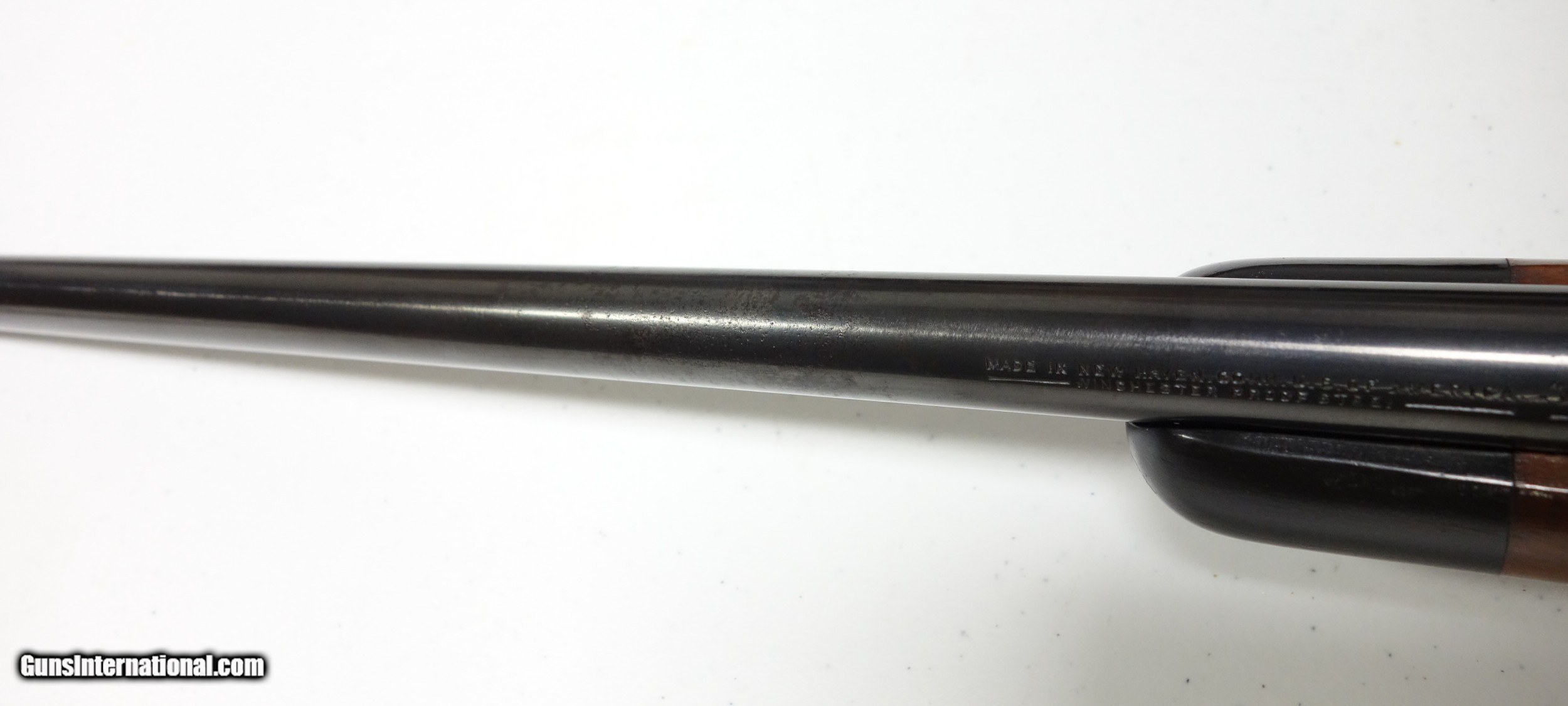 Description: Gorgeous Pre 64 Winchester 70 SUPER GRADE in rare .22 hornet caliber and in rarer still "transition" configuration. S/N 66*** with matching scribed bolt made in 1947. Overall condition is 97-98% throughout with exception of a patch of stabilized pin prick erosion on barrel in front of forend and a bit more wear to leading edge of floorplate. Insides are spotless. The 24" Barrel has a minty bore. All mechanical functions are smooth and correct as well. In addition to its scarcity of caliber, this is also a transition style rifle with the Pre War type cloverleaf tang and the unique "clamshell" or "rabbit's foot" safety lever, a combination of features limited almost exclusively to a short period of production between 1946-1948. All Super Grade components are genuine and present including Redfield front sight, SG stamped floorplate, SG swivels, etc. All of the unique 22 Hornet inner components are also 100% correct including an "H" marked floor plate. I have personally confirmed that the chamber remains intact and has never been reamed to a K hornet nor any other caliber. This is really a beautiful rifle with its somewhat unique stock blank tending toward the rich honey color that is seemingly every long time collector’s favorite...it is subtle but only observed on a relatively small percentage of Model 70s. SOLD Curio/Relic: Yes |
