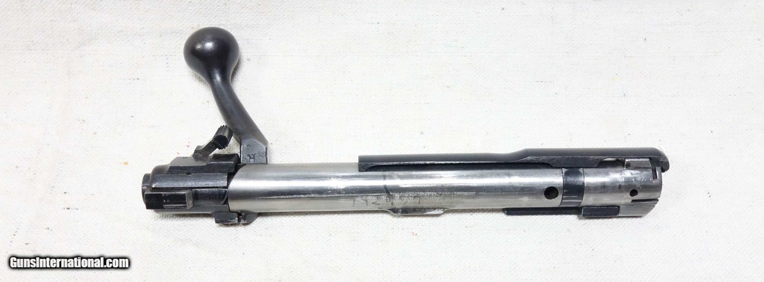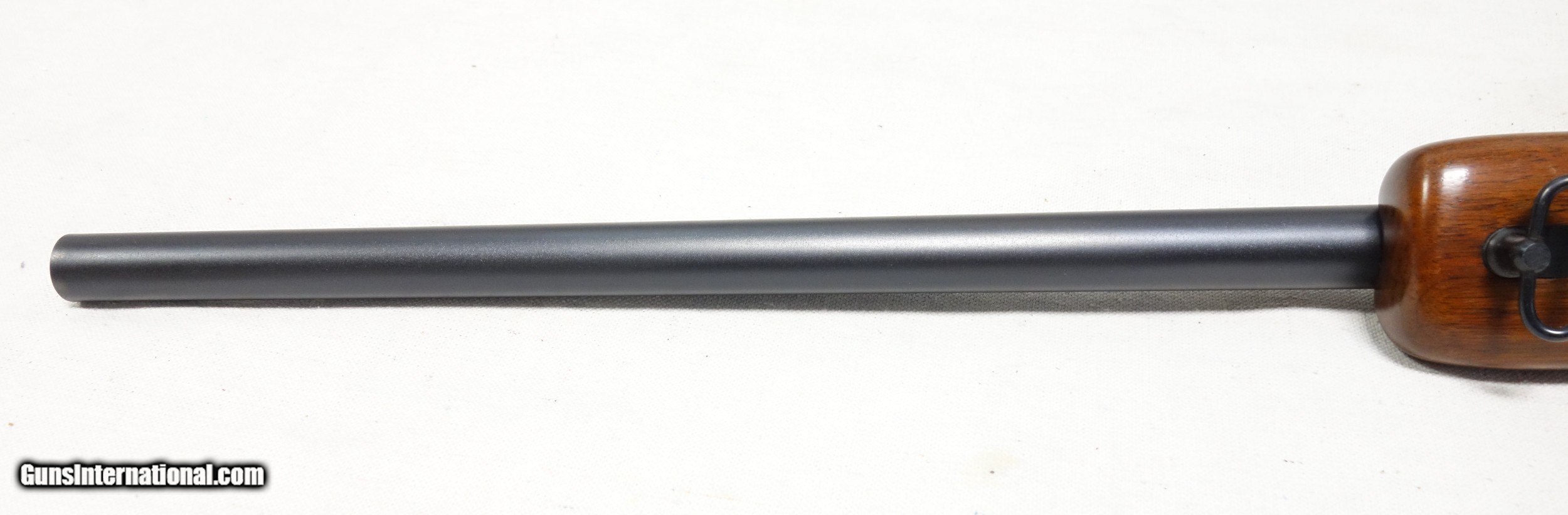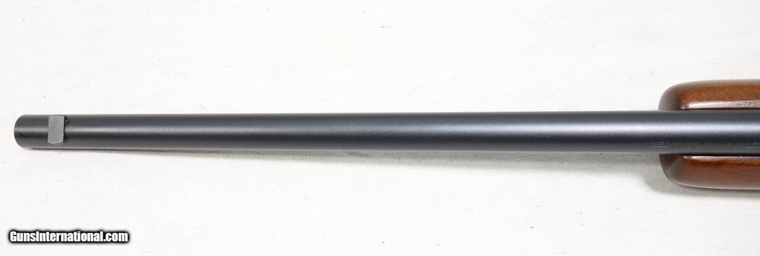 Description: Outstanding Model 70 Target rifle in scarce .220 Swift caliber. S/N 142*** with matching scribed bolt made in 1950. 98-99% original Blue, 97-98% Varnish with some scattered minor marks. Excellent bore, throat and mechanical function. Factory drilled on receiver and barrel for standard Winchester target scope blocks which are included. Front sight dovetail has original Lyman 12S filler plug. 26" Stainless Steel Barrel, correctly iron oxide coated and blued with muzzle face left in the white. A very clean Swift Target! Shipping from Alaska is $75 via Priority Mail with full insurance in a custom cut foam lined box for maximum protection. Credit card users please add 3%. SOLD Curio/Relic: Yes |