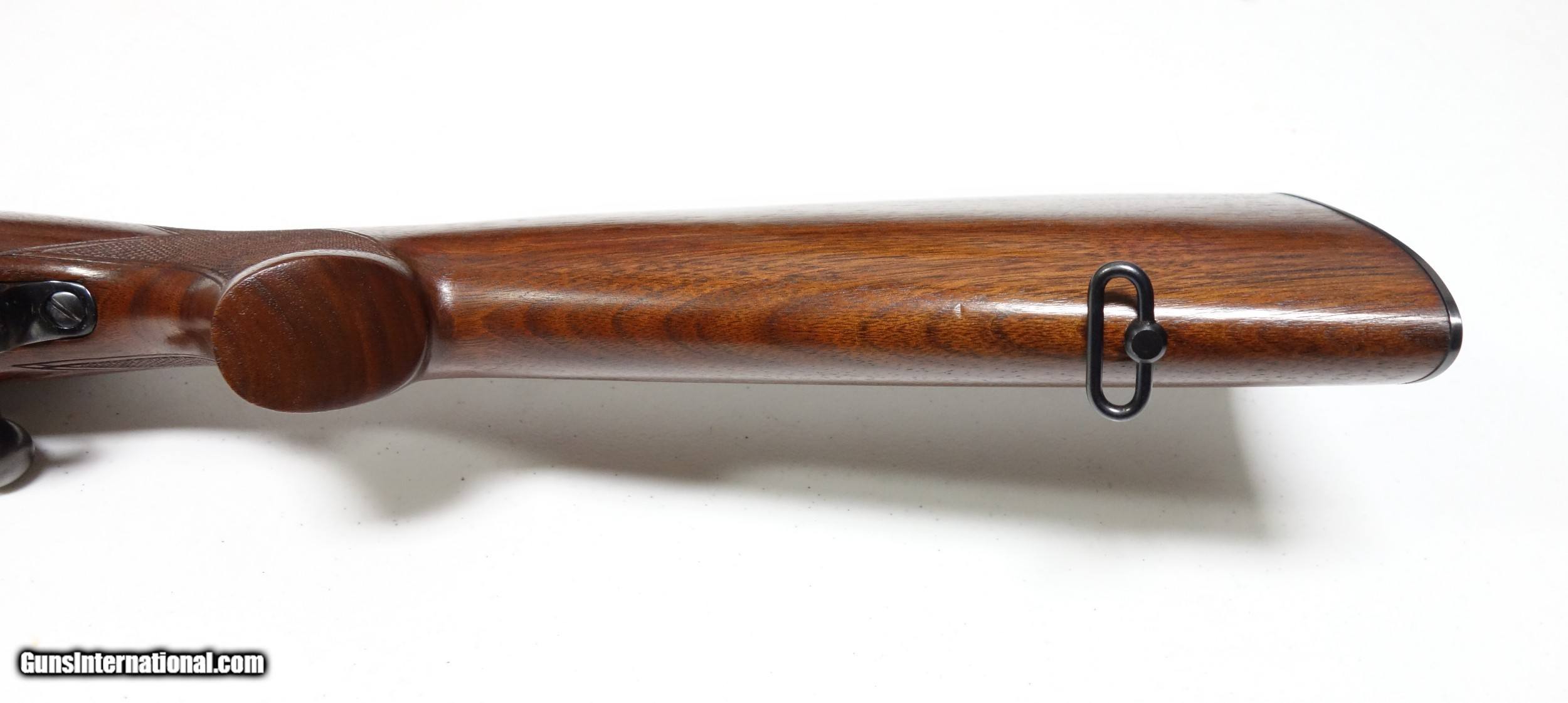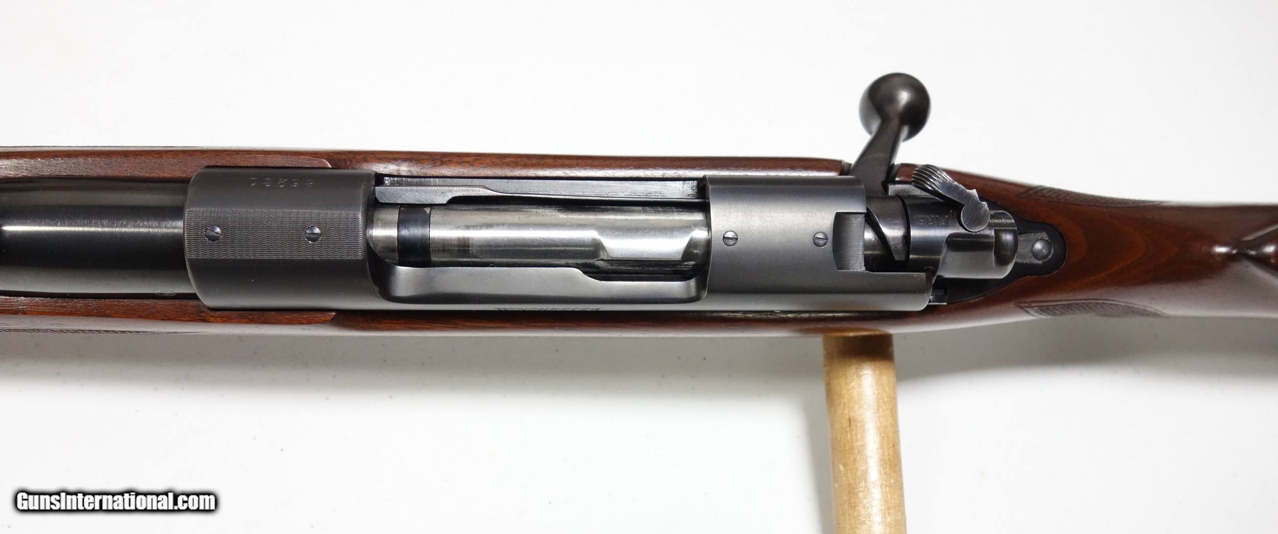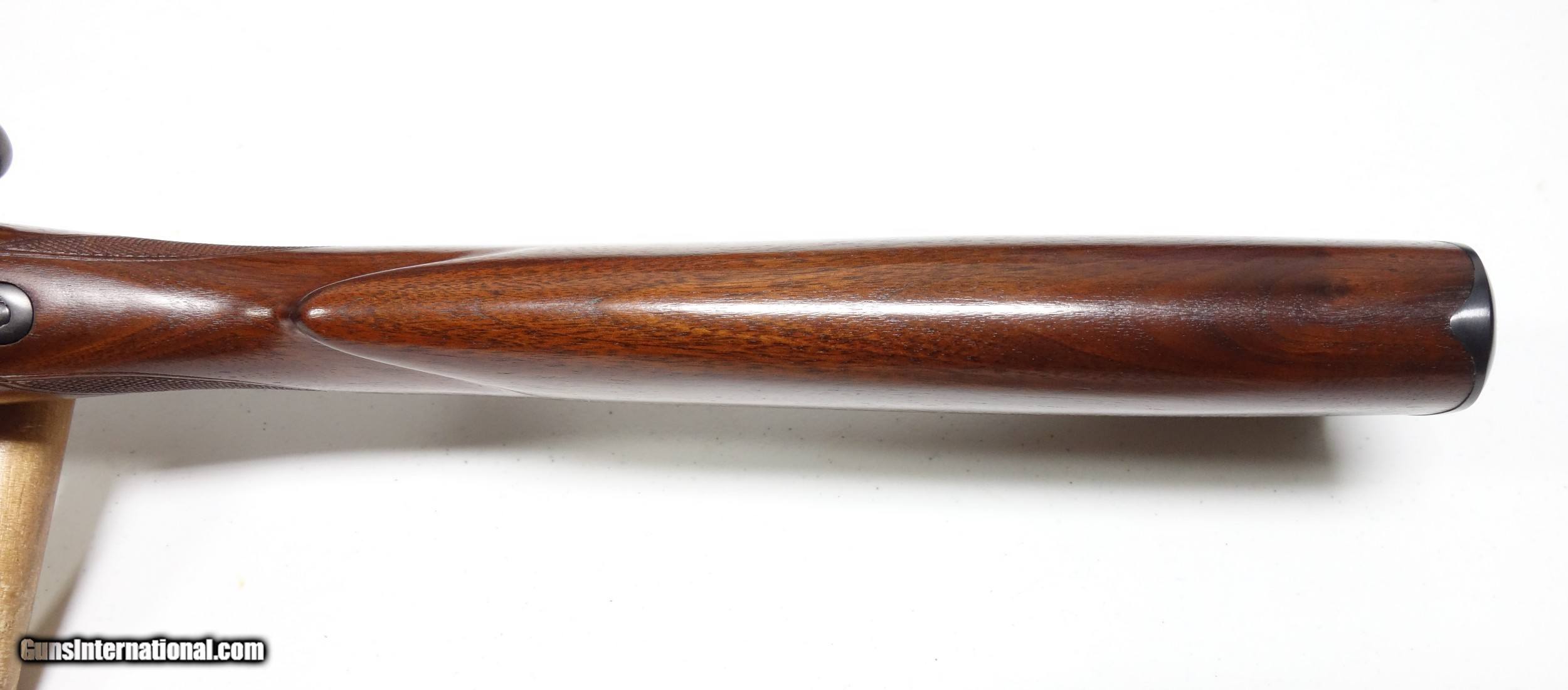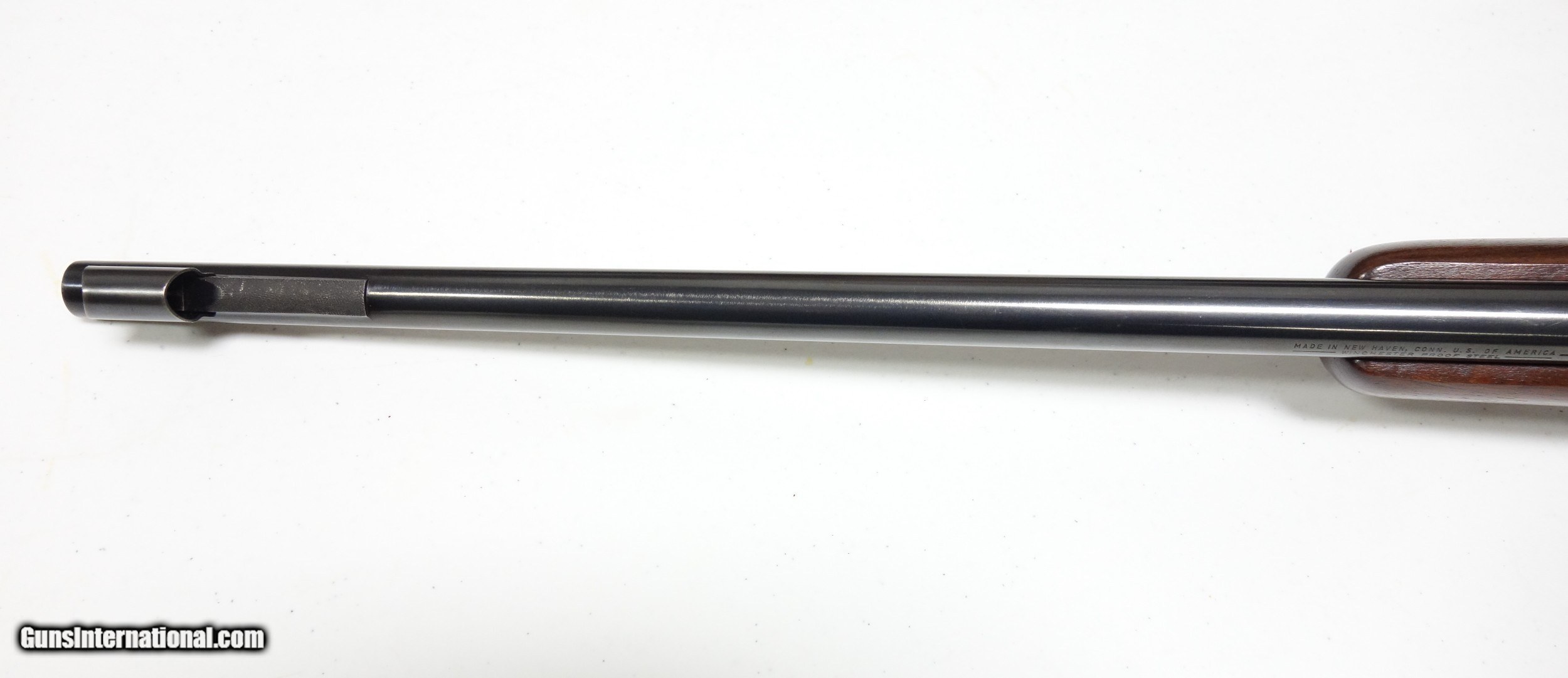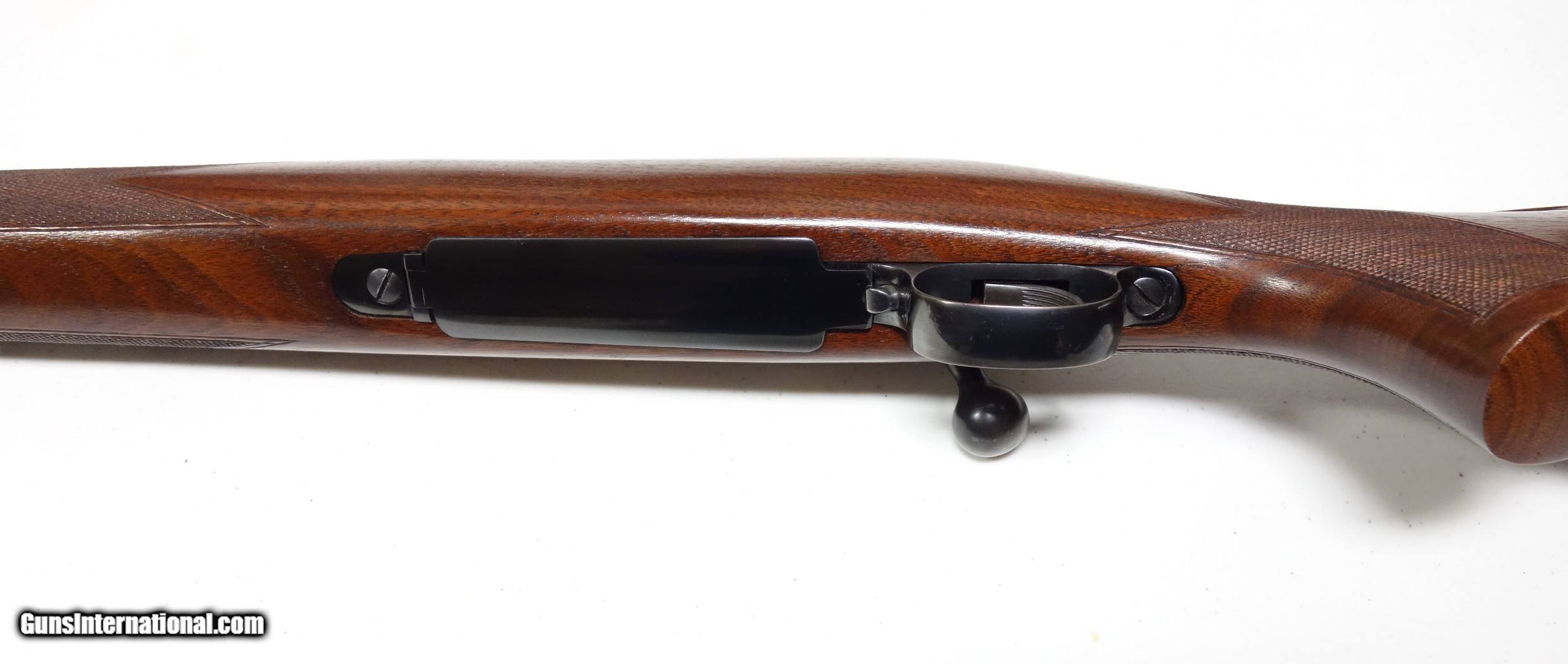 Description: Mint condition Pre 64 Winchester Model 70 in scarce .257 Roberts caliber. S/N 86*** with matching scribed bolt made in 1948. 99%+ Blue and Varnish. Barrel is 24" with minty bore. Mechanical function is smooth and proper in all regards. In addition to its scarcity of caliber, this is also a transition style rifle with the Pre War type cloverleaf tang and the unique "clamshell" or "rabbit's foot" safety lever, a combination of features limited almost exclusively to a short period of production between 1946-1948. None Finer! SOLD Curio/Relic: Yes |