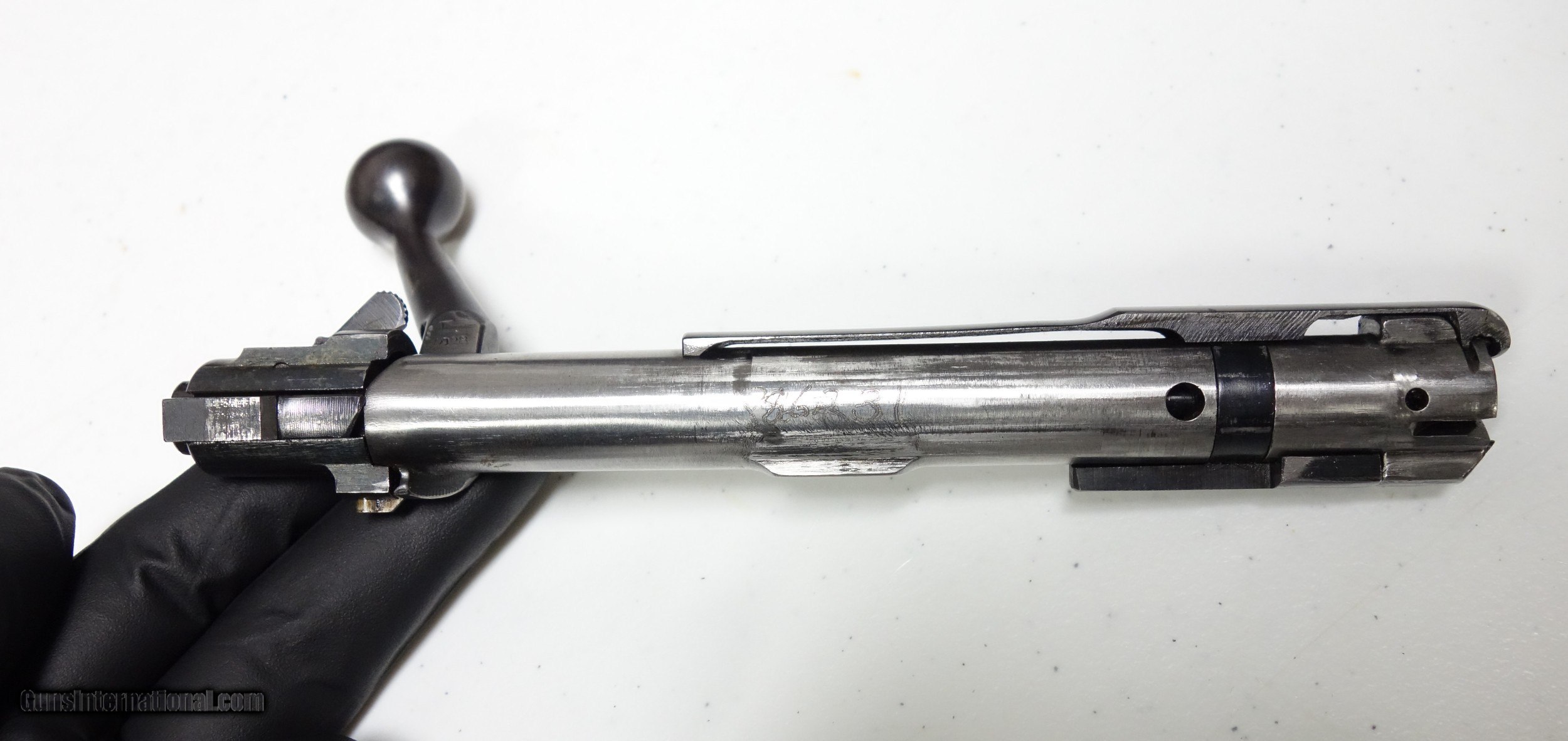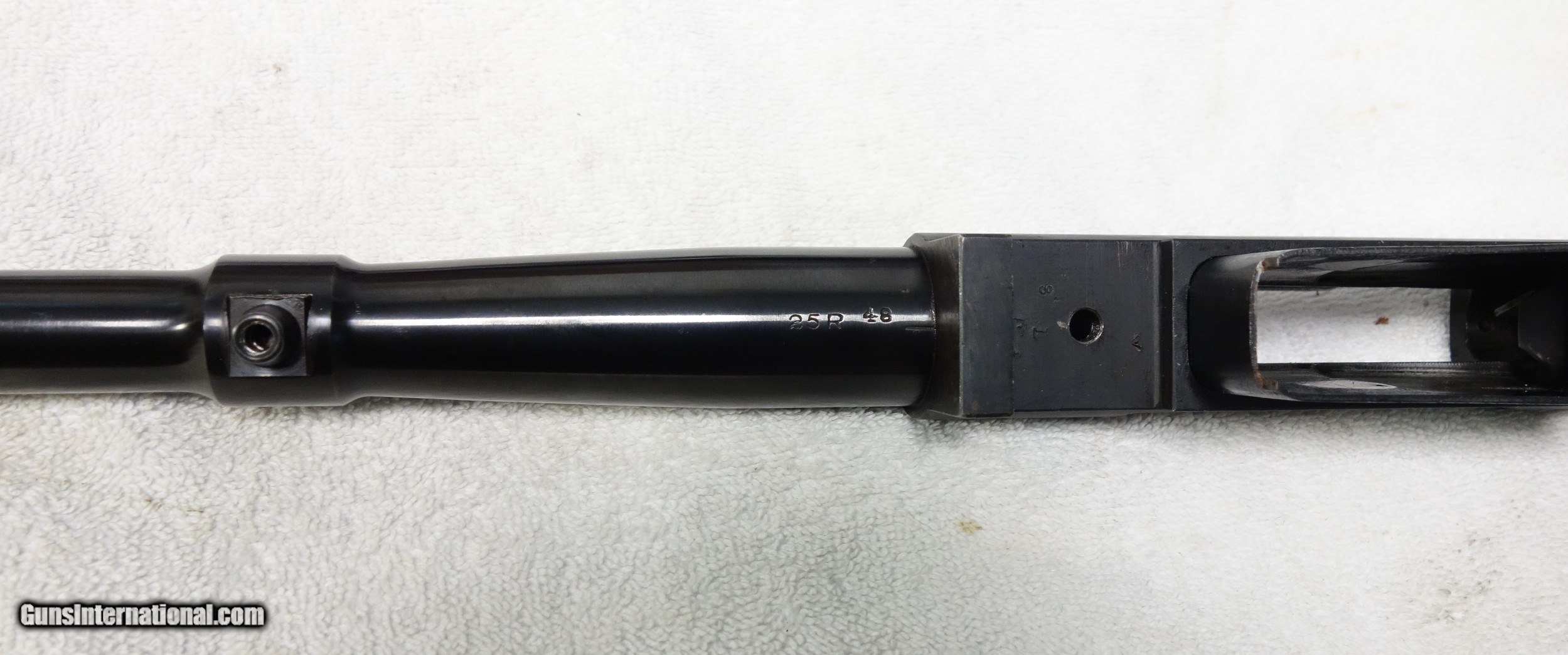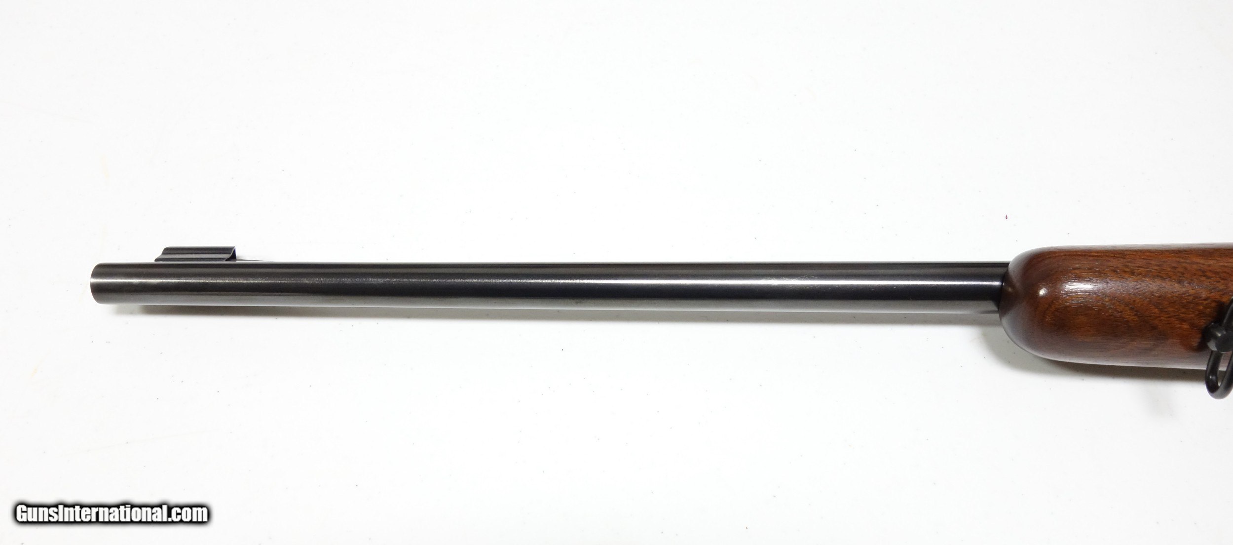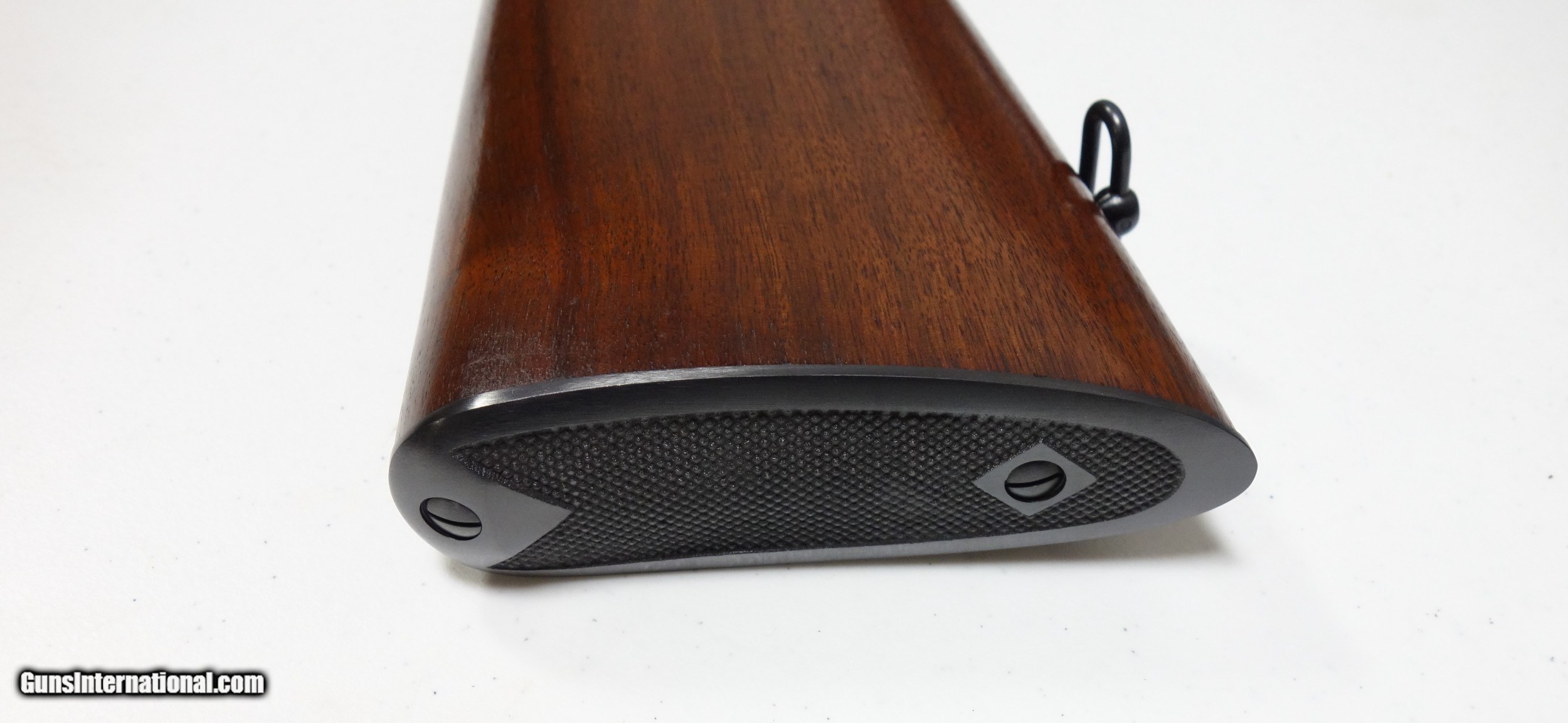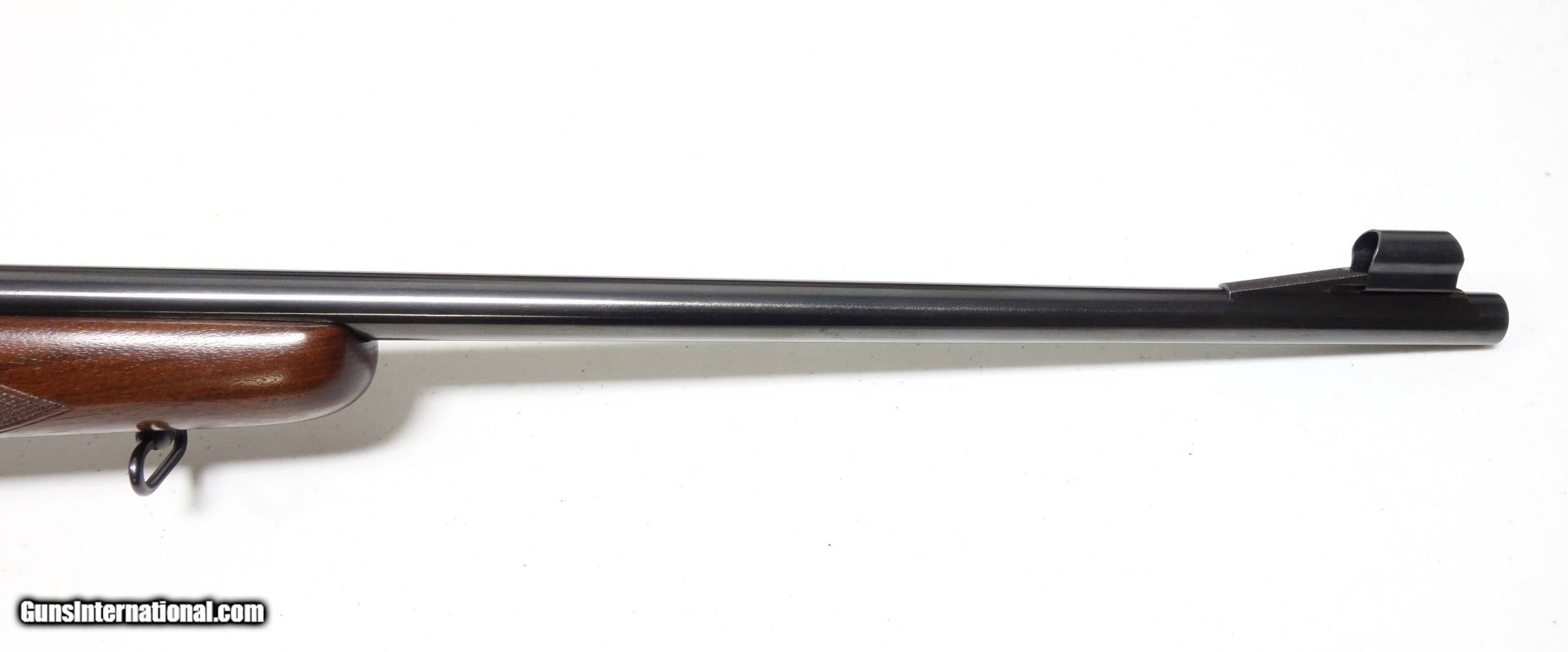 Description: Mint condition Pre 64 Winchester Model 70 in scarce .257 Roberts caliber. S/N 86*** with matching scribed bolt made in 1948. 99%+ Blue and Varnish. Barrel is 24" with minty bore. Mechanical function is smooth and proper in all regards. In addition to its scarcity of caliber, this is also a transition style rifle with the Pre War type cloverleaf tang and the unique "clamshell" or "rabbit's foot" safety lever, a combination of features limited almost exclusively to a short period of production between 1946-1948. None Finer! SOLD Curio/Relic: Yes |