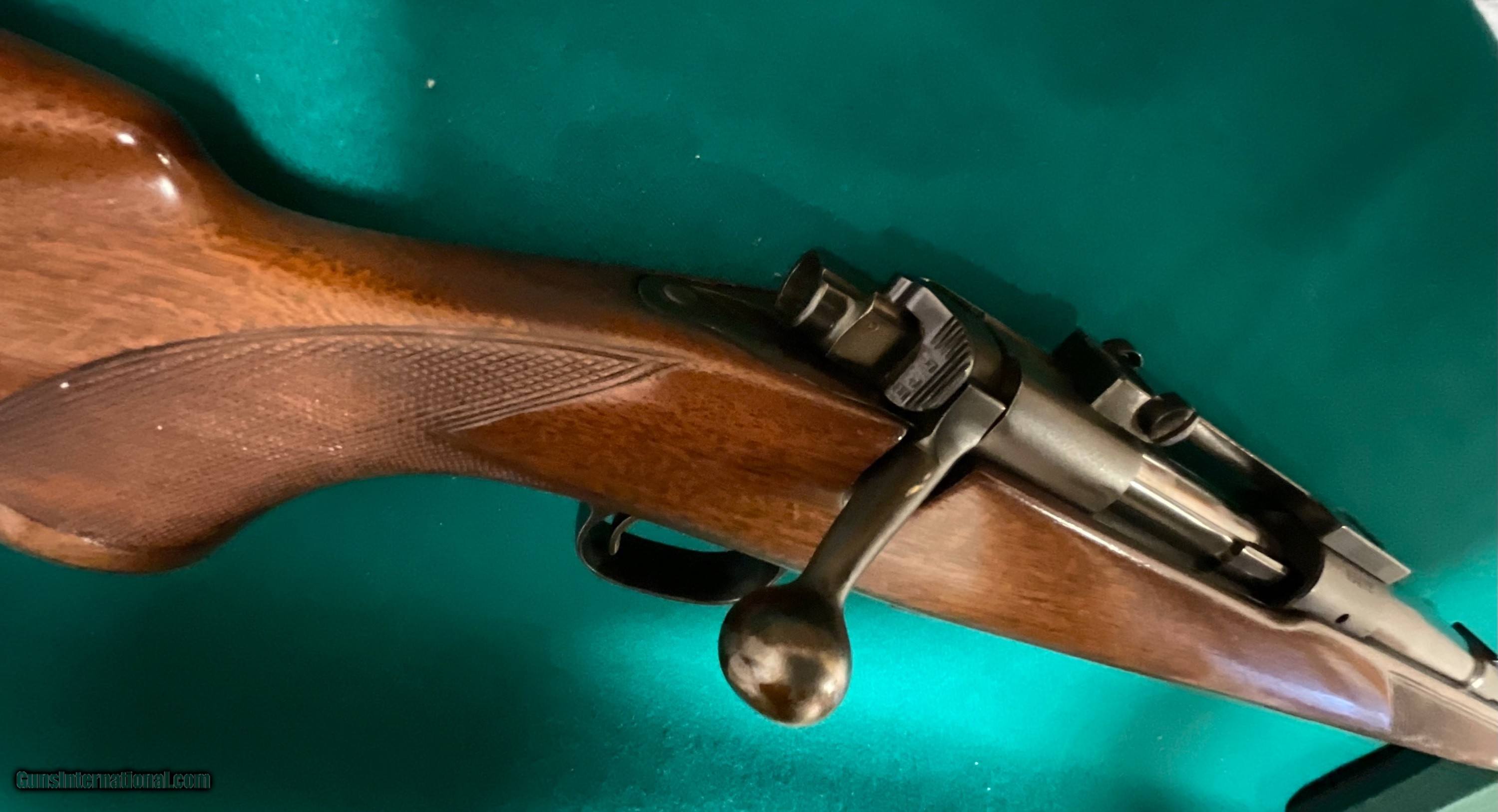 Description: Pre-war Winchester model 70 in scarce 257 Roberts. Semi custom with altered stock, grip cap and black forend tip on shortened forend and 21 inch barrel. All work nicely done. $2150 plus $50 insured shipping, 90 day layaway available. No credit cards and no trades. C&R ok. More photos on request. On inch Scope rings included. Curio/Relic: Yes Price: $2,150.00 Contact Seller |