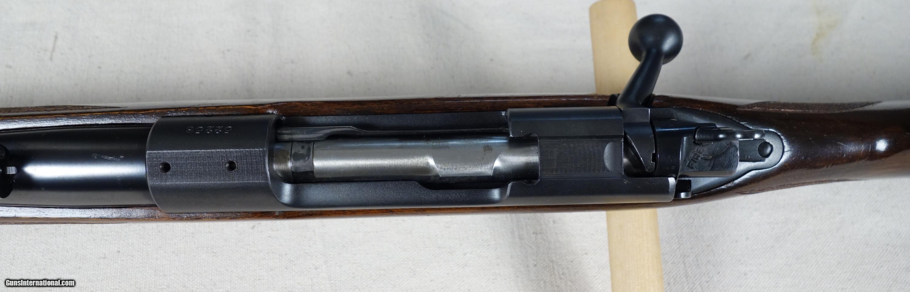 Description: Very nice, all original Pre War Winchester 70 in the venerable 270 Win. caliber. 24" Barrel. UNDRILLED rear receiver bridge. S/N 52*** with matching bolt. 90% overall Blue and Varnish. 100% original. Mechanics and bore are excellent. Despite some fairly minor cosmetic surface blems, this rifle is spotless inside, and has all correct components. These early production, unmolested examples are becoming very difficult to find and represent an outstanding value to the collector. SOLD Curio/Relic: Yes |