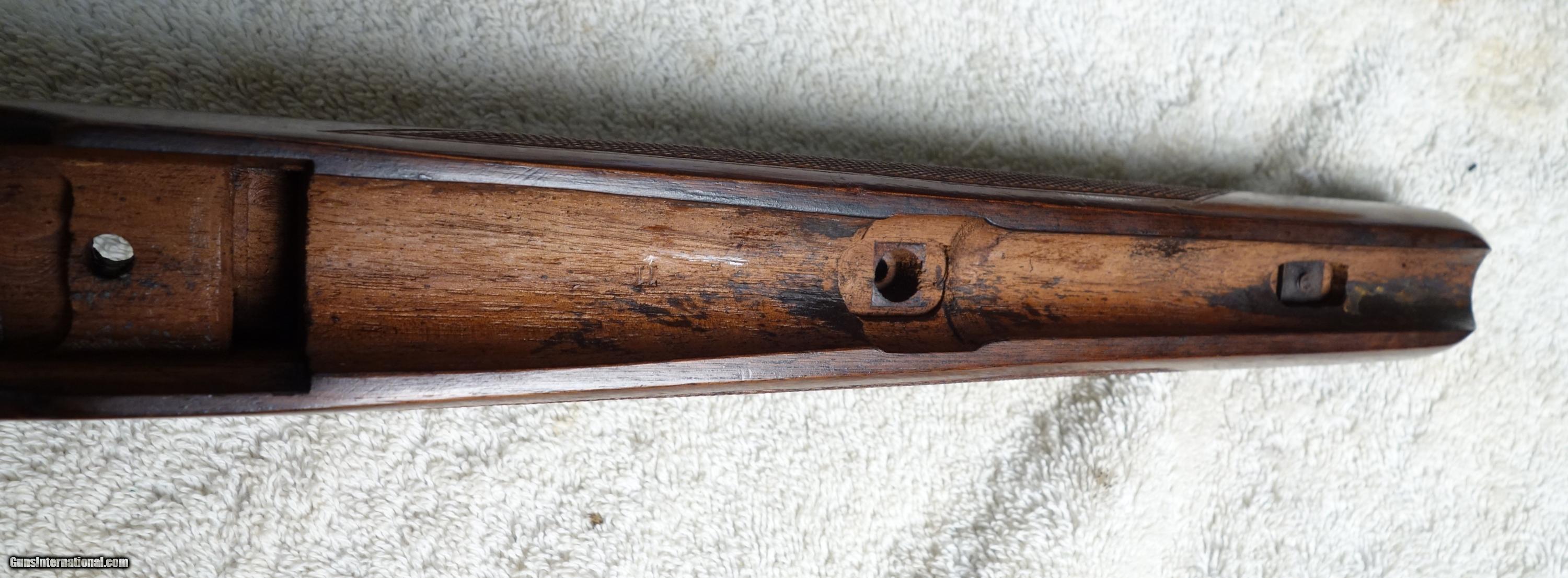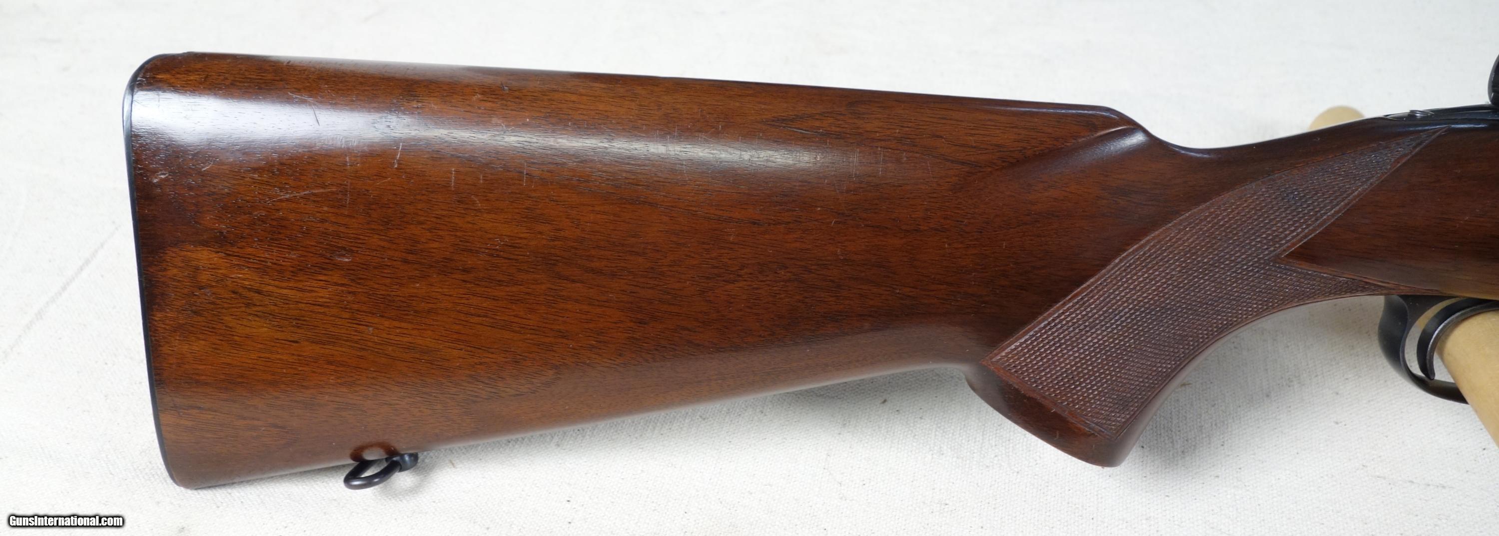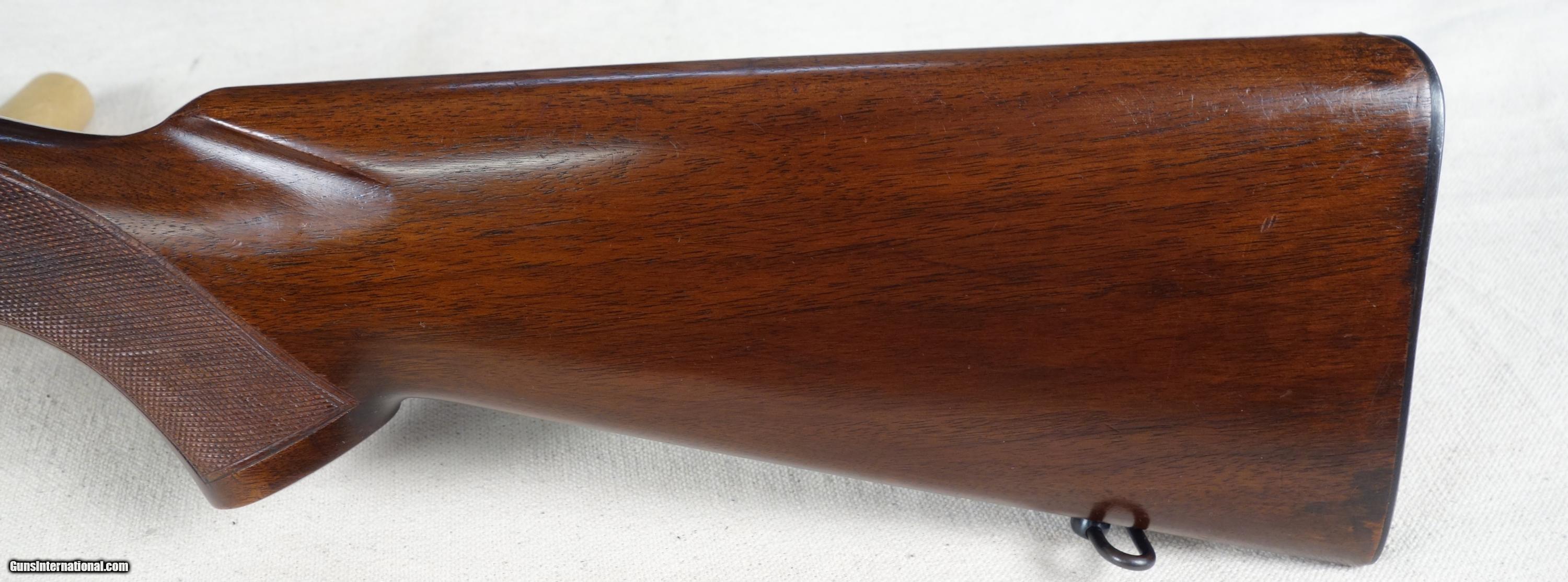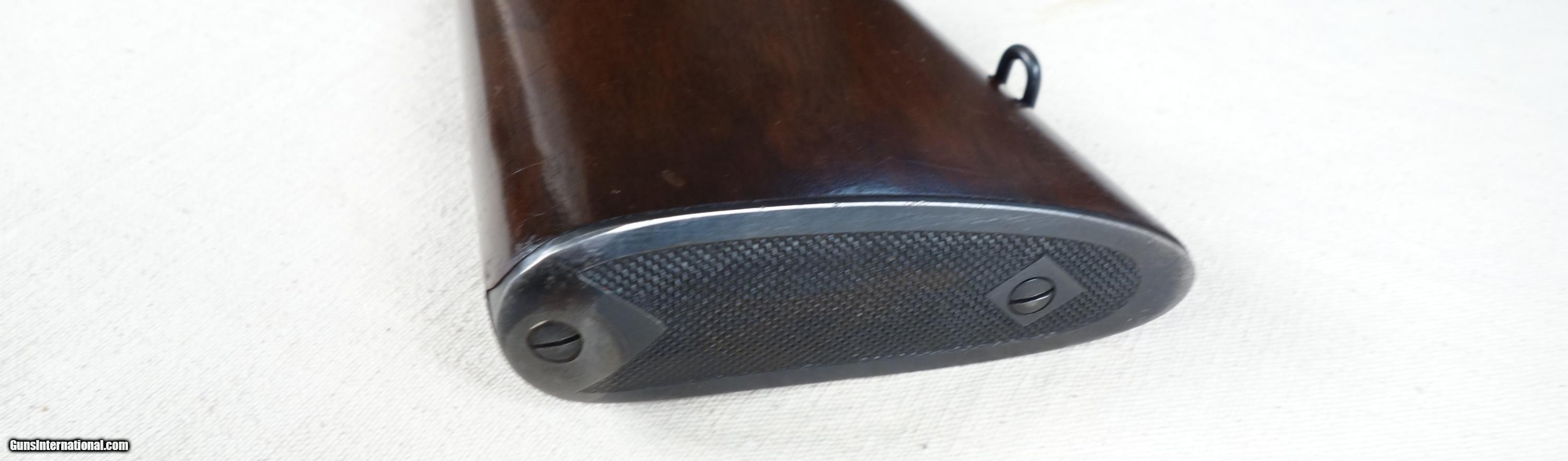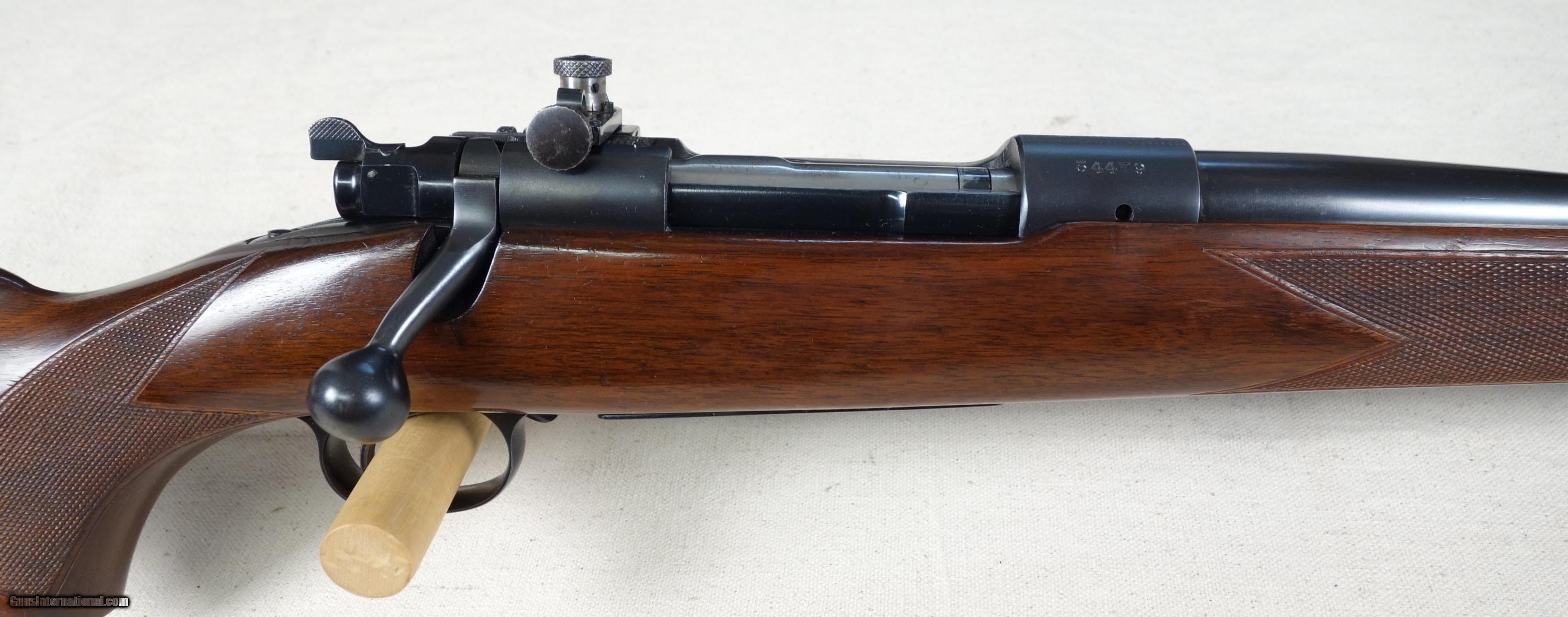 Description: Great rifle inside and out. Winchester Model 70 standard rifle in .30GOV'T.'06. 24" barrel. UNDRILLED rear receiver bridge. S/N 54*** with matching bolt. Assembled in 1946 but 100% Pre War in fit, finishes and all components. Factory inletted full base Lyman 48 WJS receiver sight. Rifle is about 96% overall with some light handling marks on wood and a few creases under the fore end, along with a bit of spotting on floor plate. 100% original. Function and bore condition are excellent. SOLD Curio/Relic: Yes |