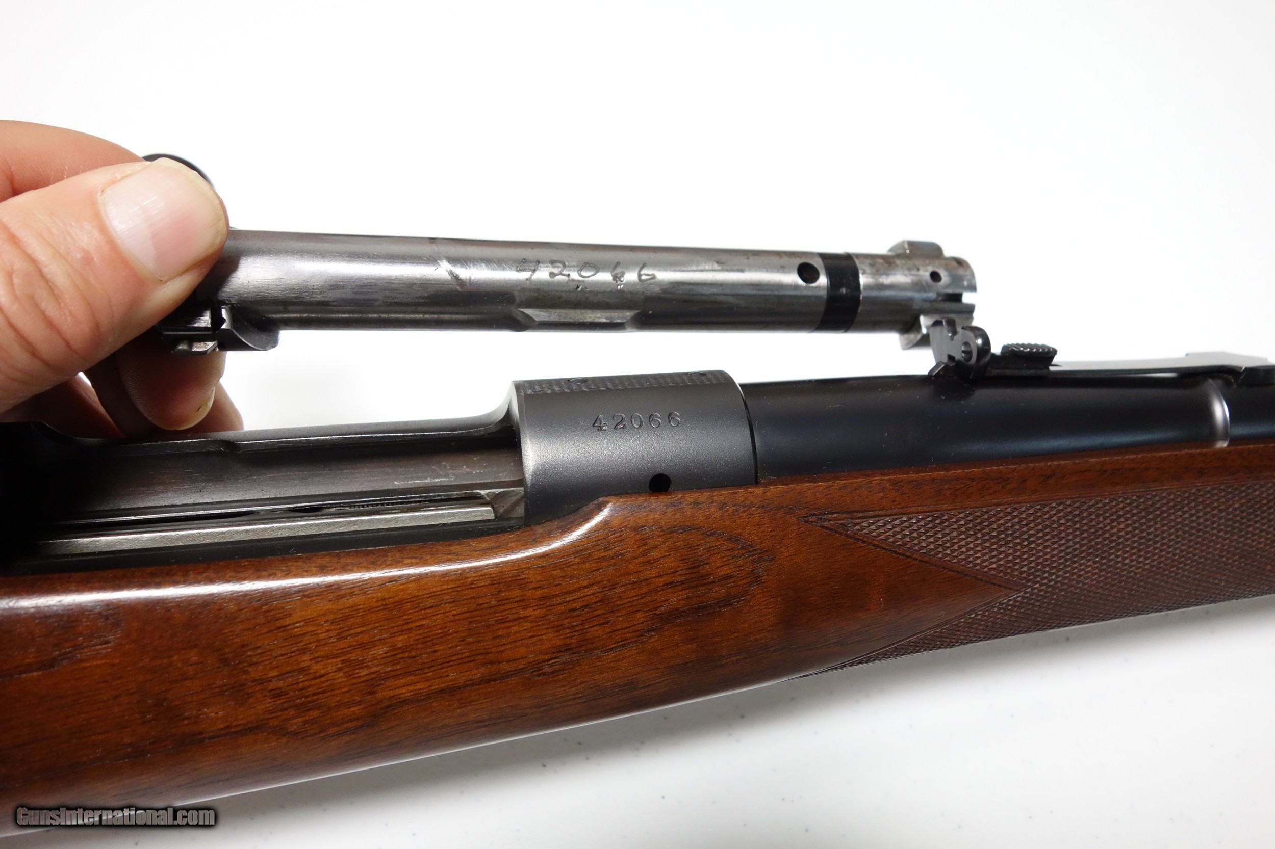 Description: Surely among the finest looking Pre War 70s you will ever see offered for sale. S/N 42*** Mfg. 1942 with matching number bolt. 30-06 Caliber. 24" barrel. Mint condition 99% Blue and Varnish. Flat rate expedited/insured shipping of $55 from Alaska. SOLD Curio/Relic: Yes |