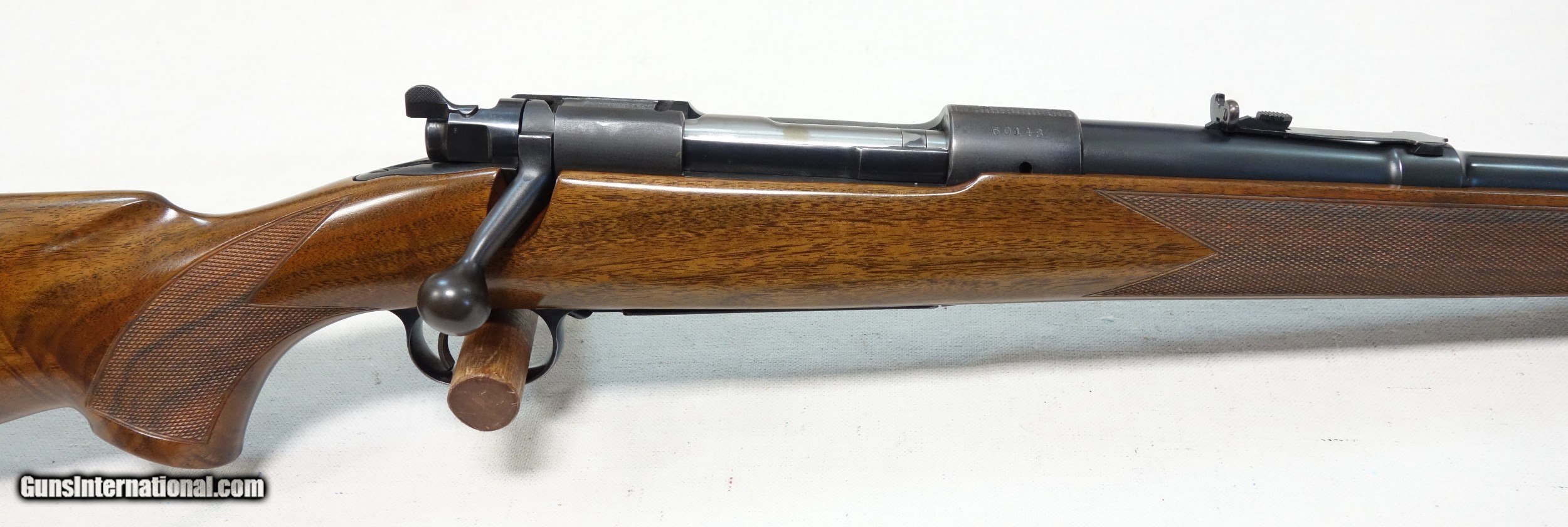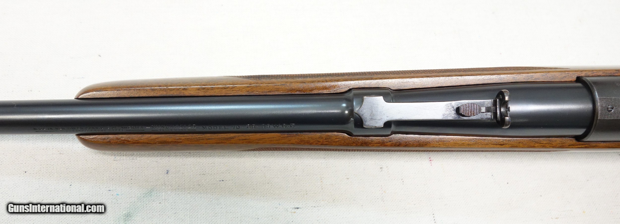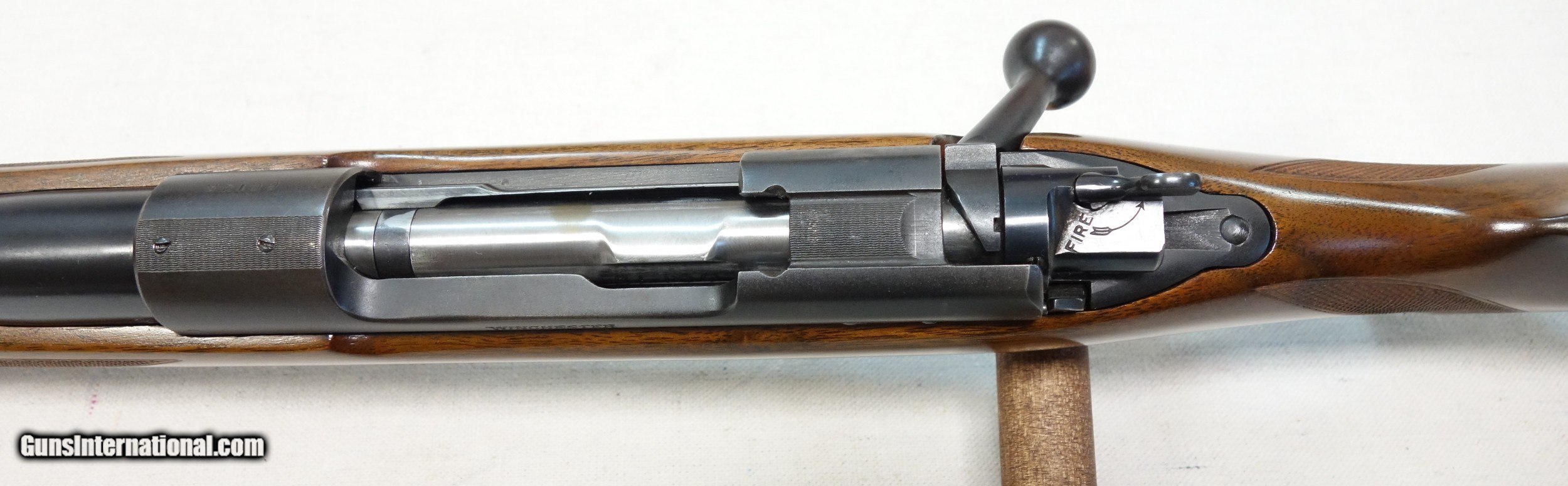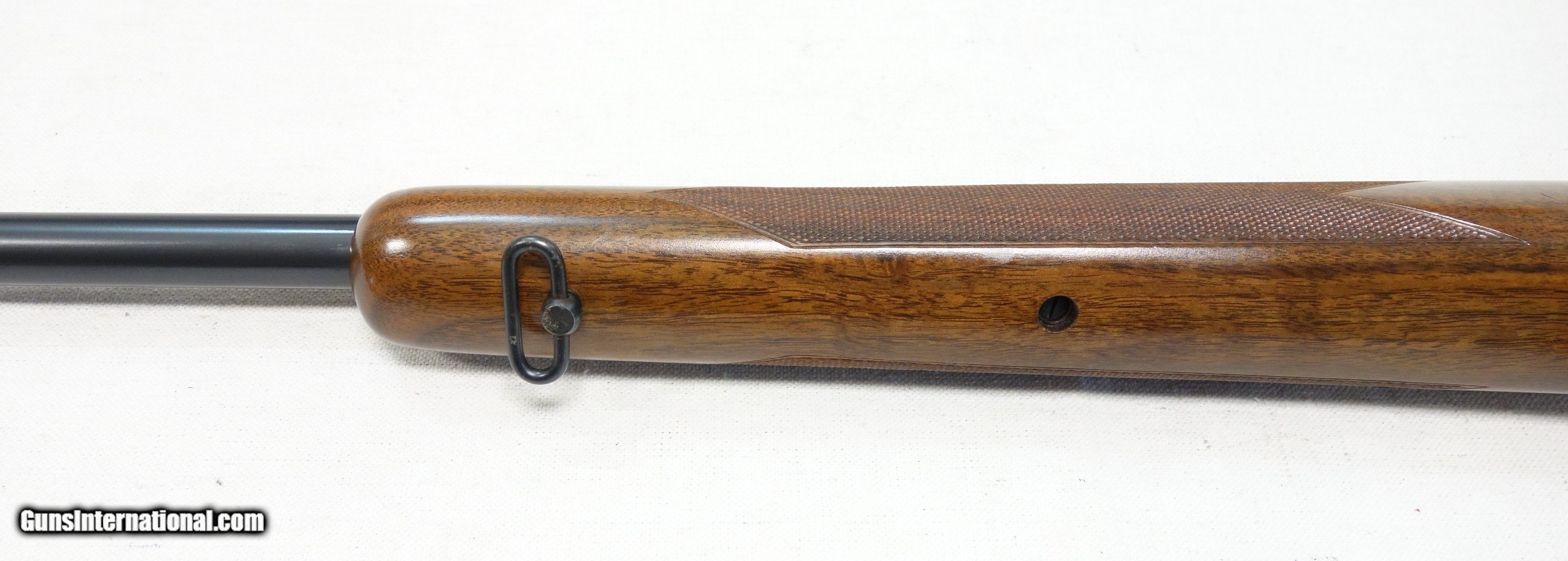 Description: ***SOLD*** Quite possibly one of the rarest and most beautiful Model 70s you will ever lay eyes on. Class 4 Special Order non standard chambering CARBINE in 25-35 W.C.F. As if that were not enough, it has a breathtaking piece of factory wood which has flame grain showing throughout the buttstock. This is not a restock, so was presumably also special ordered. S/N 60*** with matching scribed bolt made in 1947, but of 100% Pre War components including clover leaf shaped receiver tang, matted and UNDRILLED rear receiver, rust bluing, etc. The chamber breech is FLAT to accommodate this rimmed cartridge. 20" carbine barrel has minty bore, perfect: stampings, ramp transitions, stippling, crown etc. Overall condition is better than 99%. This incredible firearm is surely destined to be the centerpiece of even the most advanced M70 carbine collection. Shipping from Alaska is $75 via Priority Mail with full insurance in a custom cut foam lined box for maximum protection. I have a few other ultra rare caliber 70s from this magnificent collection, please inquire. SOLD Curio/Relic: Yes |